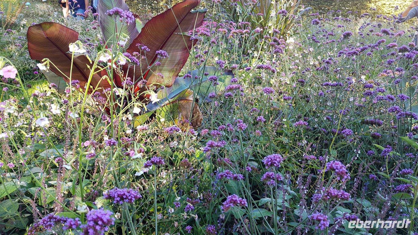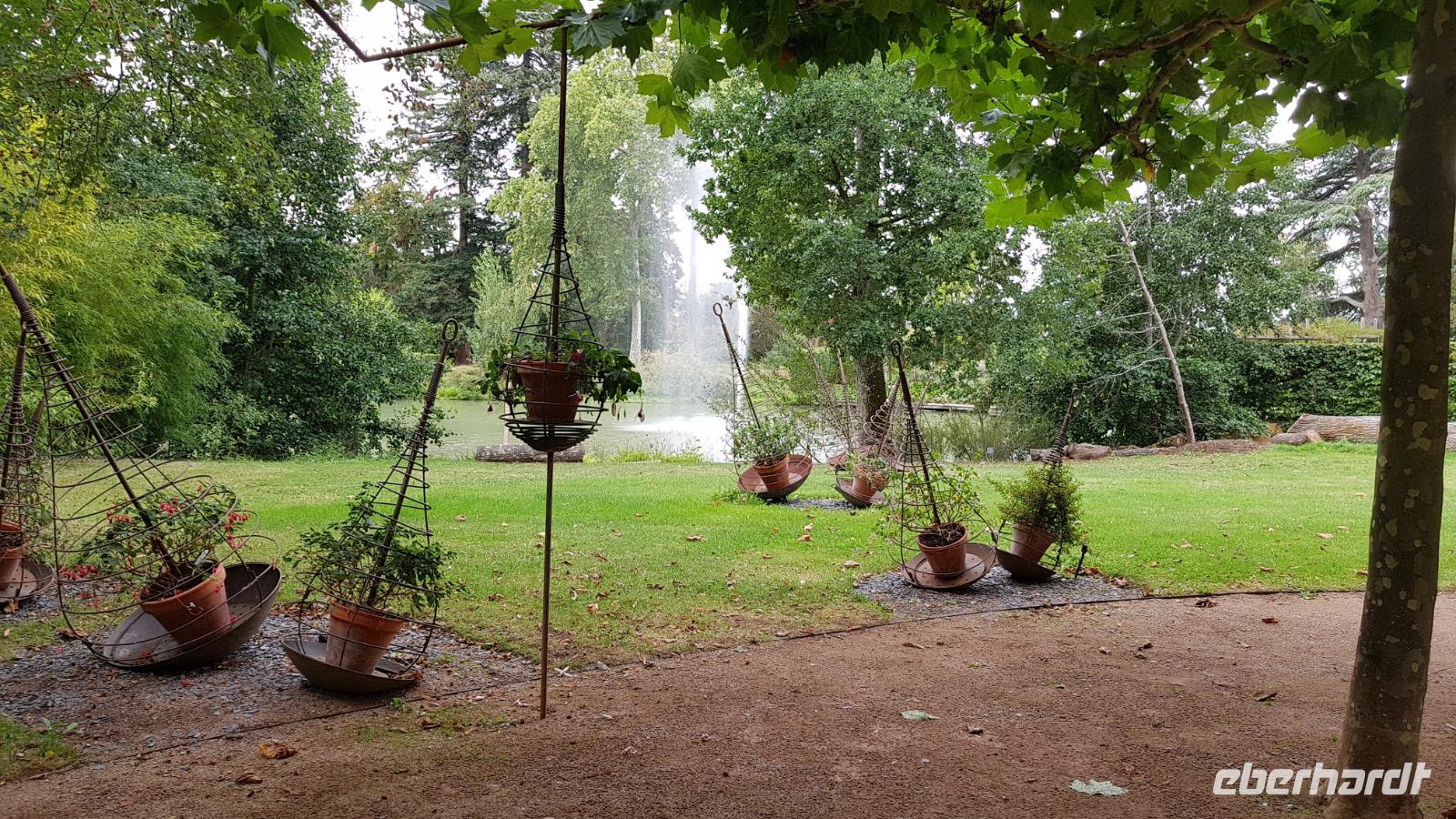 Anschließend besichtigten wir unseren ersten Garten, den Jardin de Viels-Maison. Die Besitzerin des Grundstücks Bertrande de Ladoucette, deren Vorfahre Jean Charles de Ladoucette als Präfekt von Gap das Anwesen im Jahr 1803 erworben hatte, führte uns persönlich durch ihren Garten. Das ehemalige Schloss der adligen Familie Châtillon und ihrer Nachfahren Vidame Jacquier wurde während der Revolution zerstört und Anfang des 19. Jahrhunderts abgerissen. Jean Charles de Ladoucette baute statt dessen den Portalbau des Areals zum Herrenhaus um und formte aus dem überkommenen Barockgarten einen englischen Landschaftspark. Diesen gestaltete die heutige Besitzer mit Hilfe der Landschaftsarchitektin Sonja Gauron zu dem heutigen, bezaubernden Gartenensemble um.