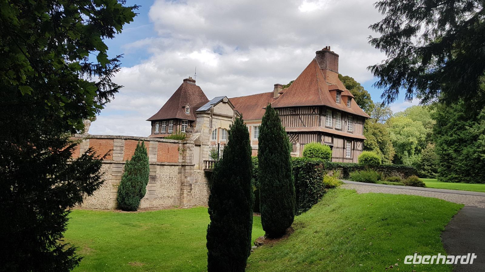 Nach diesen Eindrücken ließen wir die Picardie hinter uns und erreichten am späten Nachmittag die Normandie, die wir in den kommenden Tagen genauer kennen lernen sollten. Unser Hotel „Le Bertelière" befand sich in der Hügellandschaft des Plateaus der Seine, die Rouen, die alte Hauptstadt der Normandie, umgibt. Hier, inmitten von Gartengrundstücken konnten wir nun unsere Koffer für zwei Nächte abstellen und etwas ausspannen. Zum Abendessen gab es im Restaurant des Hotels ein leckeres Menü.
