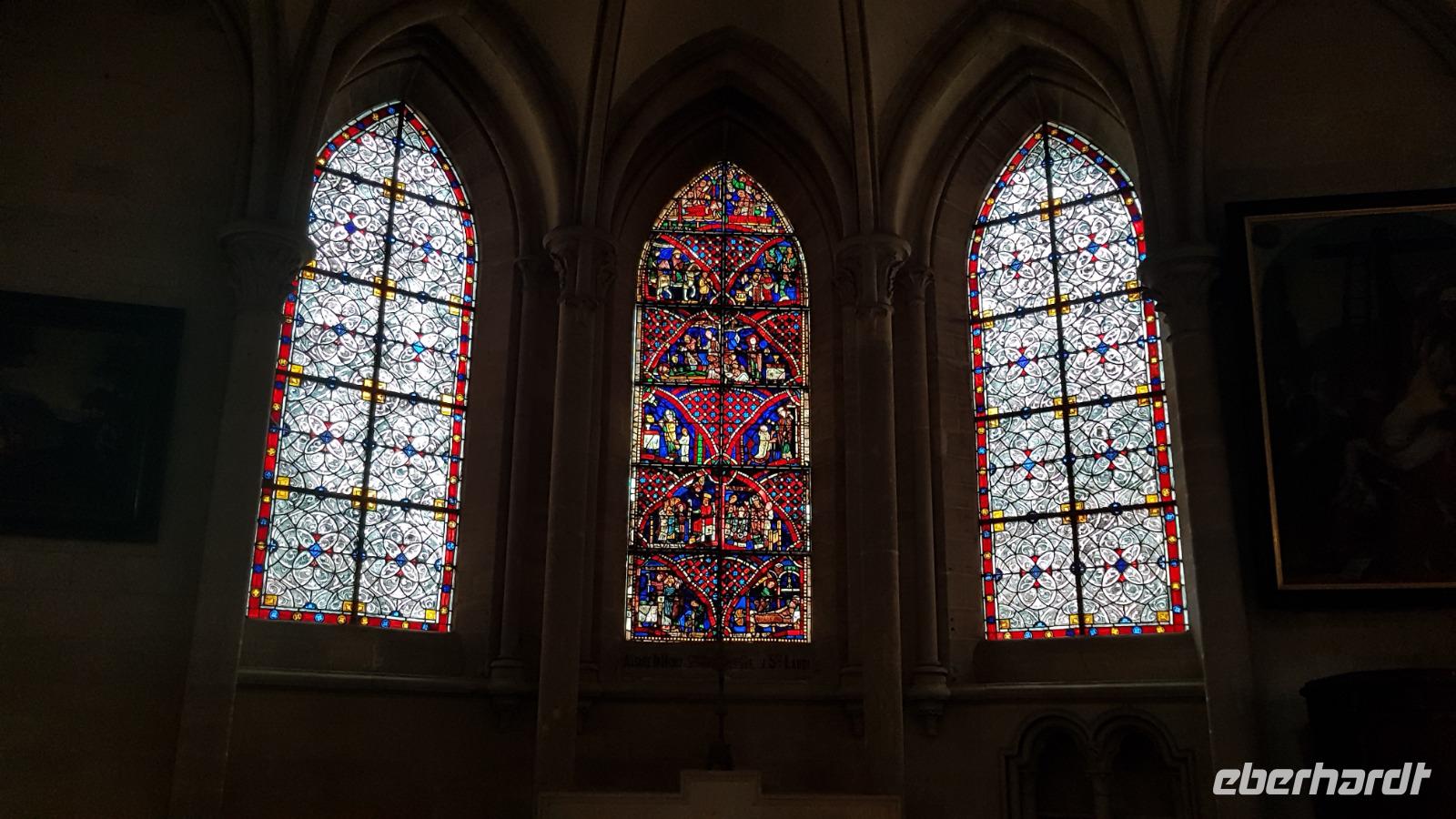 Am frühen Morgen besichtigten wir nach unserem Frühstücksbuffet im Hotel die Kathedrale von Chartres, die als Akropolis unter den Kathedralen Frankreichs gilt. Ihr romanischer Vorgängerbau war durch einen Stadtbrand im Juni 1194 niedergebrannt. Seine Hauptreliquie, den Schleier Mariens, der von Kaiser Karl dem Kahlen der Kathedrale geschenkt worden war, konnte jedoch rechtzeitig geborgen werden und blieb unversehrt. Innerhalb von 36 Jahren, und damit in der kürzesten Bauzeit aller Kathedralen Frankreichs gelang es dann, die Kathedrale neu zu errichten. Als Bauwerk stellt sie die Summe all dessen dar, was bis zu diesem Zeitpunkt in der Kathedralbaukunst erreicht worden war. Und zugleich präsentiert sie spektakuläre Neuerungen wie das erste Figurenportal der Spätromanik, die erste Rosette und das erste Mal den Grundriss des Lateinischen Kreuzes, der für alle späteren Kirchenbauten verpflichtend werden sollte. Die Kathedrale besitzt darüber hinaus den größten Schatz aller französischen Kathedralen an mittelalterlichen Glasmalereien, die teilweise zu den ältesten Frankreichs gehören. Nach unserer gemeinsamen Besichtigung hatten wir noch etwas Freizeit.
