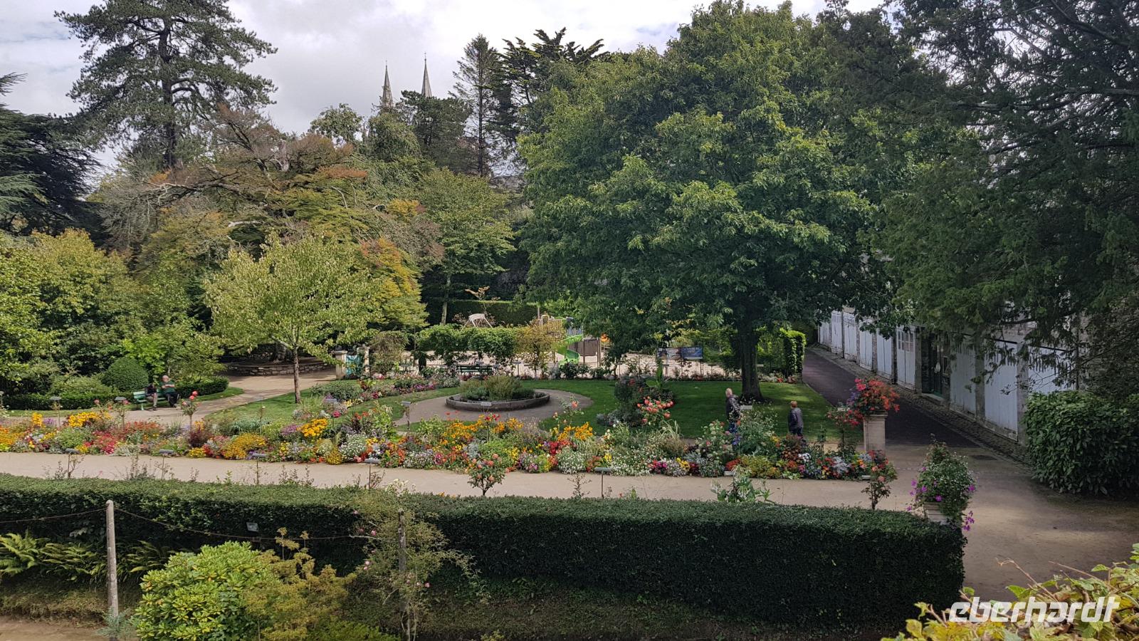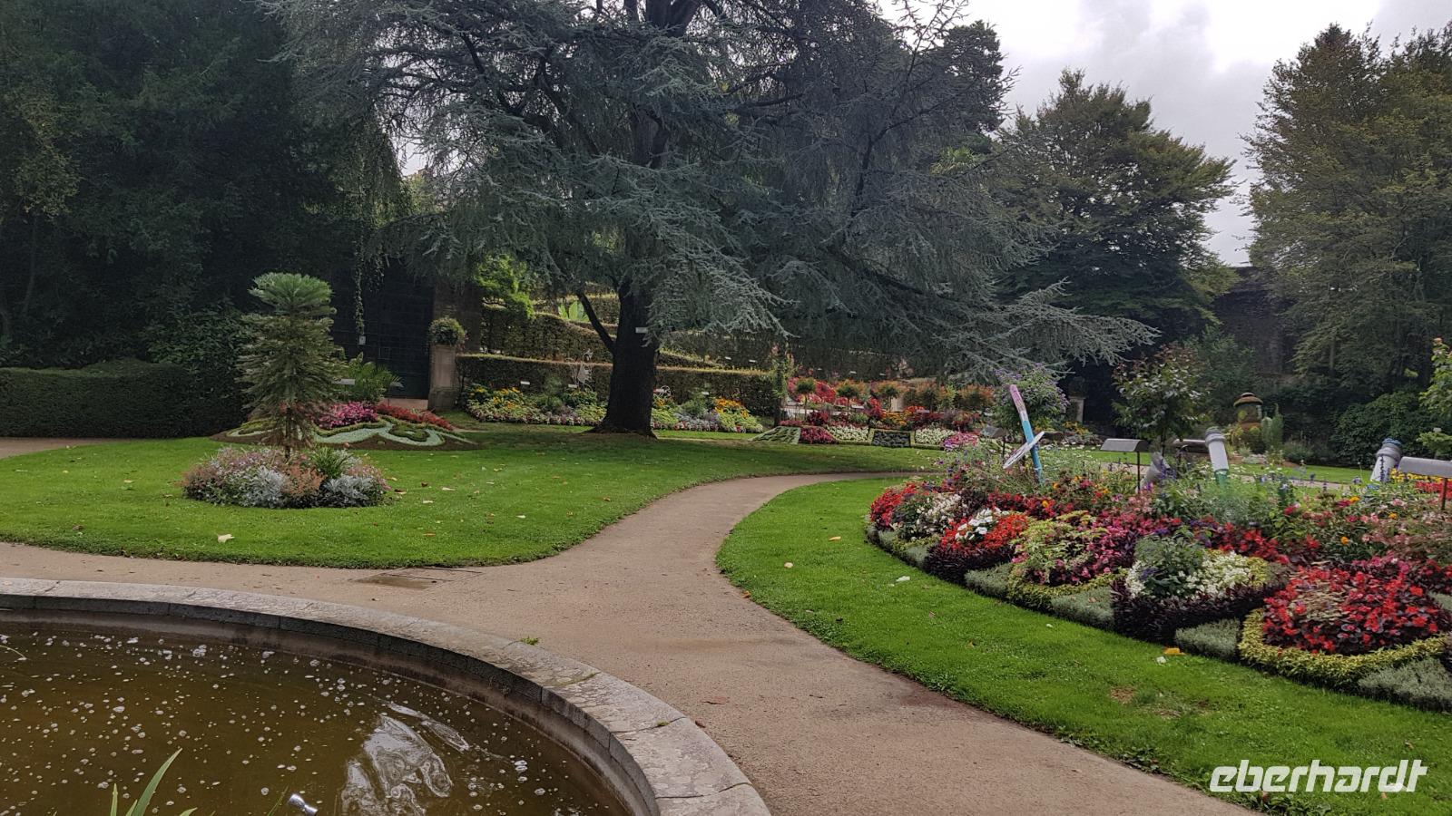 Anschließend fuhren wir in die Stadt Coutances, deren Name der Ursprung für den Namen der Halbinsel ist. Sie liegt auf einer Anhöhe liegt, wobei die Kathedrale den höchsten Punkt einnimmt. Diese Kathedrale steht für die Hochgotik in der Normandie, die inzwischen unter französischer Herrschaft stand. Wir besichtigten den imposanten Kirchenbau sowie den Jardin de Plantes de Coutances, der als öffentlicher Park mustergültig gepflegt ist. In jedem Jahr stehen seine Anpflanzungen unter einem besonderen Motto. In diesem Jahr dürfte es sich um das Thema „Spiele" gehandelt haben.