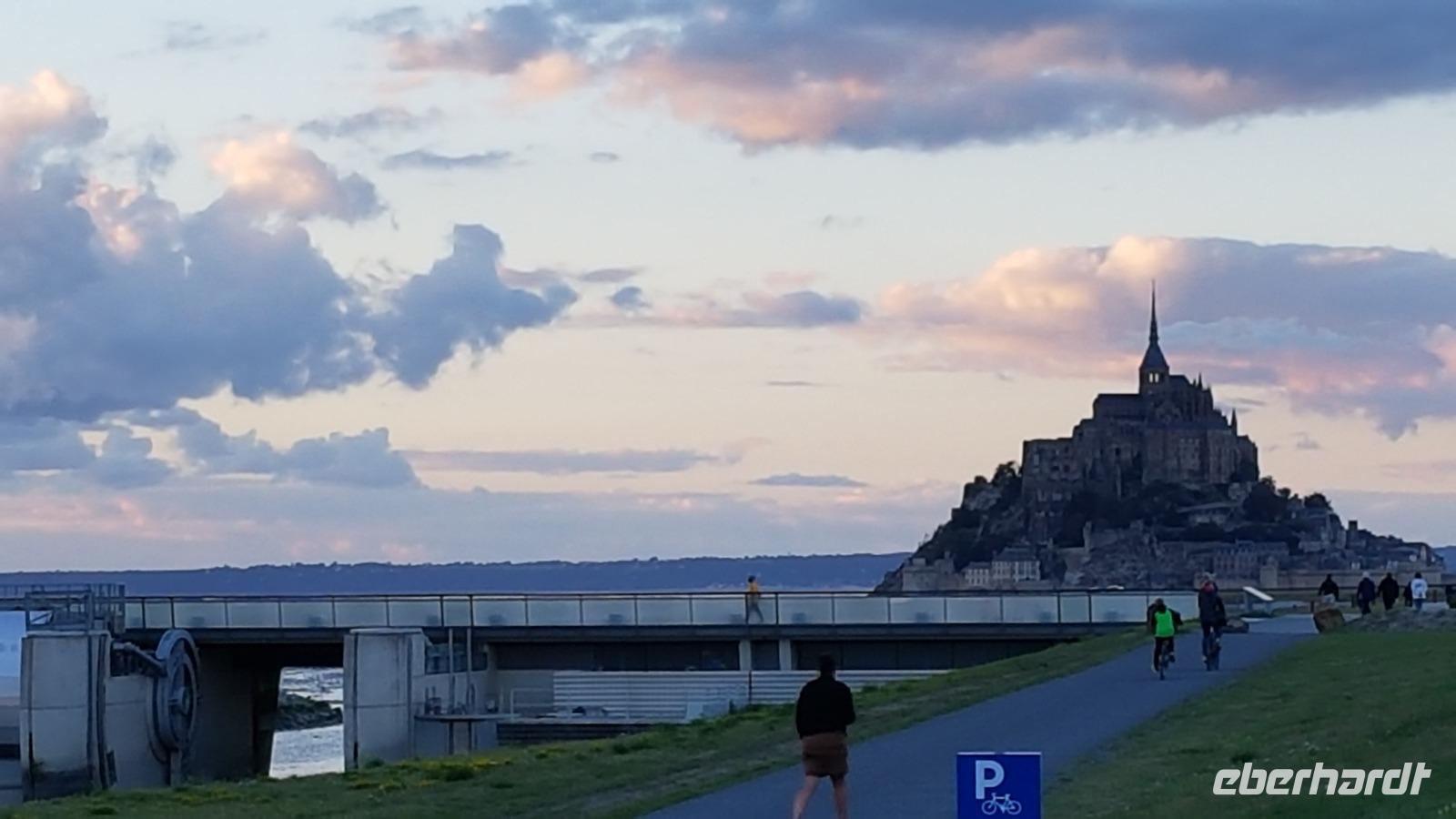 Dann fuhren wir weiter zum Mont-St-Michel, wo wir diesmal im Schatten des Klosterbergs im Hotel Maritim übernachteten. Wenn das Abendessen im Hotelrestaurant mit dem Omelette Montoise für viele aus unserer Gruppe auch eine Enttäuschung war, so entschädigte einige vielleicht der Abendspaziergang bei untergehender Sonne zum Abteiberg.