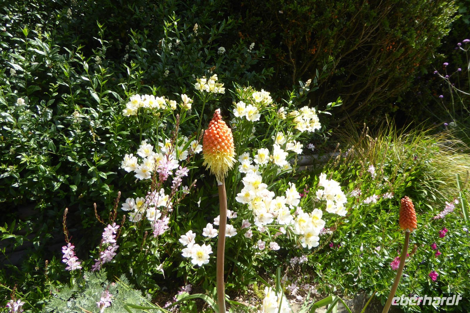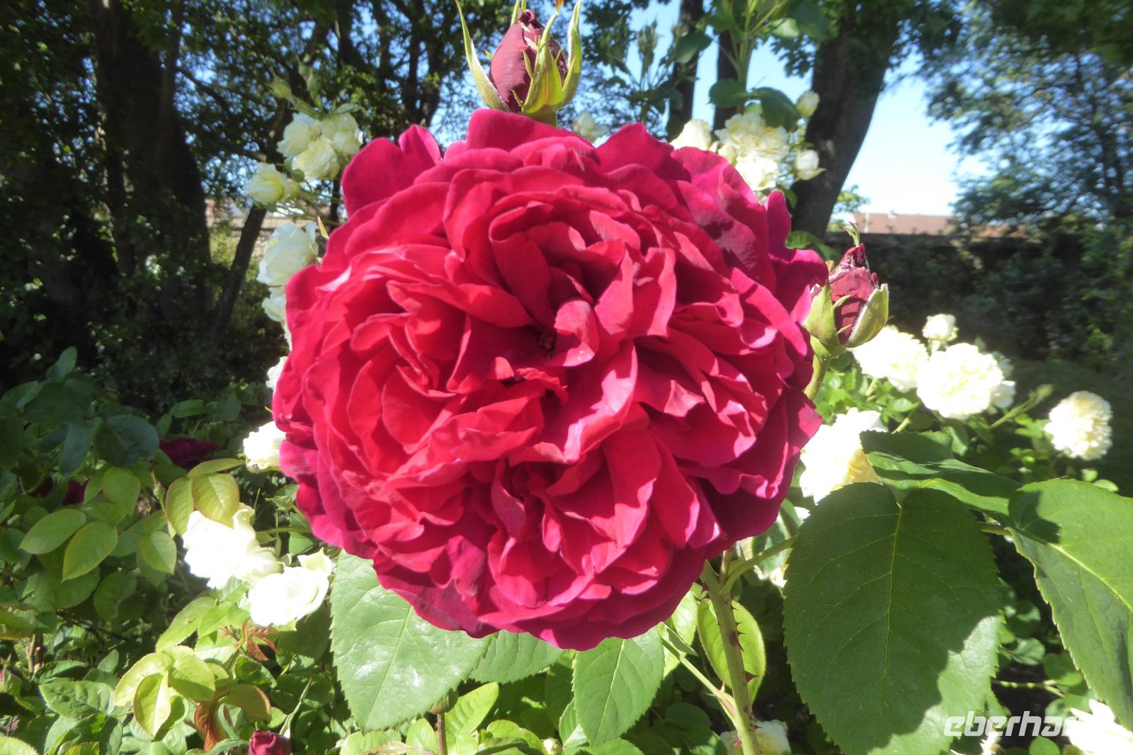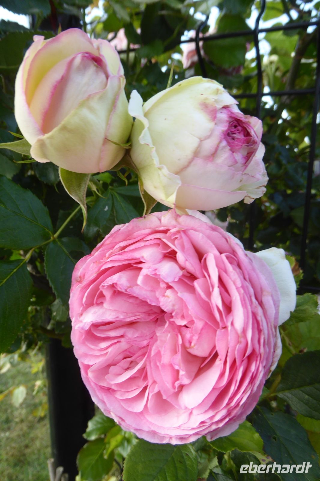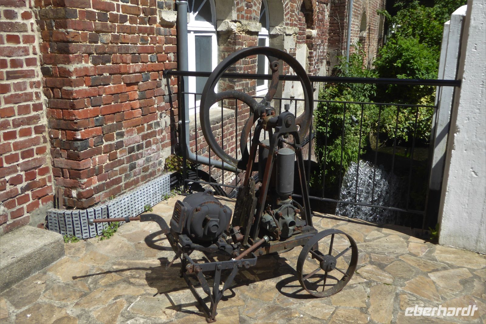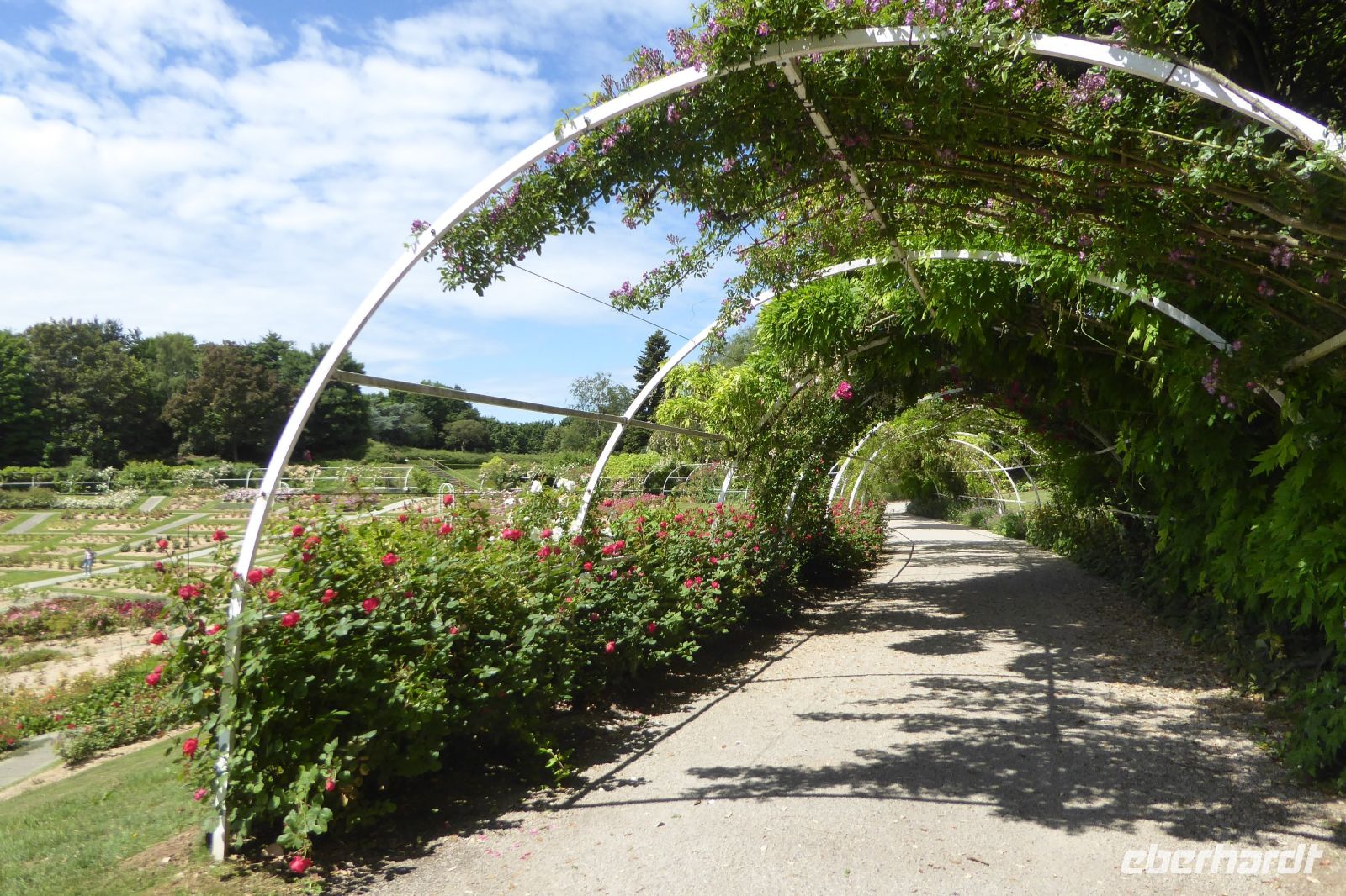 Auf Apfelwiesen weidende Kühe sind ein typisches Bild für das Pays d'Auge, einem Landstrich in der Normandie. Cidre, Calvados und Camembert gehören deshalb ebenso dazu wie die landestypischen Fachwerkhäuser. Über die eigenwillige Streckenführung unseres Fahrers Jens Fritsch gelangten wir auf engen Nebenstraßen nach Cambremer. Auf dem vier Hektar großen gepflegten Gartengelände von Armelle und Jacques Noppe findet man einige alten Gebäude, die Monsieur Noppe vor dem Verfall gerettet und in seinem Garten wieder aufgebaut hat. Liebevoll eingerichtet mit alten Handwerksgeräten erzählen sie heute vom Leben der Menschen früherer Generationen. Der Landschaftsarchitektin Chantal Lejard-Gasson oblag die Planung des Gartens mit seinen verschiedene Themengärten: ein Sonnengarten, ein Mondgarten, der Garten der Düfte, der Engel, des Teufels, ein Purpurgarten und einige mehr. Und immer wieder die üppig blühenden beeindruckend duftenden Rosen! Der Rasen lud zum barfuß laufen ein und jeder Besucher findet hier sein ruhiges Plätzchen.