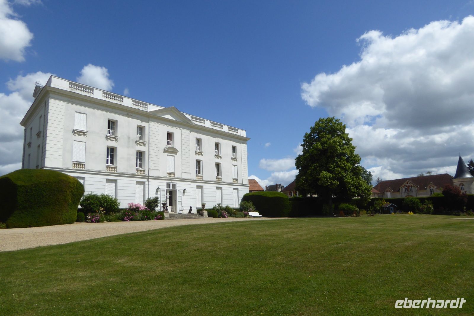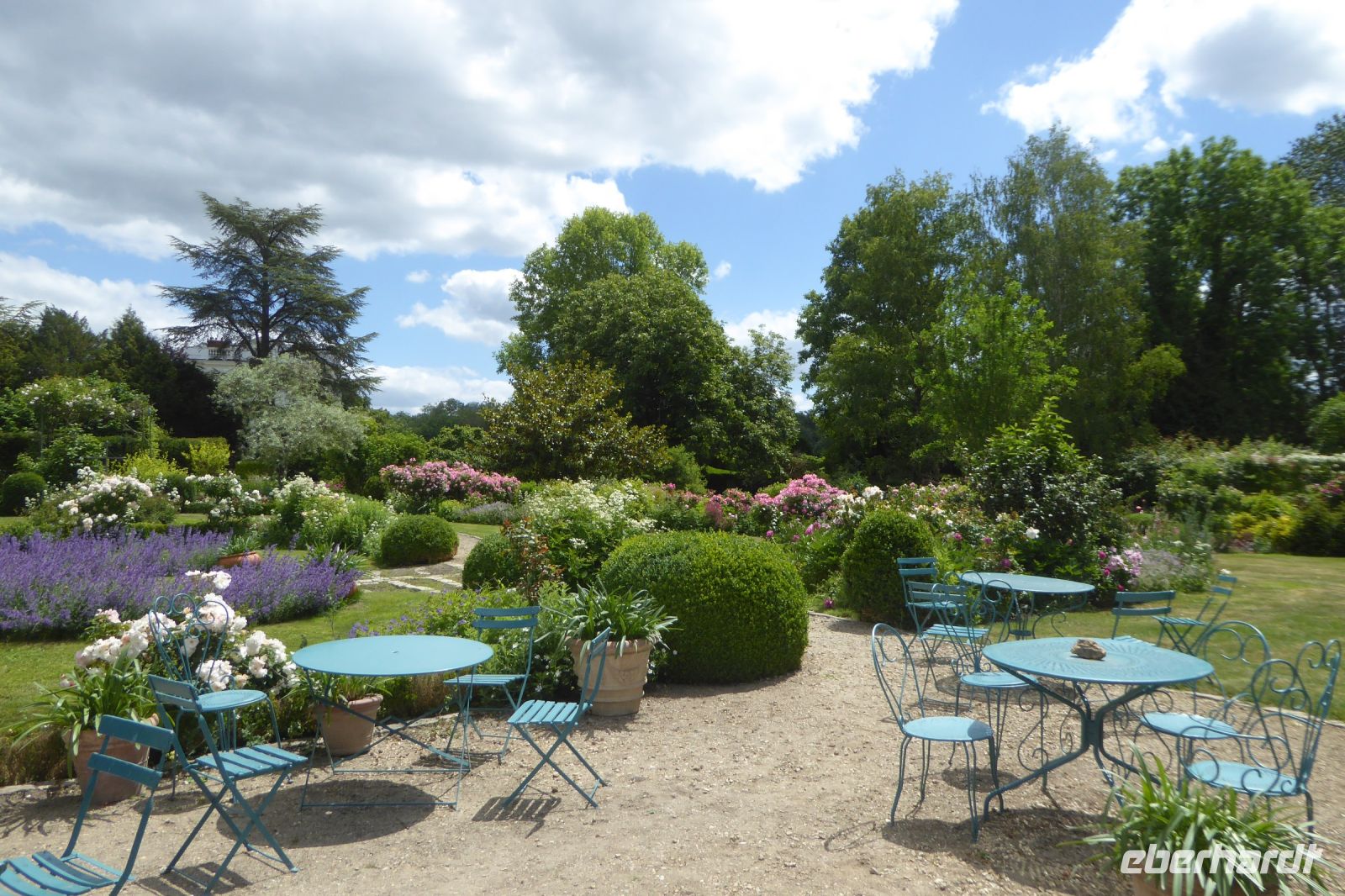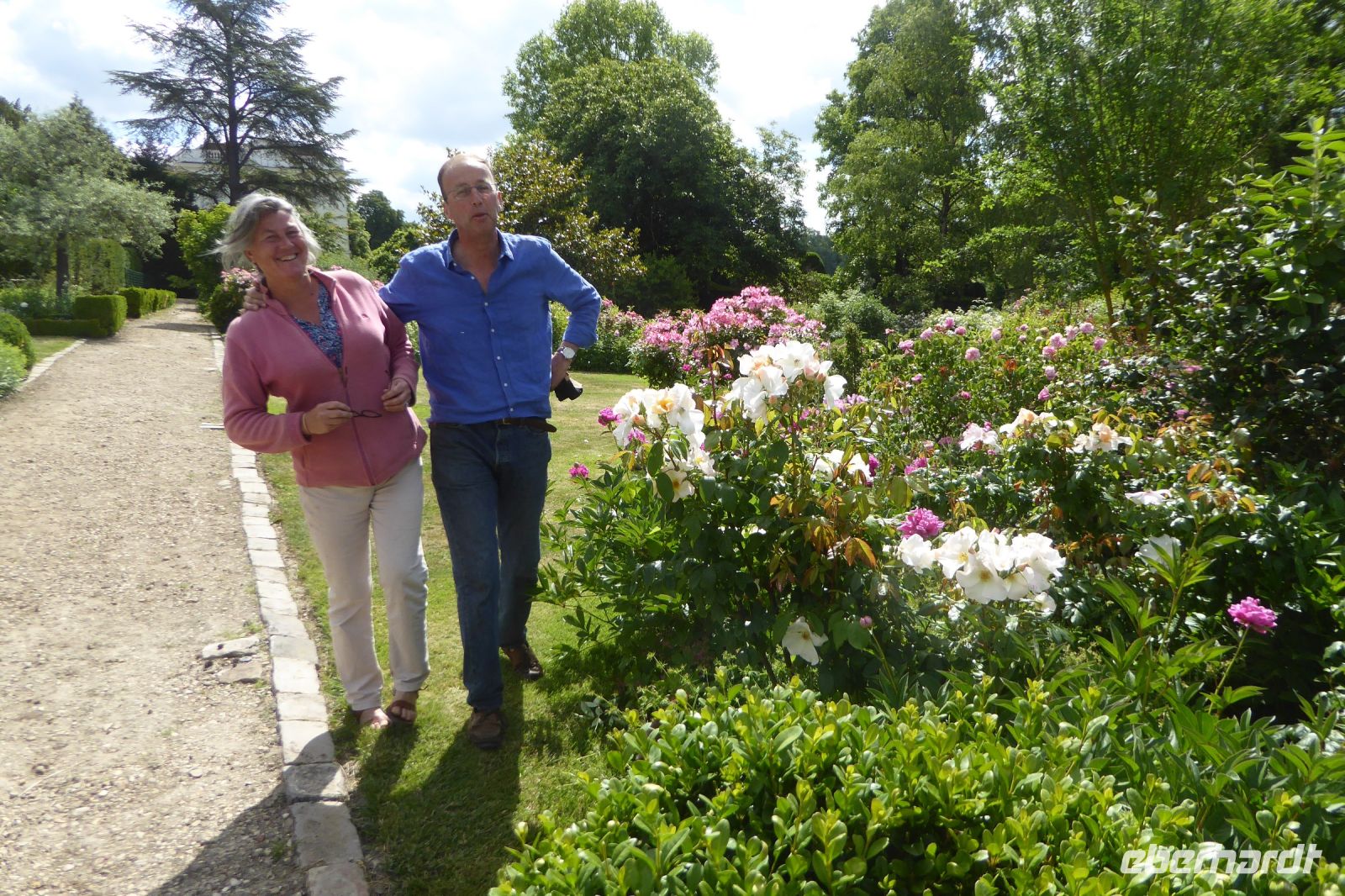 In der kleinen Gemeinde Viels-Maisons mit gerade mal 1.179 Einwohnern in der Region Hauts-de-France bei Château-Thierry wurde im 18. Jahrhundert Geschichte geschrieben: der Postmeister des Ortes erkannte Ludwig XVI und meldete die Flucht der königlichen Familie den Revolutionären nach Paris. Der weitere Verlauf der Geschichte ist bekannt, die Guillotine stand schon bereit. Seit 1803 lebt die Familie Ladoucette in dem klassizistischen Herrenhaus, umgeben von einem 3 Hektar großen Garten. Damals wurden die heute riesigen Sequoien gepflanzt. Wir schlenderten durch das Anwesen, begleitet vom Ehepaar Ladoucette, das uns sogar einen Blick in das Herrenhaus gestatte. Wir bestaunten die Sumpfzypressen auf einer Insel, die üppig blühenden Stauden und Obstbäume im Priester Garten gleich neben der romanischen Kirche und schnupperten an den prächtigen duftenden Rosen, die gerade in voller Blüte standen. Die Hausherrin erzählte uns viel Wissenswertes und Monsieur Ladoucette, ein Offizier, erfreute uns mit einer kleinen Geschichte von Jean de La Fontaine. Zum Schluss wurden wir noch mit frischem kühlen Apfelsaft bewirtet, bevor wir uns auf die Weiterfahrt zum knapp 100 Kilometer entfernten Schloss Chantilly machten.