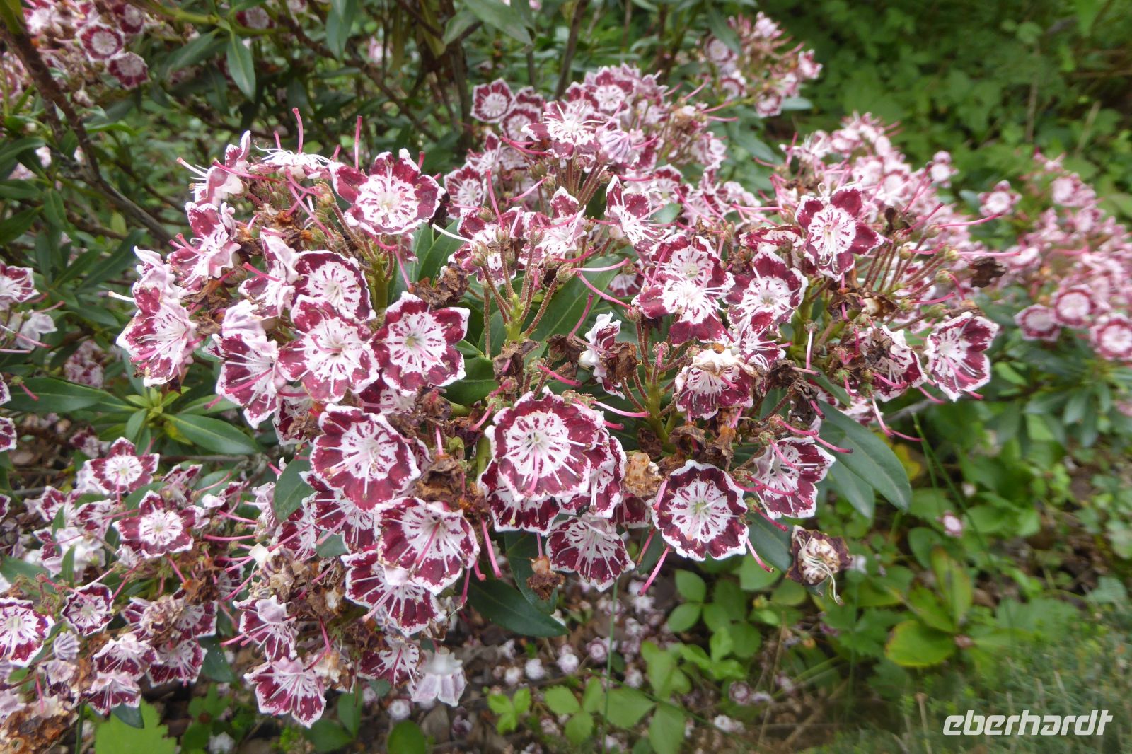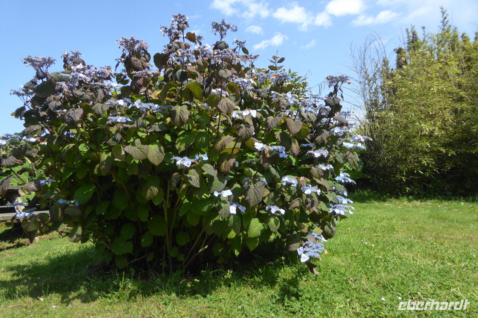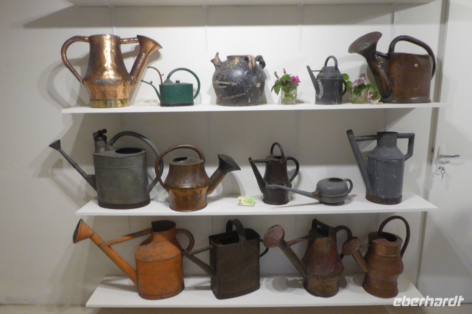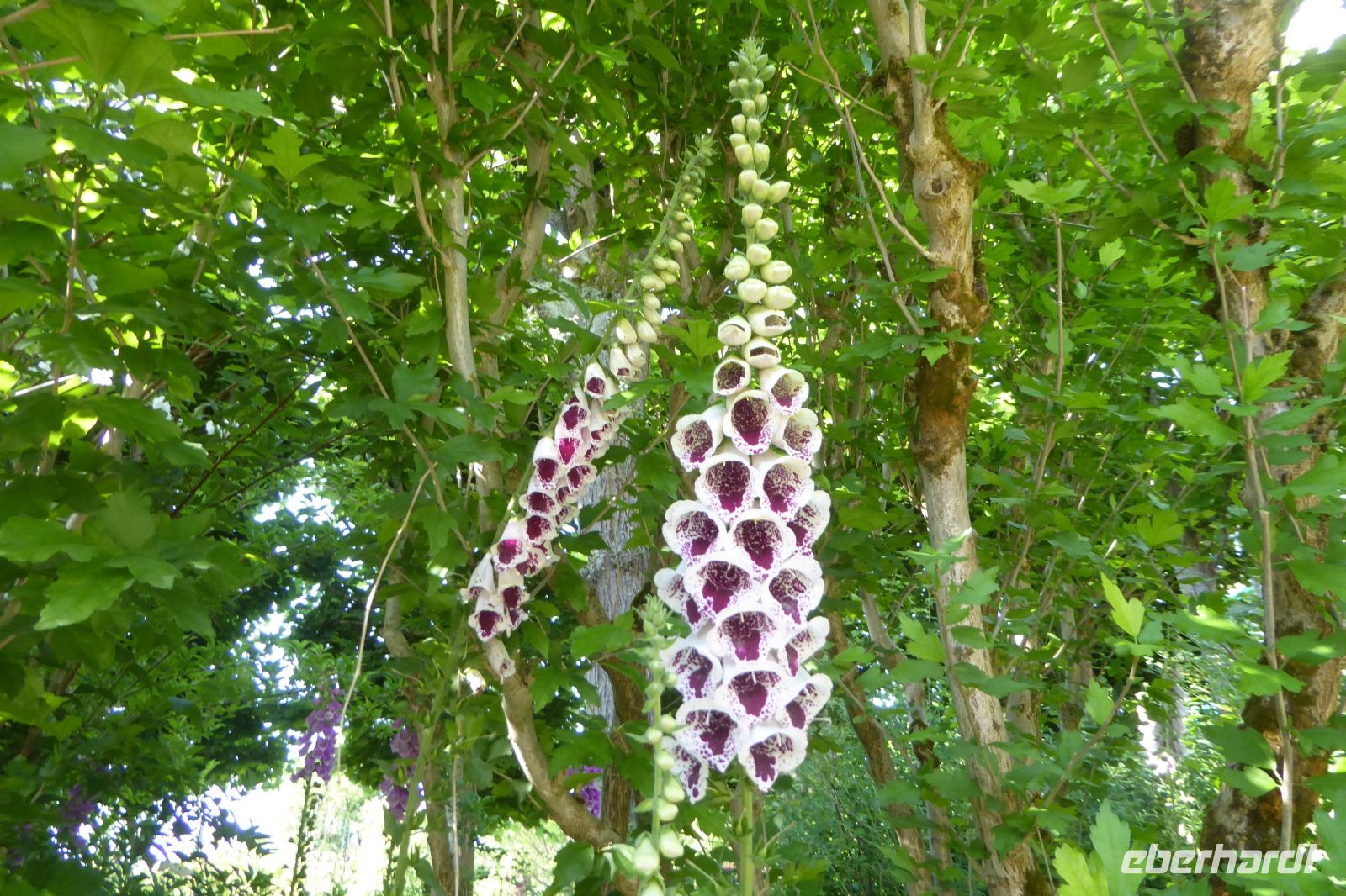 Wir verabschiedeten uns vom Meer und fuhren wieder auf engen kurvigen Nebenstraßen gut 200 Kilometer ostwärts in den Süden der Normandie ins Département Orne. Normannische Hecken- und Weidelandschaft, sanfte Hügel, grüne Wiesen mit Apfelbäumen, Herrenhäuser und edle Pferde prägen diesen Teil der Normandie. Der Garten Francois liegt südöstlich des größten zusammenhängenden Waldgebietes der Normandie, dem Forêt de Bellême im Regionalen Naturpark Perche. Der Garten ist eine kleine friedliche Naturoase mit herrlichen Blumen, blühenden Stauden, duftenden Rosen und aromatischen Kräutern. Wir bewunderten seltene Eschenarten, einen Erdbeerbaum, den Blumenhartriegel und den Sieben-Söhne-des- Himmels- Strauch, Heidekraut in unterschiedlichsten Arten, Azaleen und Rhododendren, die leider von einer die Blüten zerstörenden Krankheit befallen waren. Die Regenschauer der vergangenen Tage hatten dem Rosengarten schwer zugesetzt, tausende Blütenblätter lagen auf dem Boden. Ein plätschernder Bachlauf säumt das Haus und Klavierklänge umschmeicheln das Ohr. Der Patron Francois persönlich führte uns durch sein Paradies und bewirtete uns mit selbstgemachtem Cidre, Apfelsaft und Hefegebäck.