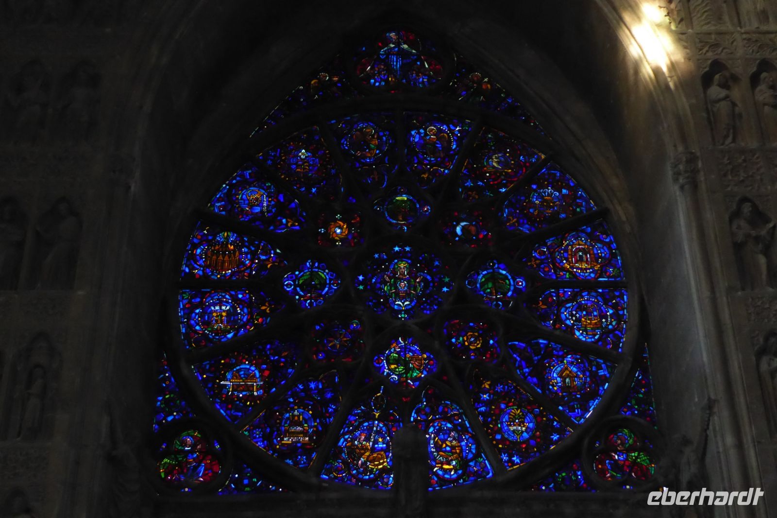 Am frühen Abend trafen wir in Chartres ein. Nach einem leckeren Abendsessen in der örtlichen Crêperie "La Picoterie" ließen wir uns von der Lichtshow verzaubern, die die Geschichte der Kathedrale mit buntem Licht auf die Fassade malte. Da die Kathedrale schon um 8.30 öffnet, hatte jeder Gast am nächsten Morgen individuell die Möglichkeit, das berühmte Gotteshaus auch im Inneren zu besichtigen. Viele Geschichten ranken sich um das Bauwerk. Dem Baubeginn um 1194 folgte die offizielle Weihe am 24. Oktober 1260. Der Bildhauer Auguste Rodin nannte sie die "Akropolis Frankreichs". Seit 1979 steht sie auf der Welterbeliste der UNESCO. Chartres ist im Laufe der Geschichte nie zerstört worden. Während an vielen Kathedralen die Portalfiguren im Bildersturm der Hugenotten oder der Französischen Revolution vernichtet wurden und zahllose Glasmalereien noch nach dem Zweiten Weltkrieg dem Bedürfnis nach mehr Helligkeit zu Opfer fielen, sind hier der gesamte figürliche Schmuck sowie die farbigen Glasfenster fast unversehrt erhalten. Daher vermittelt die Kathedrale von Chartres die Atmosphäre der Hochgotik so intensiv und unverfälscht wie kein anderes Gotteshaus.