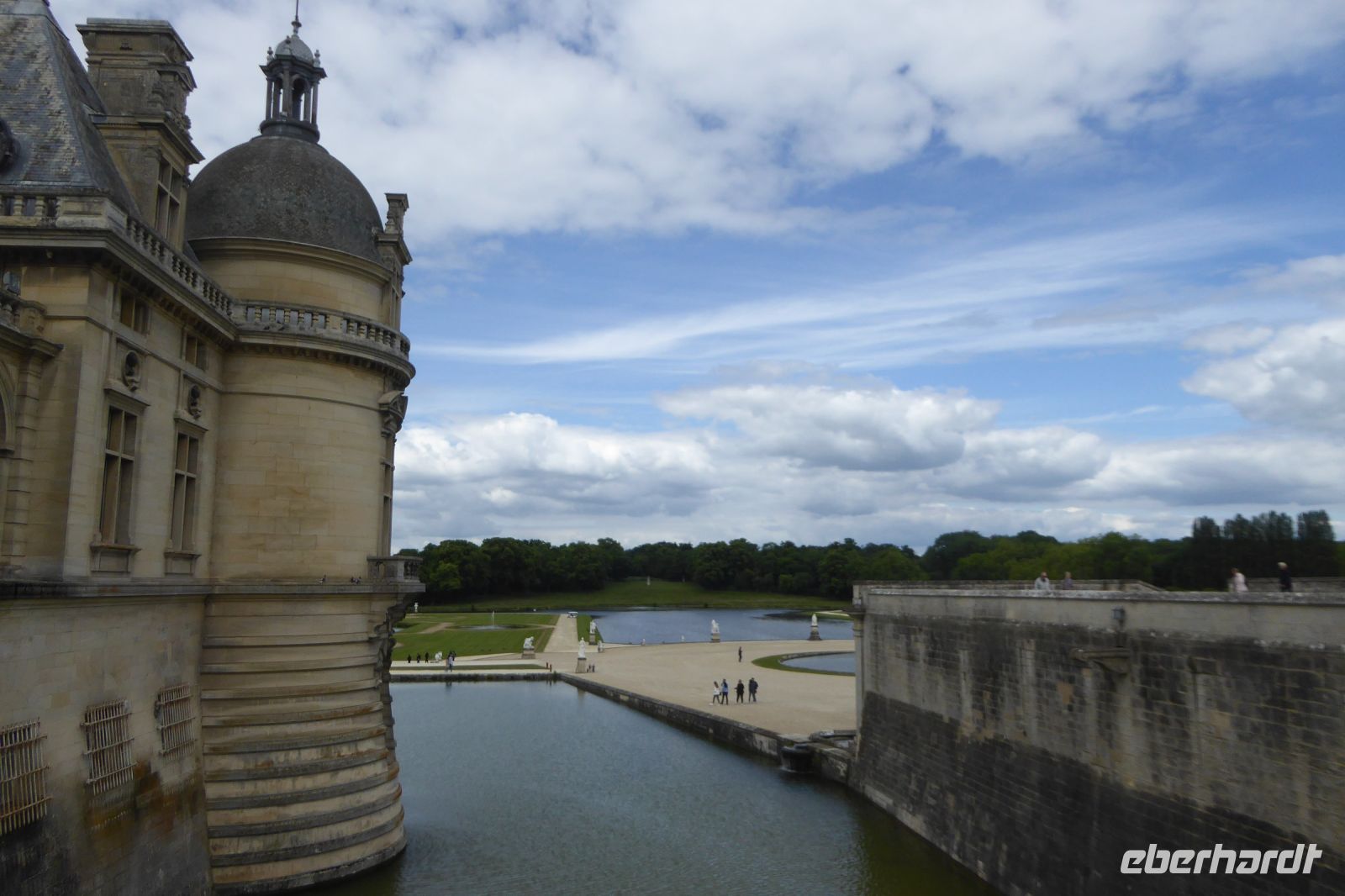 Um 1560 für Anne de Montmorency erbaut, gelangte das Schloss knapp 100 Jahre später nach Aussterben der Hauptlinie der Montmorency durch Erbschaft an die Prinzen von Bourbon-Condé. Mit Unterbrechung während der Revolutions- und Napoleonzeit verblieb das Anwesen in deren Besitz und kam 1830 an den Herzog von Aumale, einen jüngeren Sohn des Bürgerkönigs Louis-Philippe, der das in der Revolutionszeit zerstörte Schloss ab 1876 wieder aufbauen ließ. Wiederum hundert Jahre später diente das Schloss als Kulisse für den James-Bond-Spielfilm ´Im Angesicht des Todes´. Das Schloss beherbergt eine hochkarätige Kunstsammlung mit wertvollen Handschriften und Buchmalereien des Mittelalters, deren bedeutendste das ´Stundenbuch des Herzogs von Berry´ ist, sowie Gemälde und Zeichnungen von Dürer, Raffael, Poussin, Lorrain und anderen Künstlern, die der Herzog von Aumale zusammengetragen hat. Der Garten lag in der prallen Sonne und so musste eine Entscheidung getroffen werden: lieber ein leckeres Eis mit Crème Chantilly im Baumschatten am Rande des Parks oder doch noch zu den größten Pferdeställen Europas zu marschieren, um die Dressurshow in dem 28 Meter hohen Kuppelsaal zu bewundern.