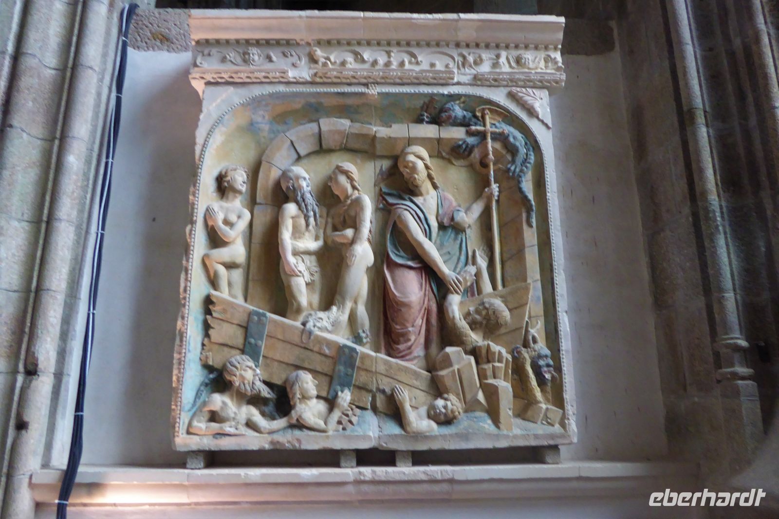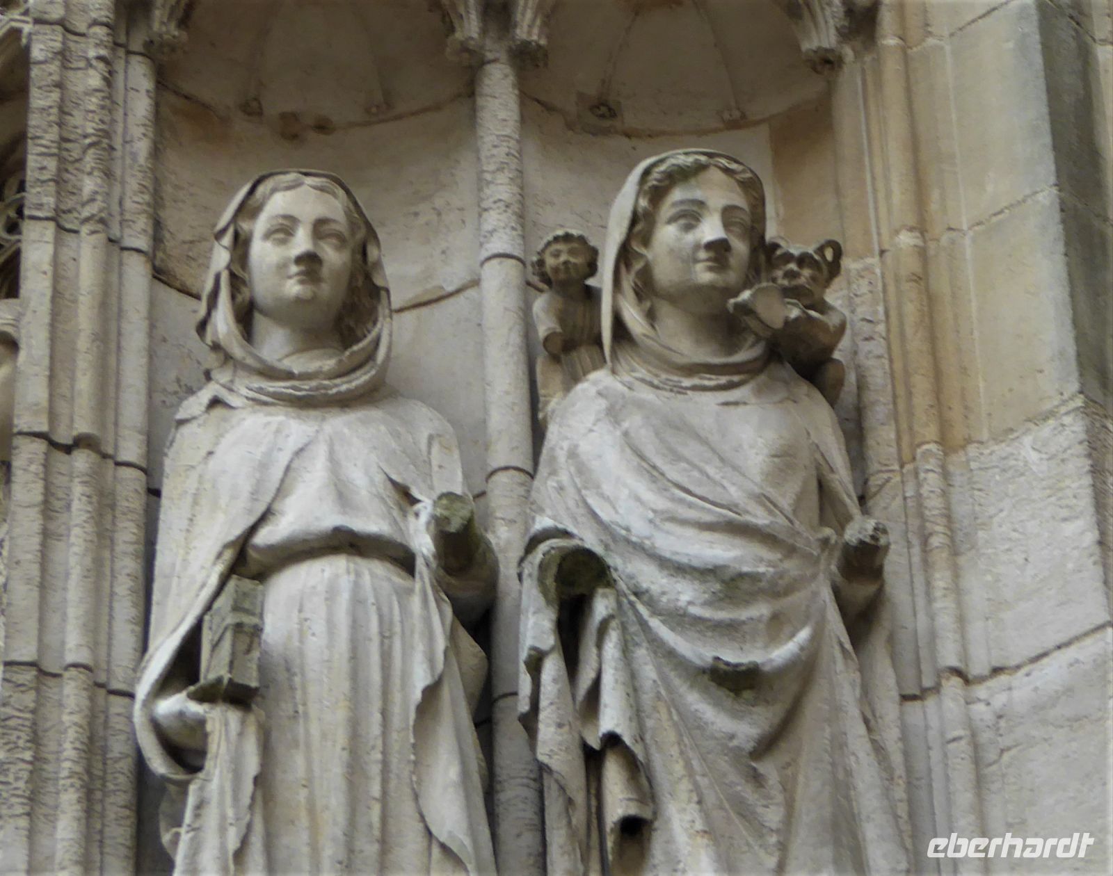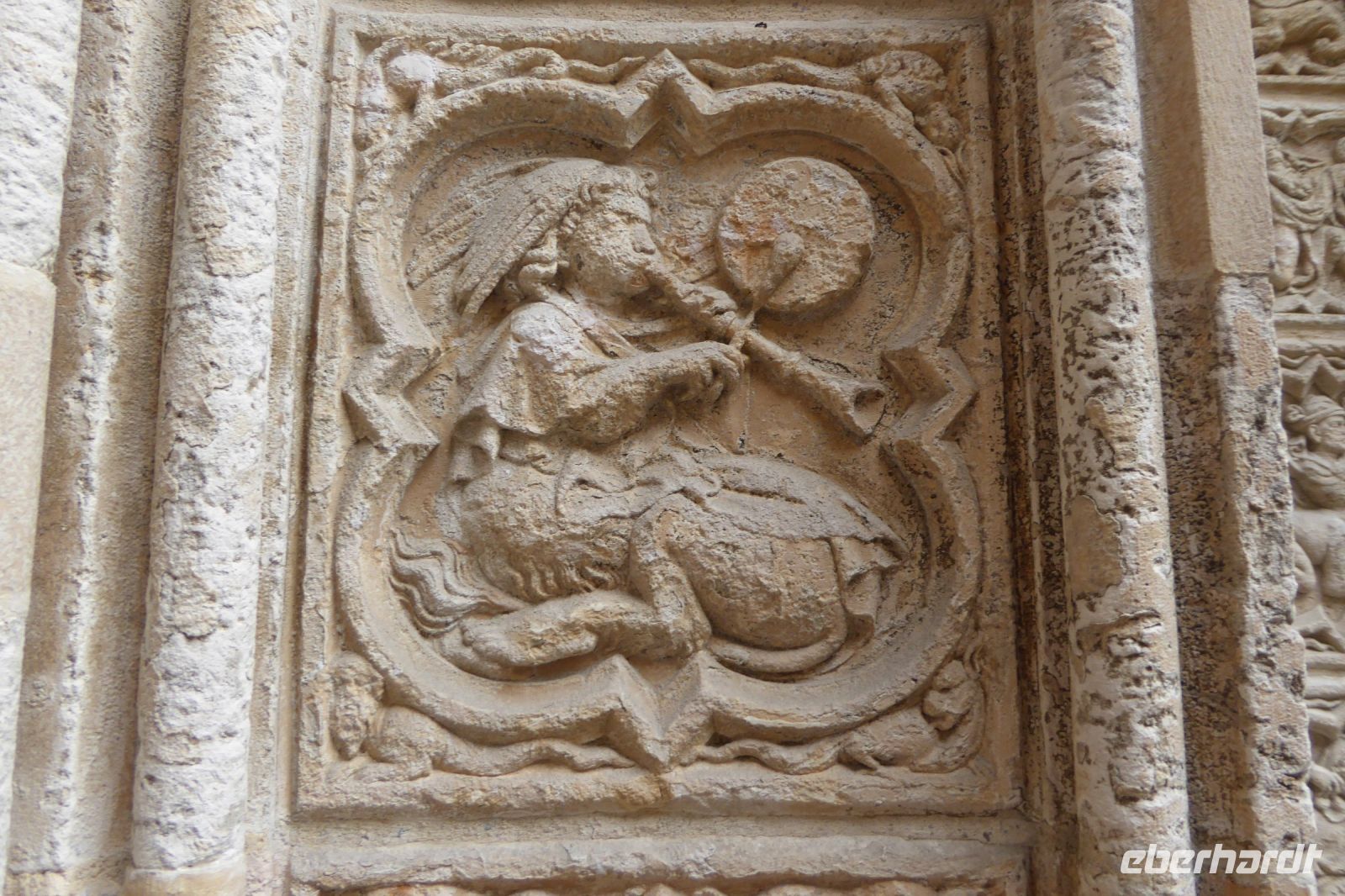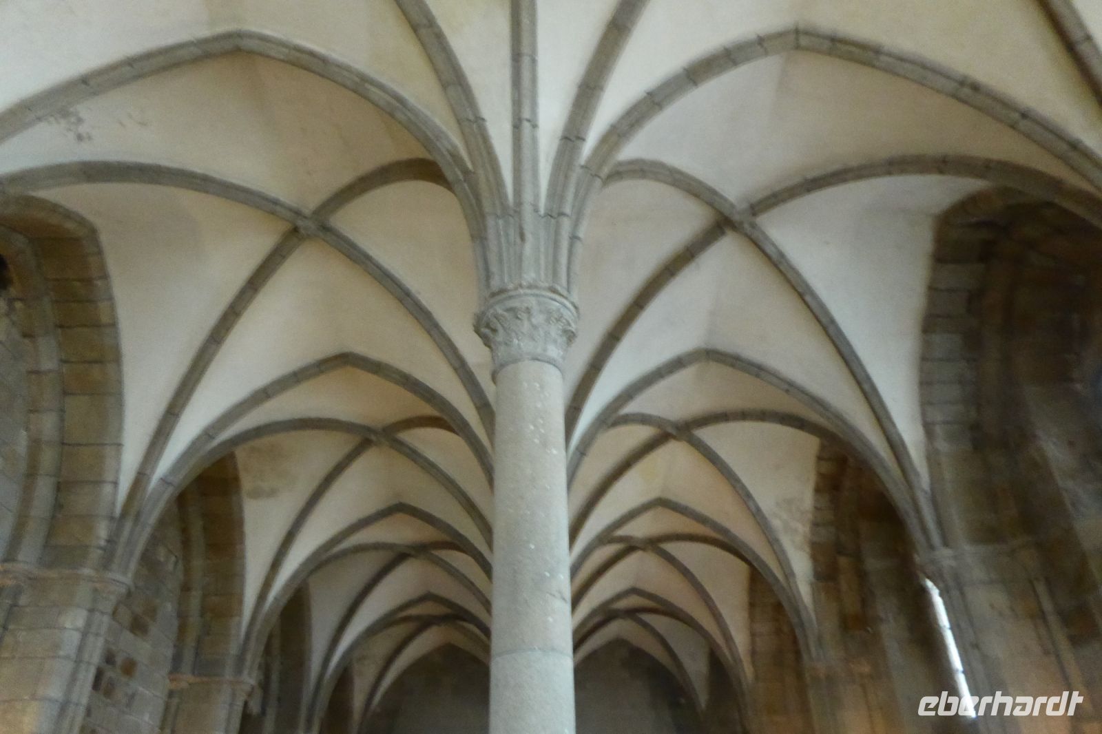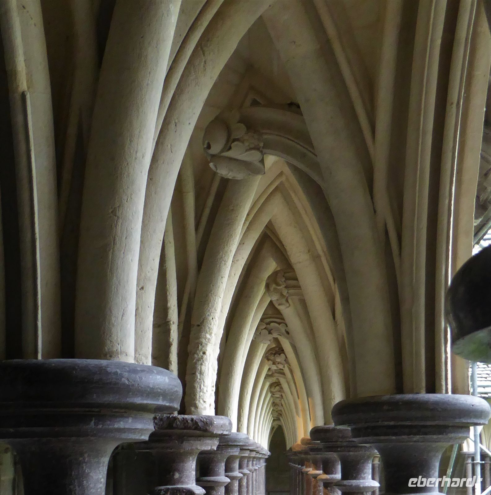 Anschließend stand ein Besuch in Saint Martin de Boscherville auf dem Programm. Die Abteikirche Saint-Georges, ist ein gut erhaltenes Beispiel normannischer Romanik, mit zwei zierlichen Westtürmen und einem reich gegliederten und ornamentierten Stufenportal. Der Skulpturenschmuck im Inneren, reich dekorierte Kapitelle sowie die figürlichen Reliefplatten der Querhausemporen, sind durch übereifrige Restaurierungsmaßnahmen leider kaum mehr zu erkennen. Der ehemalige Kapitelsaal aus dem 12./13. Jahrhundert begeisterte uns durch eine außergewöhnlich reich gestaltete dreiteilige Portalzone mit Säulenfiguren und einem bemerkenswerten Rippengewölbe im gut sechs Meter breiten Innenraum.