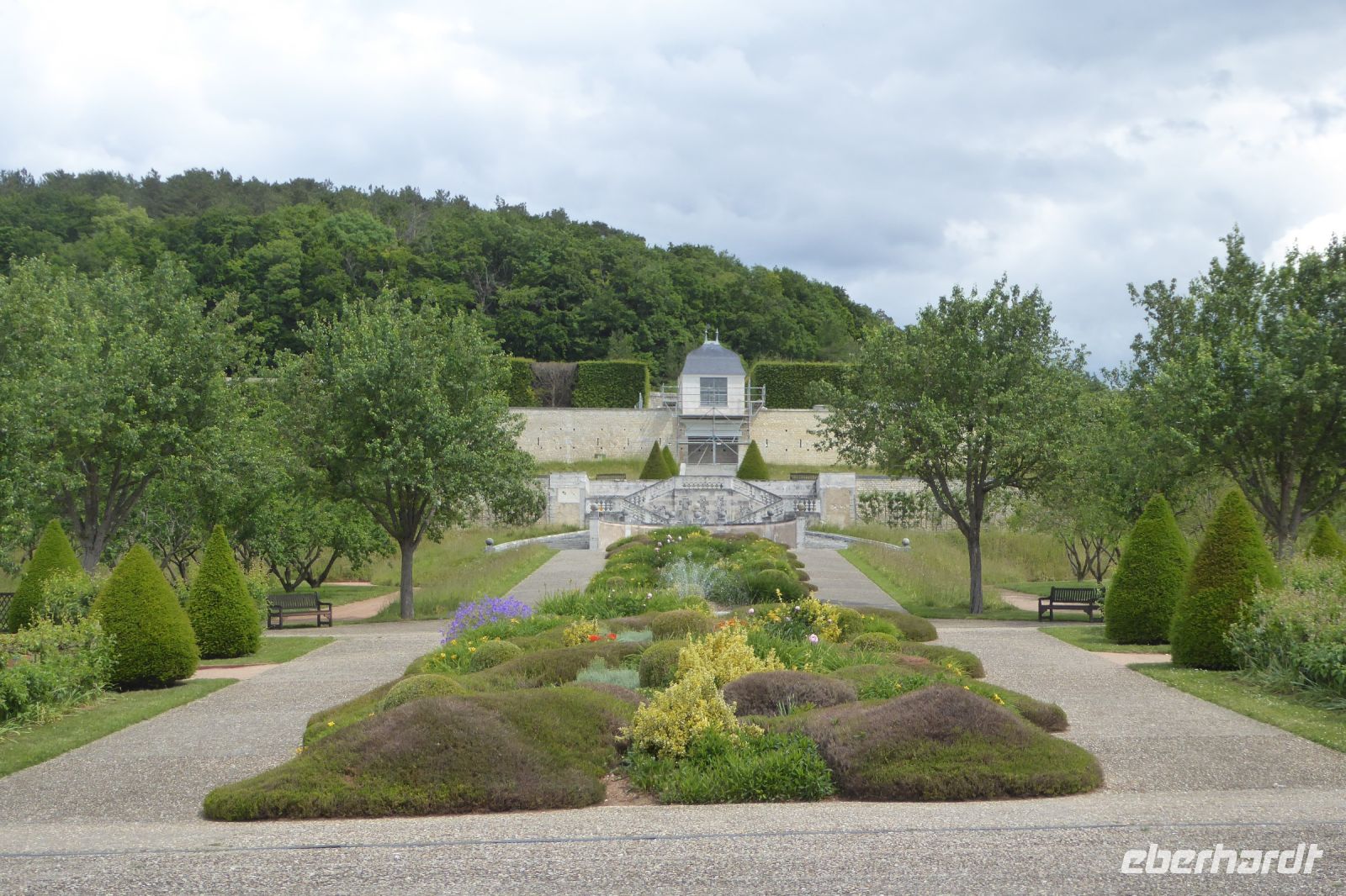 Mit dem Schloss Fontainebleau sind die sogenannte Erste und Zweite Schule von Fontainebleau verknüpft, von der wichtige Kunstimpulse der französischen Malerei ausgingen. Wir spazierten durch die prunkvollen Gemächer und bewunderten die wertvollen Kunstschätze. Der Park, den der königliche Gartenarchitekt Le Nôtre für den König Ludwig XIV angelegt hat, ist großzügig und weitläufig, mit großen Wasserbecken, jedoch weitgehend ohne schattenspendende Bäume. Der Garten im hinteren Hof war leider wegen der vorangegangenen Unwetter für den Publikumsverkehr gesperrt.