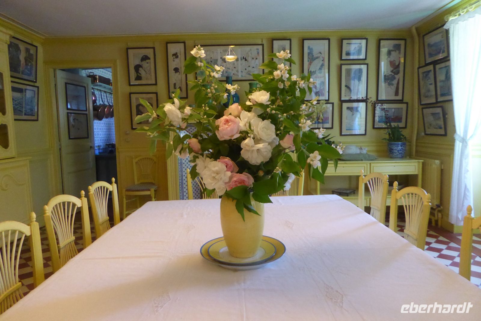 Gleich am frühen Morgen besuchten wir das Anwesen von Claude Monet in Giverny. Erwartungsgemäß herrschte dort großer Andrang. Elegant schlängelten wir uns an den Wartenden vorbei und gelangten schnell zum versteckt in einer Gasse liegenden Eingang. Da alle Besucher zuerst zum Seerosenteich strömten, entschieden wir uns, das Wohnhaus und den bunten Blumengarten zuerst zu besuchen. Im Wohnhaus, inmitten des blühenden Gartenparadies, hängen Replikate berühmter impressionistischer Gemälde und Fotografien aus der Zeit Monets sowie Bilder und Holzschnitte des japanischen Malers Katsushika Hokusai, der, wie vieles mehr aus dem fernöstlichen Raum, großen Einfluss auf das Werk Monets und die Künstler seiner Zeit hatte. Die Gartenanlage ist eine einzige bunte Malerpalette an Farben! Um den berühmten Seerosenteich mit der Brücke nach japanischem Vorbild drängten sich Besucher aus aller Welt. Jeder war nach seine Weise auf der Suche nach dem Zauber dieses besonderen Ortes. Monet liebte diesen Ort und seinen Garten. Er las Fachliteratur und besuchte Gartenausstellungen. Der Garten war ihm Erholung und Inspiration. Sein Spätwerk schöpfte er ausschließlich aus der Idylle seiner selbstgeschaffenen Enklave. Das im Alter nachlassende Augenlicht ließ ihn seine Bilder mehr erspüren als dass sie noch reale Abbilder der Wirklichkeit waren. Auf dem kleinen Dorffriedhof von Giverny fand der Maler seine letzte Ruhestätte.