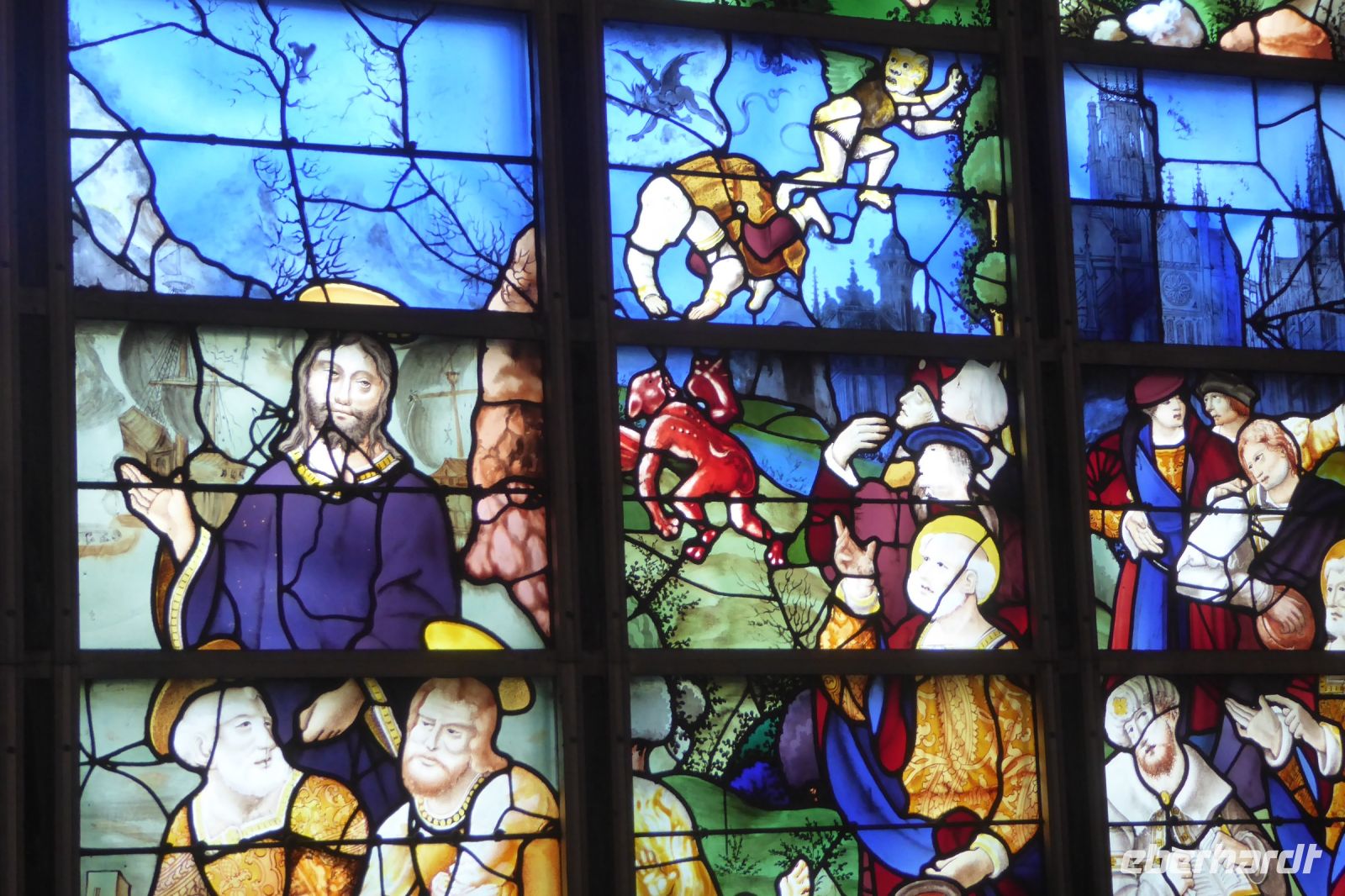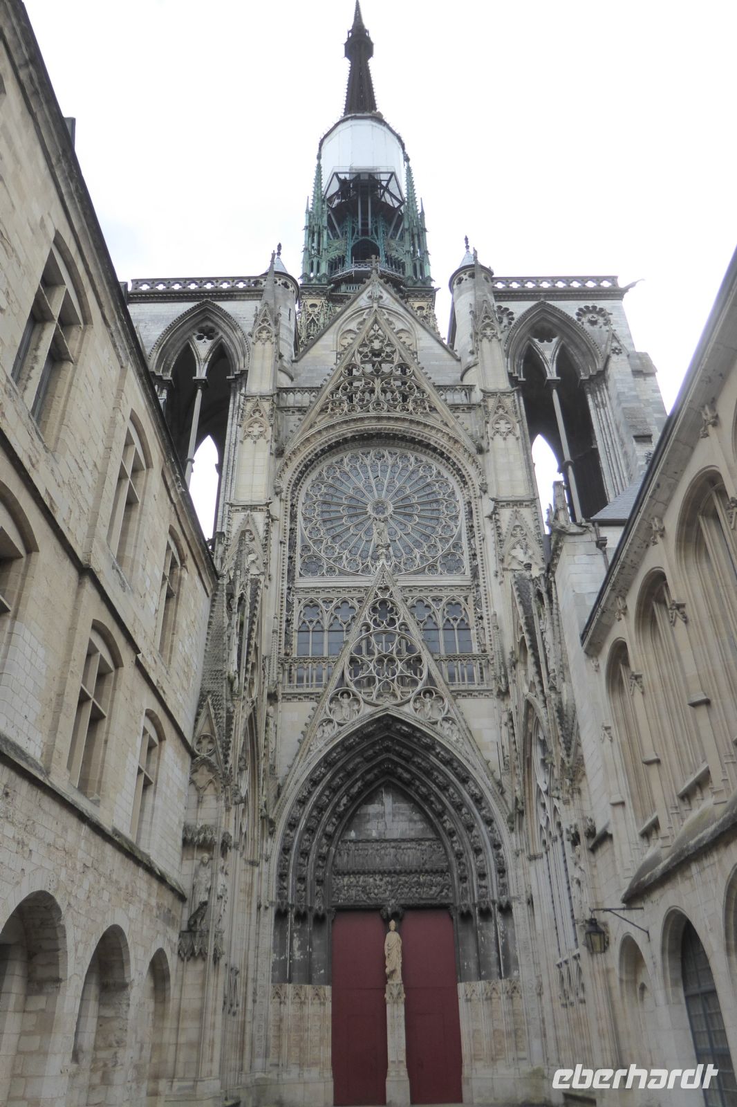 Am nächsten Morgen stand erst ein Besuch in Reims auf dem Programm, der Stadt, in der 29 französische Könige gekrönt wurden und die heute fest mit feinperligem Champagner verbunden ist. Die ganze Stadt zeigte sich in Feierlaune, Zelte, Buden, ein ganzer mittelalterlicher Markt waren um die Kathedrale herum aufgebaut. Das Fest fand statt zu Ehren von Jeanne d´Arc, deren Martyrium in der letzten Maiwoche des Jahres 1431 mit ihrem Tod auf dem Scheiterhaufen in Rouen endete. Sie war es, die im 100-jährigen Krieg dem späteren französischen König Karl VII zu einem Sieg über die Engländer und Burgunder verhalf. Sie begleitete Karl zu seiner Königssalbung nach Reims. Vor der Kathedrale steht ein Reiterstandbild von ihr, das sie in Rüstung zeigt. Nach der Besichtigung der Kathedrale mit ihrem mittelalterlichen Skulpturenschmuck und ihren beeindruckenden Glasfenstern berühmter Künstler der Neuzeit, wie Marc Chagall, Imil Knöbl und Greg Tricker, blieb uns noch etwas Zeit durch die Stadt zu bummeln, um das römische Forum und die Place Royal sowie das neue Straßenbahnsystem zu bewundern. Im Ersten Weltkrieg wurde Reims schwer zerstört. Reiche Amerikaner, wie Rockefeller und Carnegie sorgten für einen baldigen Wiederaufbau der Stadt und der Kathedrale, die heute Weltkulturerbestatus hat. Mehr als eine Millon Besucher zählt die Stadt jedes Jahr