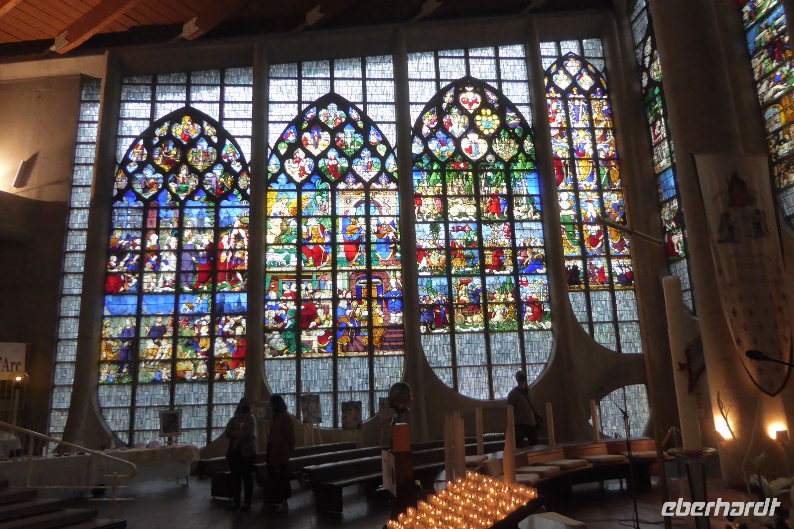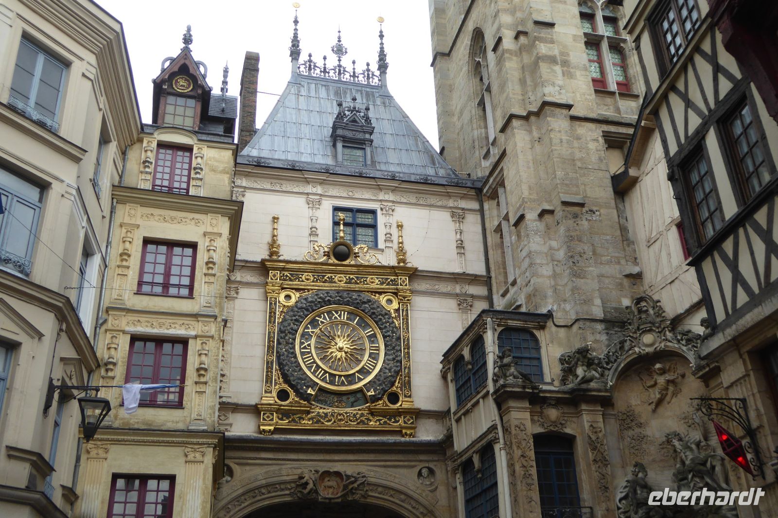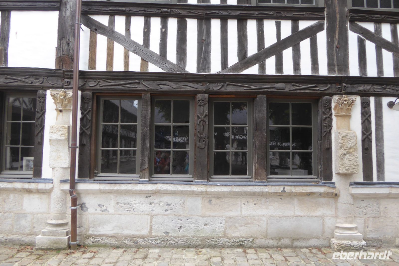 Wir begannen unseren Rundgang in der „Stadt der hundert Kirchtürme, deren Glockengeläut himmelauf schwingt" wie der französische Schriftsteller Victor Hugo die Stadt Rouen vor fast zweihundert Jahren beschrieb, an der Kathedrale. Wir bestaunten deren eindrucksvolle Fassade vom Ort aus, an dem Monet seine Staffelei aufgestellt hatte, um die Westfassade in seinem berühmten Bilderzyklus festzuhalten. Die berühmten Gräber im Inneren der Kirche beleuchten die Meilensteine der Geschichte der Region: hier liegen Rollo, der erste Herzog der Normandie und Richard Löwenherz unter Stein gemeißelten Grabmonumenten begraben- im Falle des Letztgenannten jedoch lediglich sein einbalsamiertes Herz in einem Bleikästchen. Durch die engen Gassen der Stadt gelangten wir anschließend zur Kirche Saint-Maclou, die 1436 im Stil der Flamboyant-Gotik errichtet wurde. Ihre Steinmetzarbeiten erinnern an feinste Häkelarbeiten! Das Pest-Beinhaus L'aître Saint-Maclou ist von Holzgalerien mit geschnitzten Totentanzszenen aus der Zeit um 1530 umschlossen. Die Gebäude beherbergen heute Kunstateliers und ein Restaurant. Der Justizpalast im ehemaligen jüdischen Viertel ist das größte profane gotische Gebäude Europas und wurde zu Beginn des 16. Jahrhunderts errichtet. Durch die eng mit Fachwerkhäusern bestandenen Gasden der Innenstadt spazierten wir zum alten Marktplatz. Am 30. Mai 1431 wurde dort das junge Mädchen Jehanne aus der lothringischen Provinz, das sich mutig in die politischen Wirren des 100- jährigen Krieges einmischte, von der Kurie dem Flammentod übergeben. Eine moderne, architektonisch einmalige Kirche mit farbintensiven Glasfenstern aus der Renaissance ist ihr, Jeanne d´Arc, geweiht.