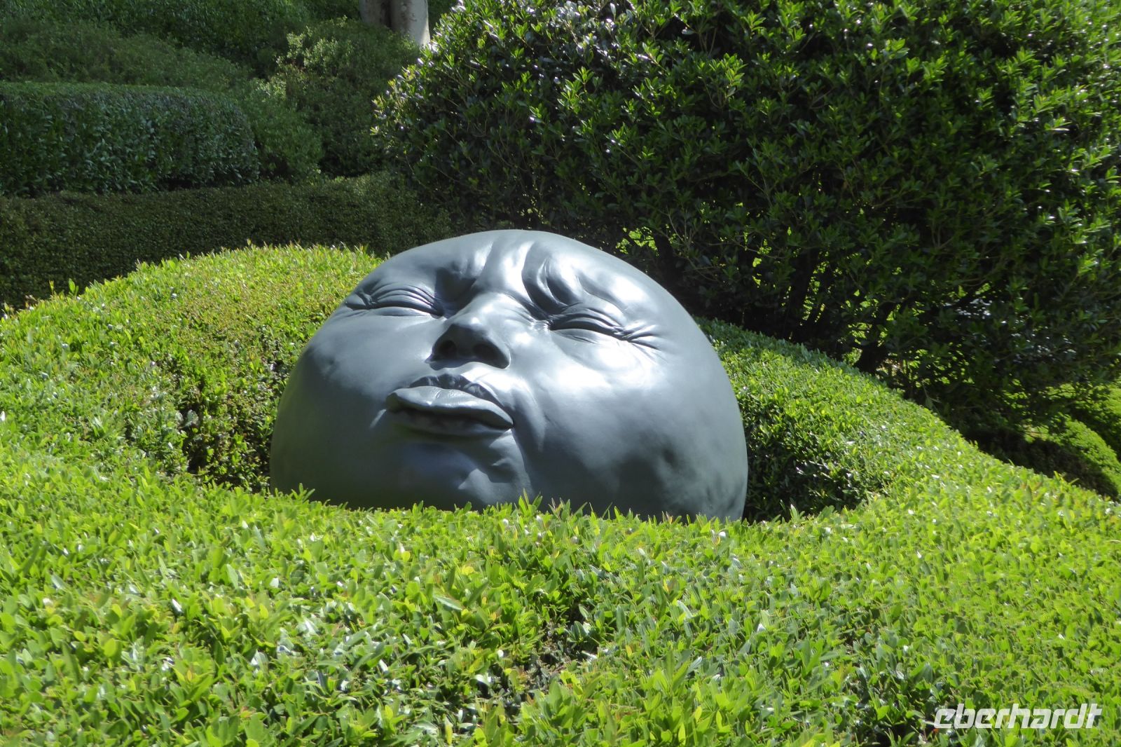 Gleich nach der Ankunft machten wir uns an den Aufstieg zu dem neuen neofuturistischen Garten hoch über dem Meer auf der Klippe d´Amont und traten ein in eine Märchenwelt aus immergrünen, zugeschnittenen Pflanzen und modernen Skulpturen. Die riesigen Köpfe des Künstlers Samuel Salcedo ließen uns schmunzeln und wir genossen die Aussicht, die Ruhe und die mythische Stimmung auf den labyrinthisch angelegten Wegen im Schatten alter Baumriesen. Zurück am Strand, Golfstrom hin oder her, hielt die Wassertemperatur auch die Mutigsten von uns davon ab in die Fluten des einladend glitzernden blauen Meeres zu hüpfen und so blieb es bei einem vorsichtigen Waten ins kühle Nass!