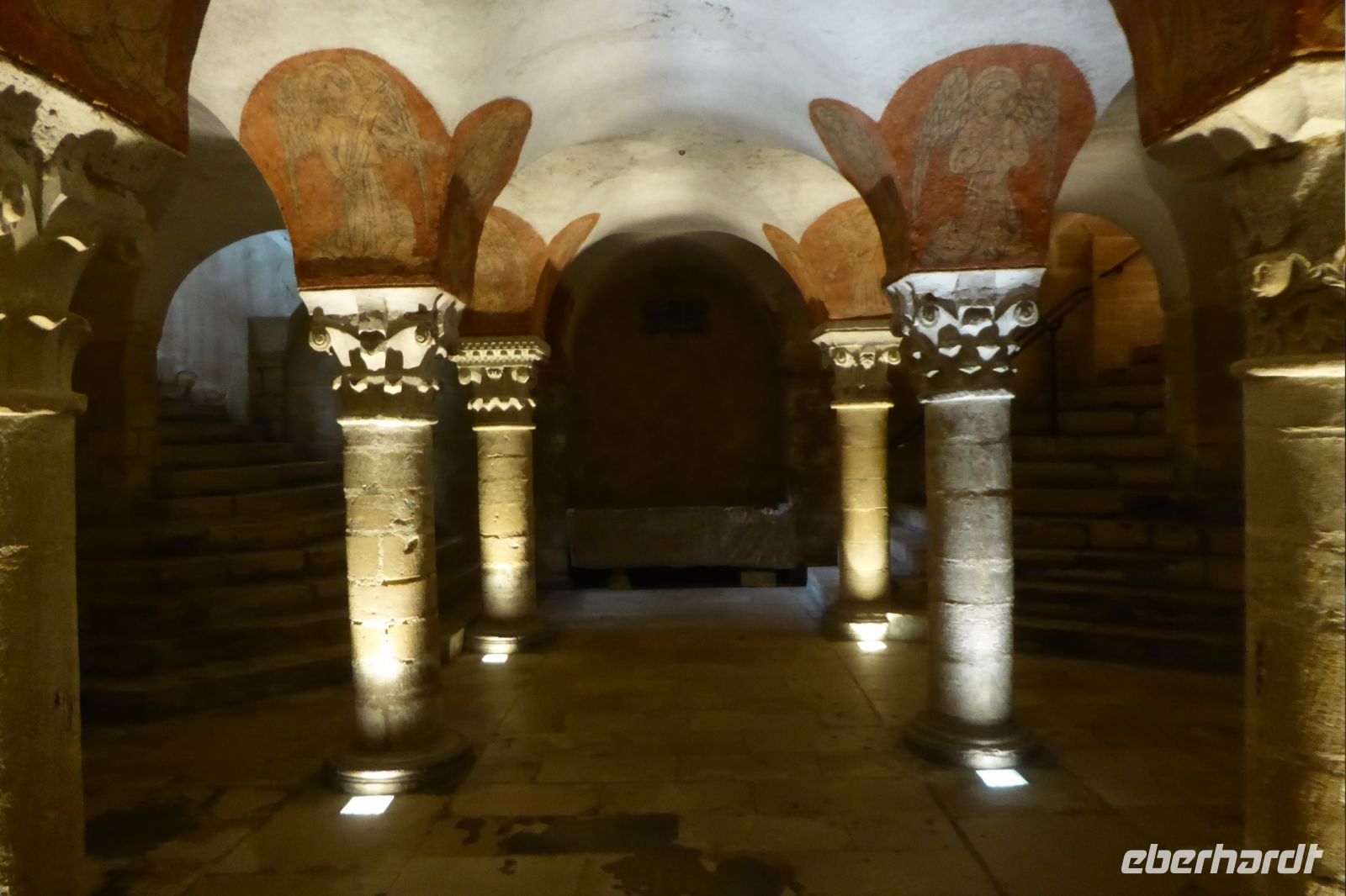 Anschließend bummelten wir durch das hübsche Städtchen zur Kathedrale, die von einem beeindruckenden Vierungsturm überragt wird. Die Kirche ist Maria gewidmet und präsentiert sich heute als dreischiffige Kreuzbasilika mit einer beeindruckenden Länge von 96 Metern. Die Krypta sei der Rest einer im elften Jahrhundert abgebrannten voromanischen Kathedrale, deren Kapitelle mit der Formenvielfalt der romanischen Steinbildhauer überraschen. Beeindruckend sind auch die Fresken musizierender Engel. Eine leichter Regenschauer begleitete uns zurück zum Bus.