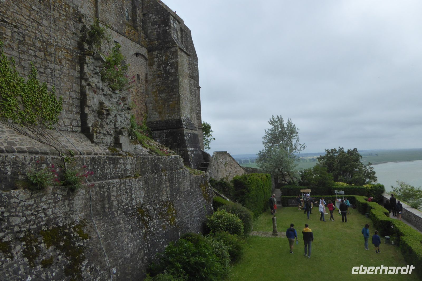 Bereits am Vorabend trafen wir in unserem Hotel zu Füßen des Mont Saint Michel ein. Nach dem leckeren Abendessen, es gab Souffleé, normannisches Salzlamm und zum Dessert Crème brulée, hatte keiner mehr Lust, das Hotel zu verlassen! So machten wir uns erst am nächsten Morgen früh auf den Weg, vorbei an dem Gezeitenkraftwerk, über die Stelzenbrücke zum Mont Saint Michel zu spazieren. Noch vor dem großen Ansturm der Besucher erreichten wir den Inselberg, der auch bei Ebbe ein imposantes Bild bietet. Um die obere Abteikirche zu erreichen müssen erst viele steile Stufen erklommen werden, doch die grandiose Aussicht von oben entschädigt für alle Mühen! Ausgerüstet mit Audioguides ließen wir uns die Geschichte der bedeutenden christlichen Wallfahrtsstätte, seit 1979 UNESCO Weltkulturerbe, erklären. Lange Jahre nach der französischen Revolution war die alte Klosteranlage ein gefürchtetes Staatsgefängnis, bis sich Victor Hugo und andere für die Restaurierung des kirchlichen Ensembles stark machten. Jedes Jahr kommen mehr als drei Millionen Besucher zu dem heiligen Berg im Meer, der seit 1300 Jahren die Menschen in seinen Bann zieht. Bei unserem Rundgang über die Festungsmauern konnten wir die Wattwanderer beobachten und sahen, einer Ameisenstraße gleich, die Besuchermassen den Berg erstürmen. Glück gehabt, das frühe Aufstehen hat sich gelohnt- wir hatten die Klosteranlage noch fast ganz für uns und konnten im Kreuzgang noch die meditative Stille genießen!