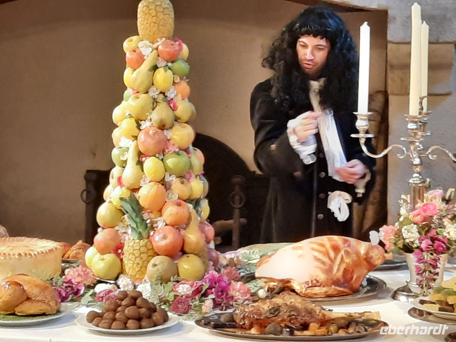 Wenige Kilometer nördlich des Schlosses Fontainebleau liegt das etwas kleinere und überschaubare Château Vaux-le-Vicomte. Es wurde 1656 im Auftrag des Finanzministers Ludwigs XIV, Nicolas Fouquet, errichtet. Für sein ehrgeiziges Bauprojekt mussten drei Dörfer weichen. Er beauftragte den Architekten Louis Le Veau, den Maler Charles le Brun sowie den Gartenarchitekten André Le Nôtre, kurz gesagt, die zukünftigen Gestalter des Stils, der unter dem Namen Ludwig XIV berühmt wurde. Der König verpflichtete die drei Künstler ihres Faches wenig später für den Ausbau von Versailles. Die Geschichte Fouquets, untermalt mit Musik aus der Zeit, wurde uns über ein geniales Audiosystem vermittelt und erlaubte uns einen Blick in die Denkweise der Menschen im Absolutismus. Am 17. August 1661 veranstaltete Fouquet ein opulentes Fest mit 6000 geladenen Gästen. François Vatel, der berühmte Koch des Prinzen von Condé inszenierte verschwenderisch die Festlichkeiten. Tafelgeschirr aus massivem Gold und Silber, edle Speisen aus aller Welt in einem teuer ausgestatteten Interieur mit Brokat, Spiegeln und Marmortischen sollen den Neid des jungen Königs erregt haben, der kurz nach dieser prunkvollen Einweihungsfeier den Gastgeber wegen vermeintlicher Veruntreuung inhaftieren ließ. Des Königs Rachefeldzug brachte Fouquet in Kerkerhaft, in der er 1680 verstarb. Trotz der Tragik, die den Bauherren des Schlosses umgibt, wirkte das Schloss heiter und strahlt barocke Lebensfreude aus.
