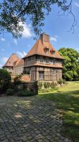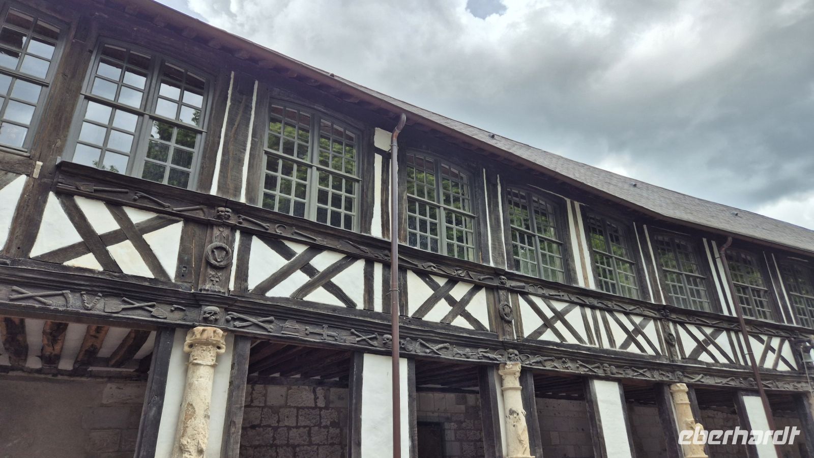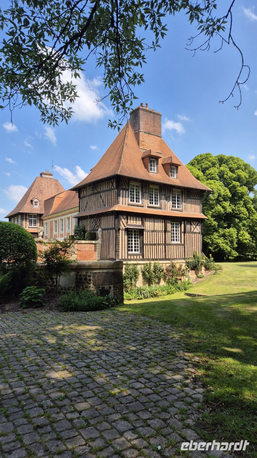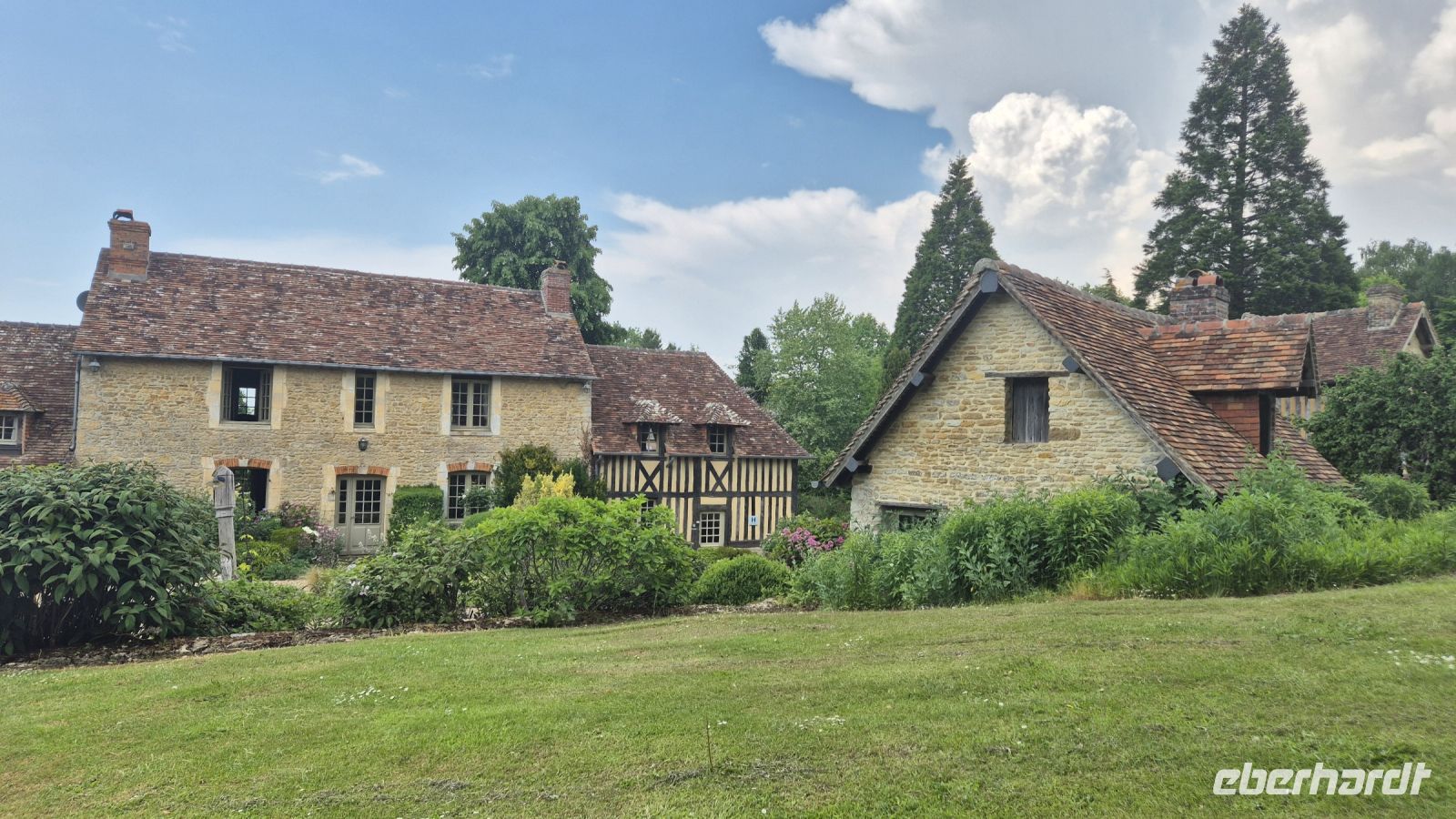 Nach der Mittagspause geht es für uns dann weiter ins Hinterland. Auf Apfelwiesen weidende Kühe sind ein typisches Bild für das Pays d'Auge, einem Landstrich in der Normandie. Cidre, Calvados und Camembert gehören deshalb ebenso dazu wie die landestypischen Fachwerkhäuser.