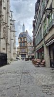 Am Nachmittag haben wir schließlich Zeit, die Hauptstadt der Normandie zu erkunden. Von unserem Hotel aus spazieren wir gemeinsam in Richtung der Altstadt und erreichen als erstes die katholische Kirche Saint-Maclou, die 1436 im Stil der Flamboyant-Gotik errichtet wurde. Ihre filigranen Steinmetzarbeiten stammen aus der Flamboyant-Zeit der Gotik und sind beeindruckend. Nur ein paar Schritte weiter steht das Pest-Beinhaus L'Aître Saint-Maclou, das mit Holzgalerien mit Schnitzereien von Totentanzszenen aus der Zeit um 1530 umschlossen ist. Die Gebäude beherbergen heute Kunstateliers. Durch enge Gassen erreichten wir den Justizpalast im ehemaligen jüdischen Viertel. Er ist das größte nicht-sakrale gotische Gebäude Europas und wurde zu Beginn des 16. Jahrhunderts errichtet. Die eng mit Fachwerkhäusern bestandenen Straßen der Innenstadt führen direkt zum alten Marktplatz. Am 30. Mai 1431 wurde dort das junge Mädchen Johanna aus der lothringischen Provinz, das sich mutig in die politischen Wirren des Hundertjährigen Krieges einmischte, von der Kurie dem Flammentod übergeben. Die moderne, architektonisch einmalige Kirche mit den leuchtstarken Glasfenstern aus der Renaissance ist ihr, Jeanne d´Arc, geweiht. Durch die Fußgängerzone spazieren wir in Richtung der ältesten astronomischen Uhr Frankreichs. Die Gros-Horloge wurde 1410 in den Belfried eingebaut, ist aber schon 1389 hergestellt worden. Wenige Minuten später stehen wir dann, wie einst Claude Monet, vor der Fassade der Kathedrale von Rouen. Monet schuf einst einen ganzen Bilderzyklus mit 28 verschiedenen Tages- und Wetterlagen, wir bestaunen die verschiedenen Epochen, die sich wunderbar an der Fassade erkennen lassen. Die berühmten Gräber im Inneren der Kirche beleuchten die Meilensteine der Geschichte der Region: hier liegen Rollo, der erste Herzog der Normandie und das Herz Richard Löwenherz' unter Stein gemeißelten Grabmonumenten begraben.