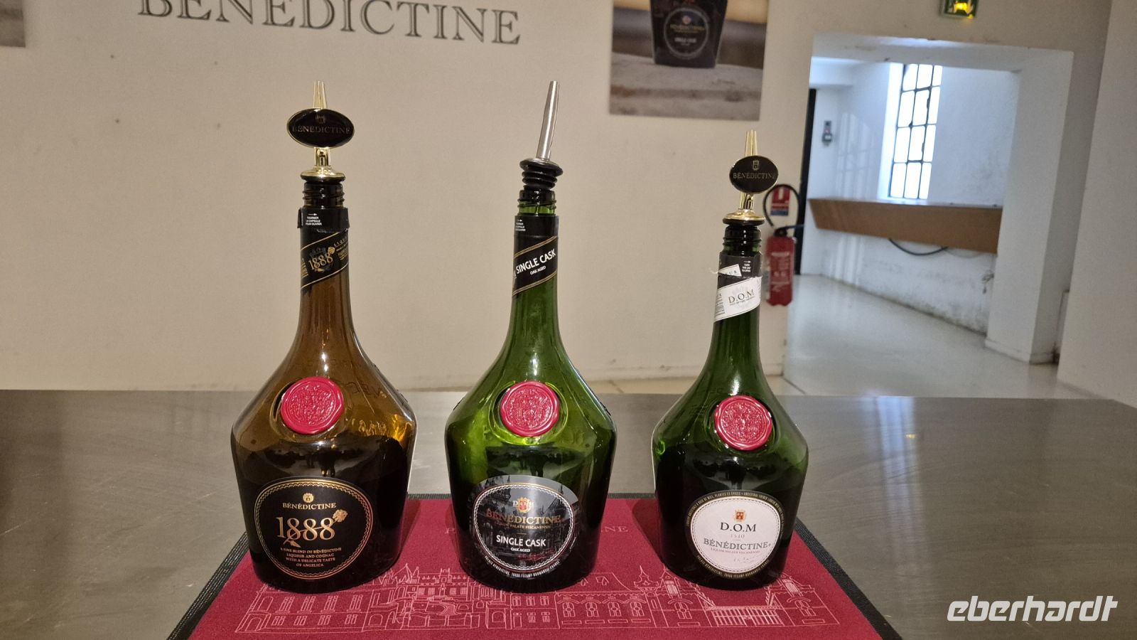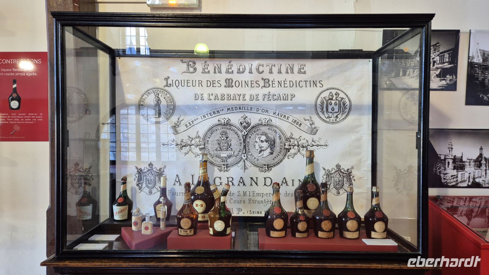 Nach dem Frühstück verlassen wir schließlich Rouen und machen uns auf den Weg ans Meer. Bei wunderbarem Sonnenschein erreichen wir nach etwa einer Stunde das Städtchten Fécamp. Zunächst steht aber ein kulturell-kulinarischer Besuch auf dem Programm: Das historistische Palais Bénédictine stammt aus dem 19. Jahrhundert. Es ist heute ein Kunstmuseum, in dem neben mittelalterlicher sakraler Kunst auch verschiedene Sammlungen von Musikinstrumenten, wertvoller Bücher sowie geschmiedeter Schlösser und Schlüssel ausgestellt sind. In den Kellerräumen befindet sich die Brennerei des Kräuterlikörs DOM Bénédictine, der seit 1863 von dem Unternehmer und Weinhändler Alexandre Legrand hergestellt wird und heute zum Spirituosenkonzern Bacardi gehört. Die Rezeptur soll jedoch auf wesentlich ältere Elixiere der Benediktinermönche zurückgehen. Aus 27 Kräutern und Gewürzen, darunter Melisse, Ysop, Zimt, Thymian, Kardamom, Nelke, Muskatnuss, Safran und Honig sowie Vanille, Tee, Koriander, Myrrhe, Moschuskörner und einer Zitrusnote wird der unverwechselbare Geschmack kreiert. Die Verkostung des originalen Likörs und weiterer Variationen darf natürlich am Ende der Besichtigung nicht fehlen und sorgt gleich am Vormittag für heitere Stimmung.