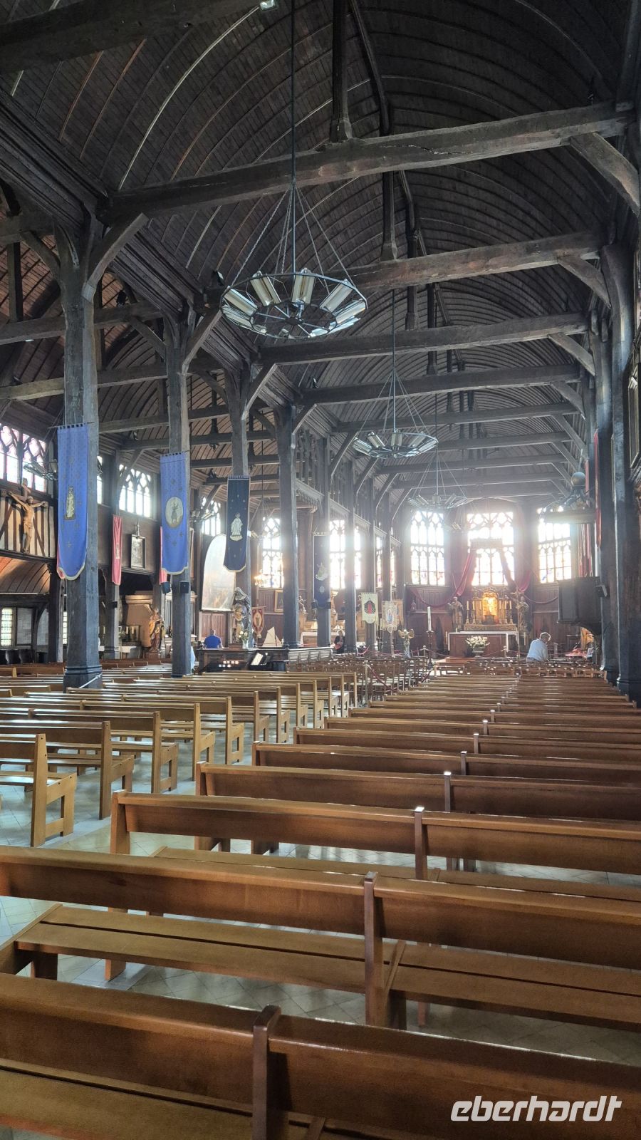 Honfleur war jahrhundertelang der unbedeutendere Hafen im Gegensatz zu Harfleur auf dem anderen Ufer der Seinemündung. Erst mit der Zeit hat sich das Städtchen mit seinen pittoresken, schmalen, sechs Stockwerk hohen Häusern und den Resten seiner Befestigungsanlagen aus dem 17. Jahrhundert am alten Hafenbecken zu einem der reizvollsten Orte der Normandie entwickelt. Durch Eugène Boudin, hier 1824 geboren, dem ersten Freiluftmaler dieser Küstenlandschaften, wurde der Ort in Künstlerkreisen schnell bekannt und die malerische Atmosphäre des Städtchens und der Seine-Mündung zog Maler wie Courbet, Sisley, Jongkind, Claude Monet, Pissarro, Renoir und Cézanne nach Honfleur. Wir genießen die Ruhe am Morgen und spazieren gemeinsam ins Zentrum. Entlang des Hafens stehen zahlreiche Fischer und verkaufen ihren Tagesfang: Fisch, Krebse und Muscheln werden zu unseren Fotomotiven. Hinter dem historischen Hafen steht sehr eindrucksvoll die Holzkirche Sainte-Catherine mit ihrem freistehenden Turm und den beiden Zwillingsschiffen, die von Schiffszimmerleuten im 15. Jahrhundert errichtet wurde. Die bunten Marktstände vor der Kirche lockten mit leckeren regionalen Produkten und so bummeln wir gemächlich über den Markt und durch die pittoresken engen Gassen der Stadt.