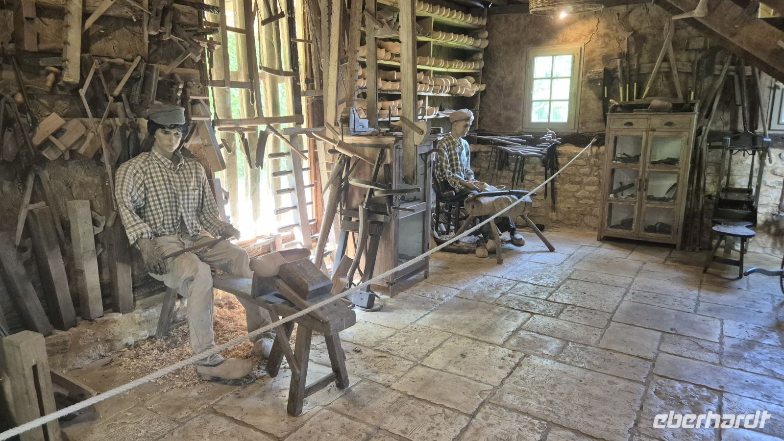 Gut gelaunt machen wir uns im Anschluss auf den Weg zum Jardin du Pays d'Auge. Auf dem vier Hektar großen gepflegten Gartengelände von Armelle und Jacques Noppe findet man eine Sammlung typischer alter Gebäude, restauriert und liebevoll eingerichtet mit alten Handwerksgeräten. Der Landschaftsarchitektin Chantal Lejard-Gasson unterlag die Planung des Gartens, mit unterschiedlichen Themengärten: Sonne- und Mondgarten, Garten der Düfte, Garten der Engel, Garten des Teufels, Purpurgarten und einigen mehr.