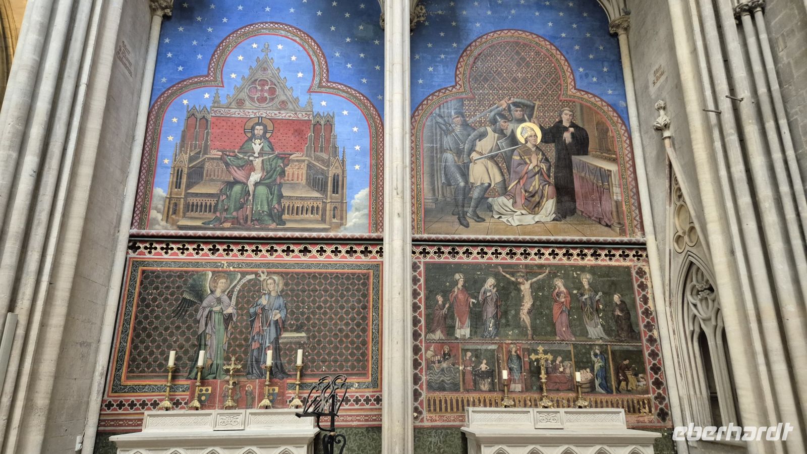 Nur wenige Schritte von hier entfernt wurde am 7. Mai 1945 die Kapitulation von den Deutschen unterzeichnet. Als Zeichen der Versöhnung und der deutsch-französischen Freundschaft wohnten im Juli 1962 Charles De Gaulle und Konrad Adenauer gemeinsam einem Gottesdienst bei.