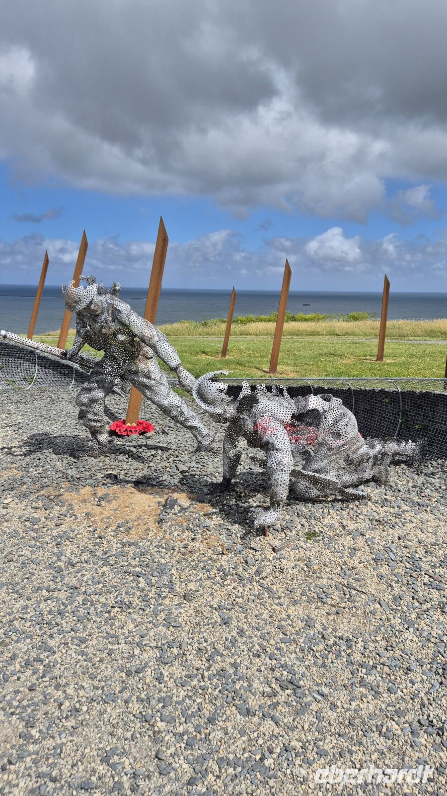 Um die Mittagszeit herum machen wir uns dann auf den Weg, um die Landungsstrände der Alliierten Befreiungstruppen von 1944 zu besuchen. In Arromanches-les-Bains landeten die Briten am 6. Juni und richteten einen der künstlichen Häfen, Mulberrys genannt, ein. Die Überreste davon können wir noch heute vor der Küste erkennen.