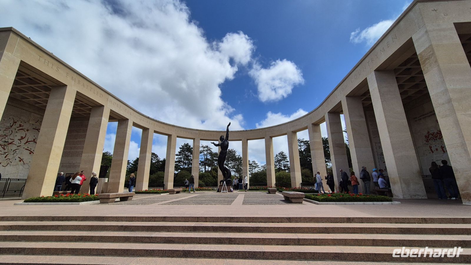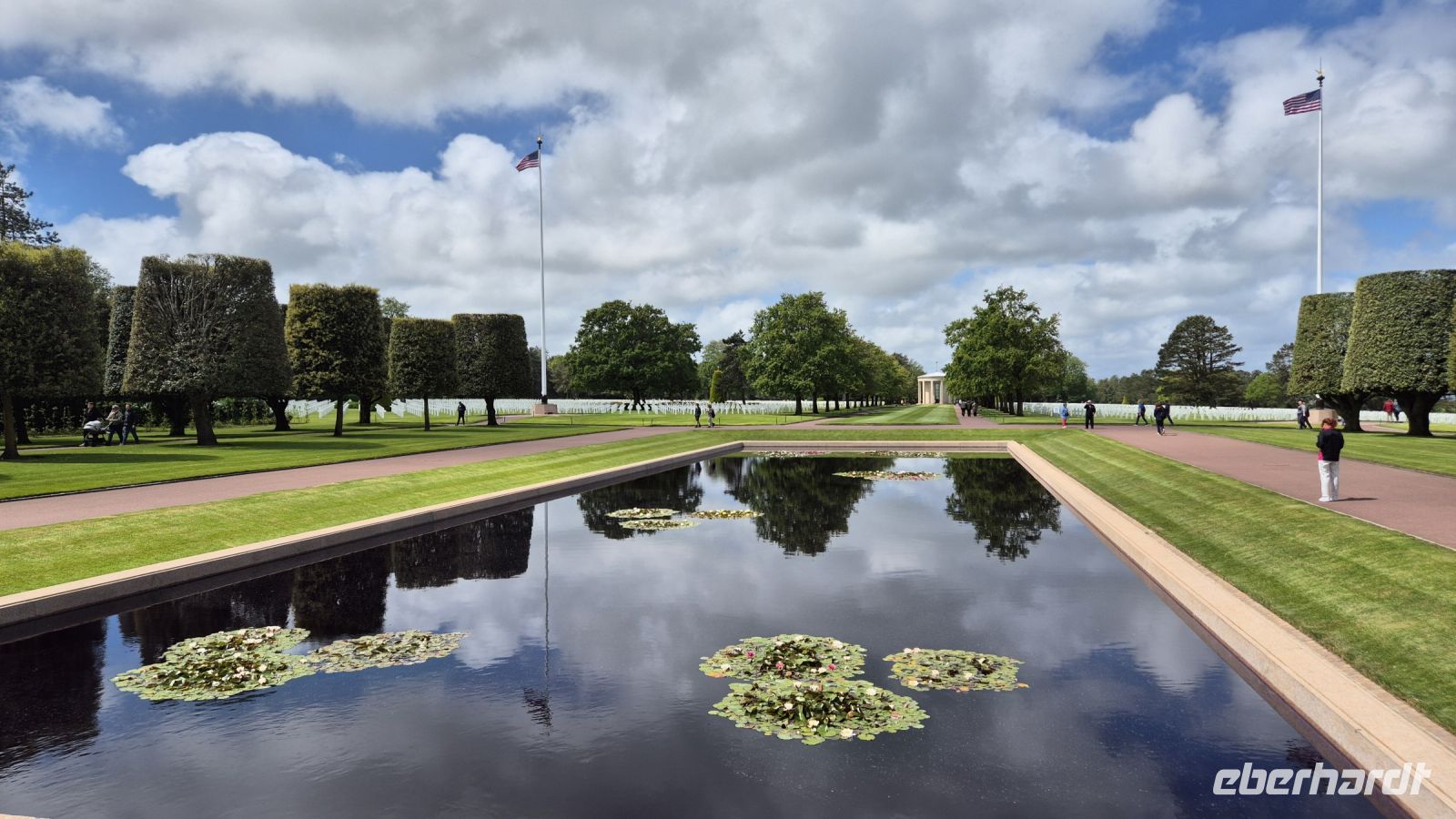 Der amerikanische Soldatenfriedhof in Colleville-sur-Mer ist der berühmteste an den Krieg erinnernde Friedhof in der Normandie. Lange Reihen weißer marmorner Kreuze und Davidsterne symbolisieren die Opfer der Vereinigten Staaten von Amerika, die für die Freiheit gebracht wurden. Der Friedhof befindet sich an einer Stelle, von der man einen eindrucksvollen Blick über den Küstenabschnitt Omaha Beach hat, wo die Amerikaner ihre größten Verluste zu beklagen hatten. Viele Elemente verbinden sich zu einem bleibenden Eindruck: Die halbkreisförmige Säulenreihe, die kunstvolle Statue, das große Becken mit klarem Wasser, und der makellose Park, der die Gräber von 9.387 amerikanischen Soldaten umgibt, die am D-Day und bei den folgenden Gefechten der Schlacht um die Normandie ihr Leben ließen. Dieser ganze Ort ist ein Appell an die Verantwortung jedes Einzelnen für den Frieden.