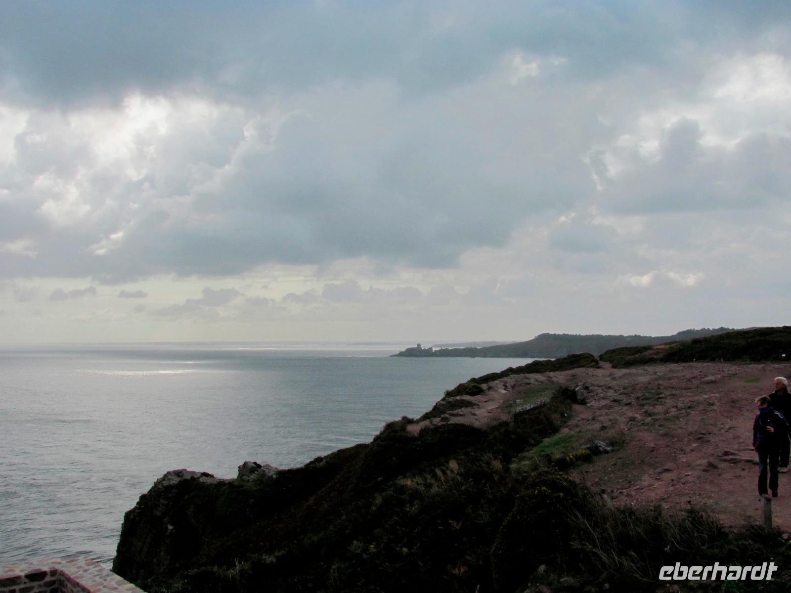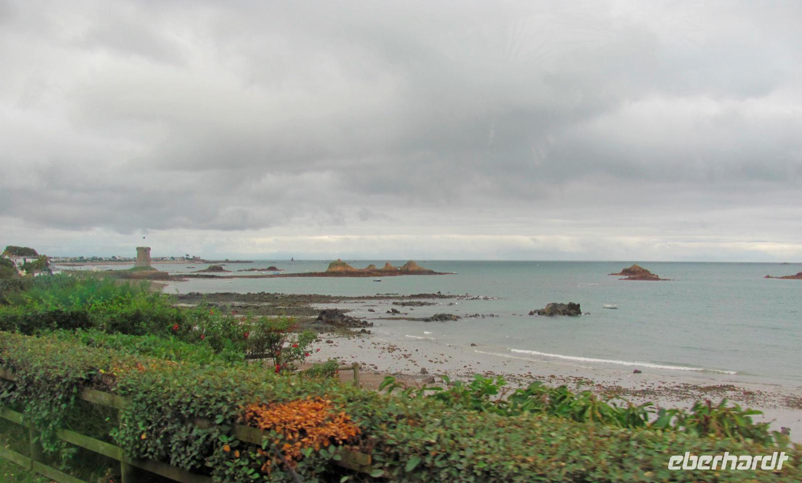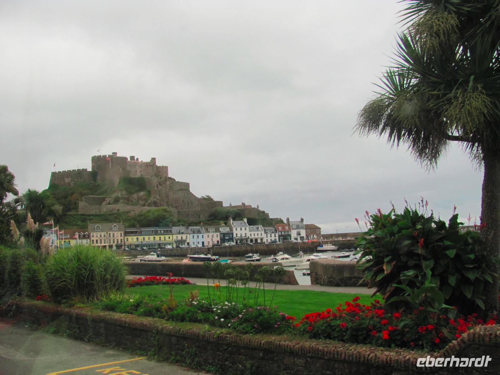 Anreise nach Jersey. Man ist heute sozusagen anglo-frankophil. In Jersey wurden wir schon von unserer örtlichen Reiseleitung Helga erwartet. Die hügelige Landschaft und Klippen der Insel zu erkunden sowie die mediterran anmutenden Palmen prägen das Inselbild. Das Essen ist eher französisch und die Inselsprache dennoch englisch geblieben. Der Ärmelkanal streift die Inseln zwar gerade noch, aber sie kleben eher an der Küste Nordfrankreichs. Deswegen sind sie auch unter dem Namen „Normannische Inseln" bekannt.