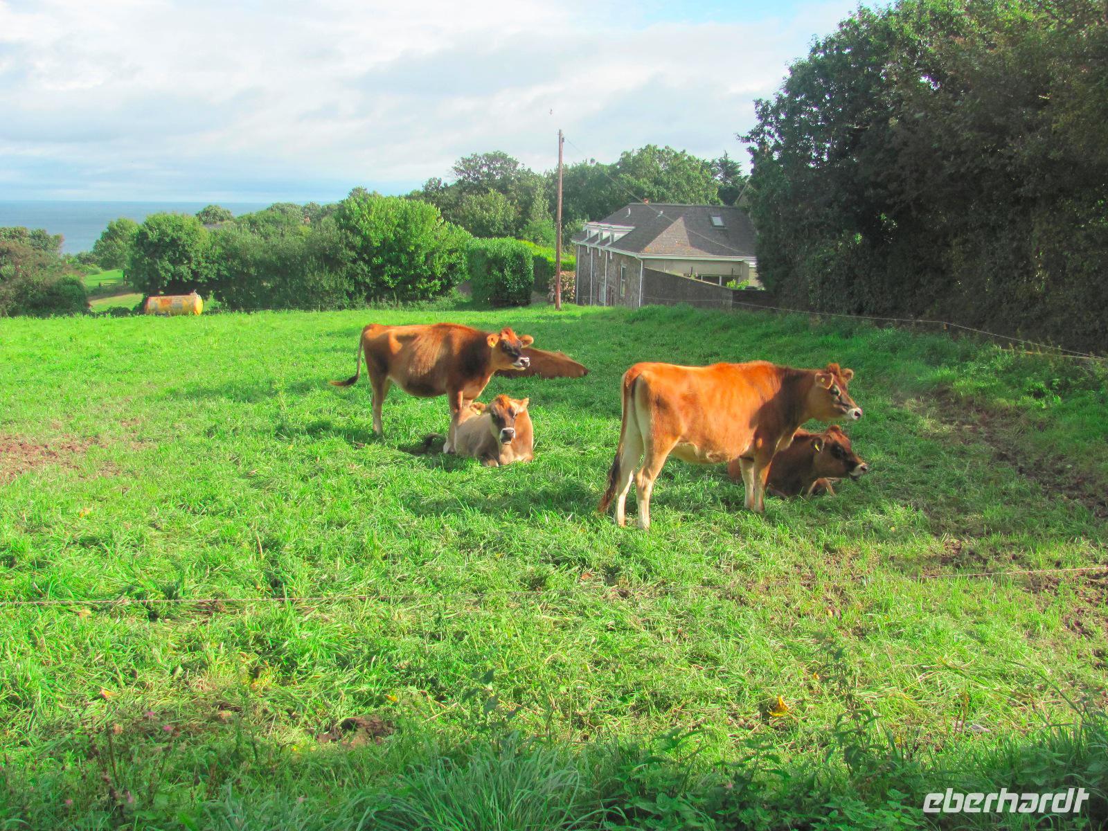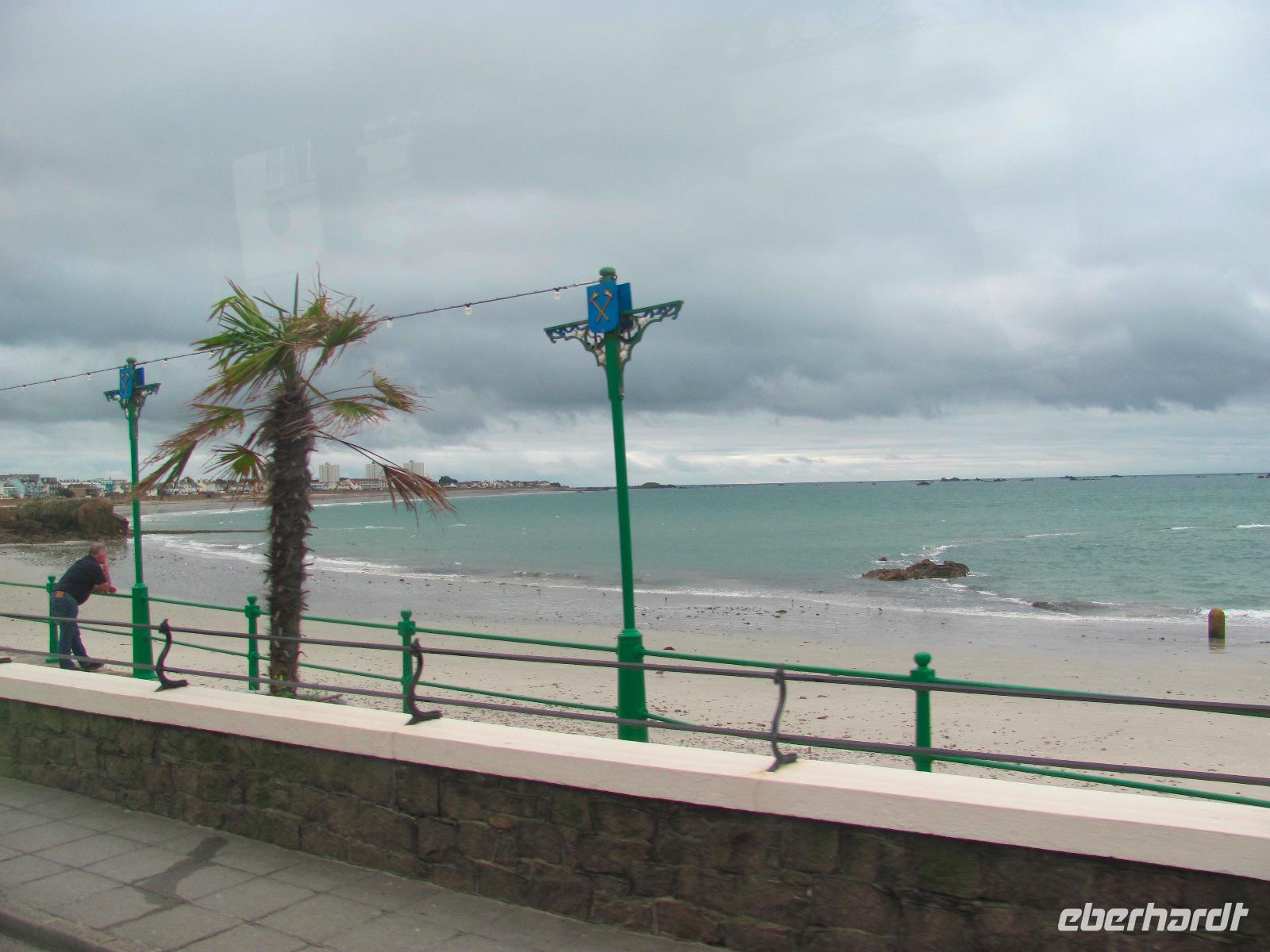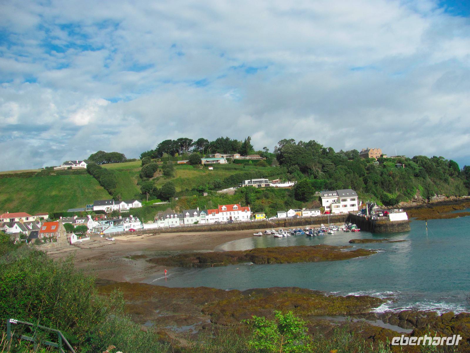 Anreise nach Jersey. Man ist heute sozusagen anglo-frankophil. In Jersey wurden wir schon von unserer örtlichen Reiseleitung Helga erwartet. Die hügelige Landschaft und Klippen der Insel zu erkunden sowie die mediterran anmutenden Palmen prägen das Inselbild. Das Essen ist eher französisch und die Inselsprache dennoch englisch geblieben. Der Ärmelkanal streift die Inseln zwar gerade noch, aber sie kleben eher an der Küste Nordfrankreichs. Deswegen sind sie auch unter dem Namen „Normannische Inseln" bekannt.