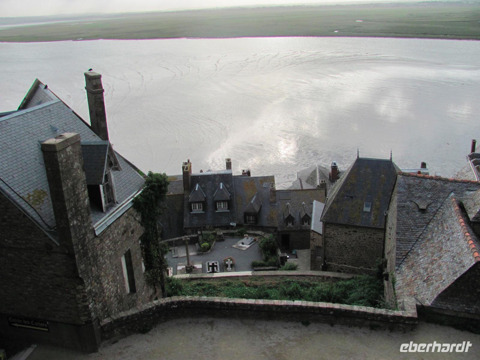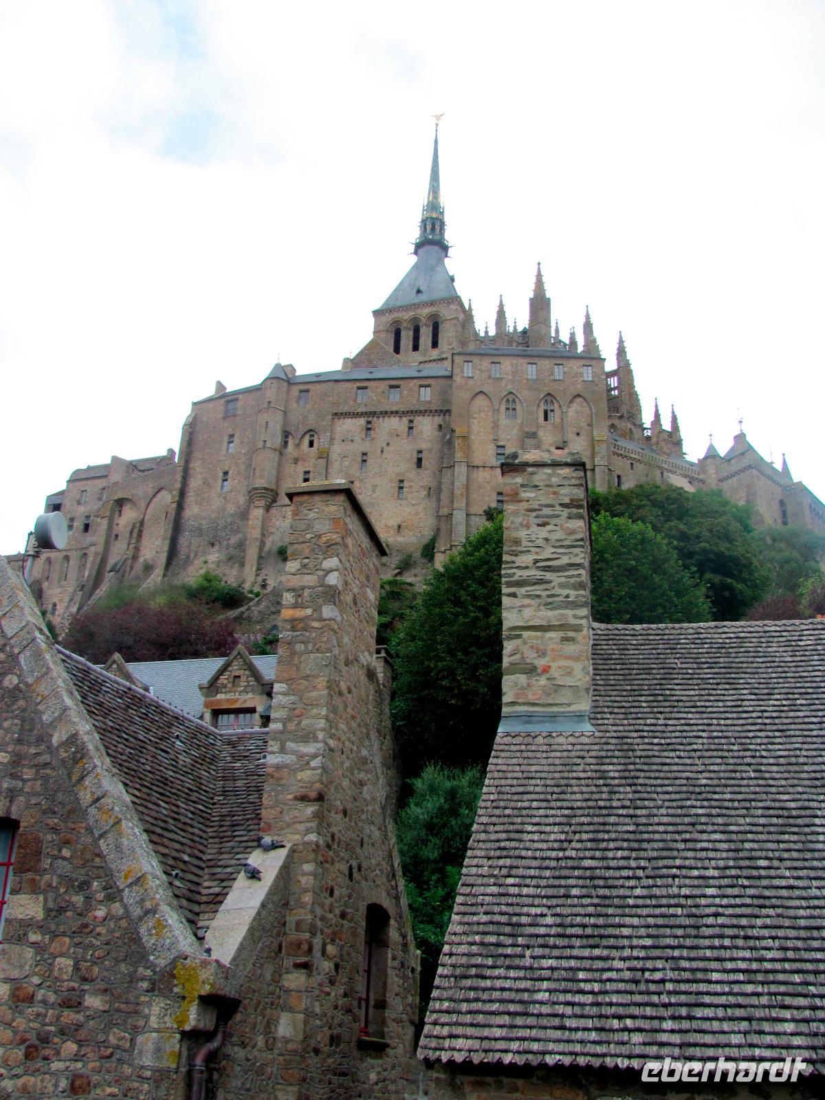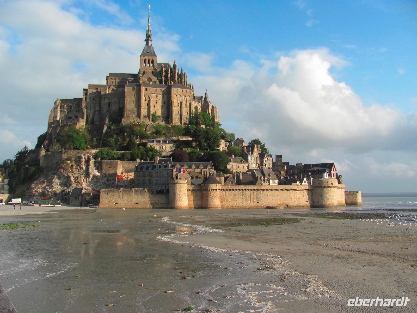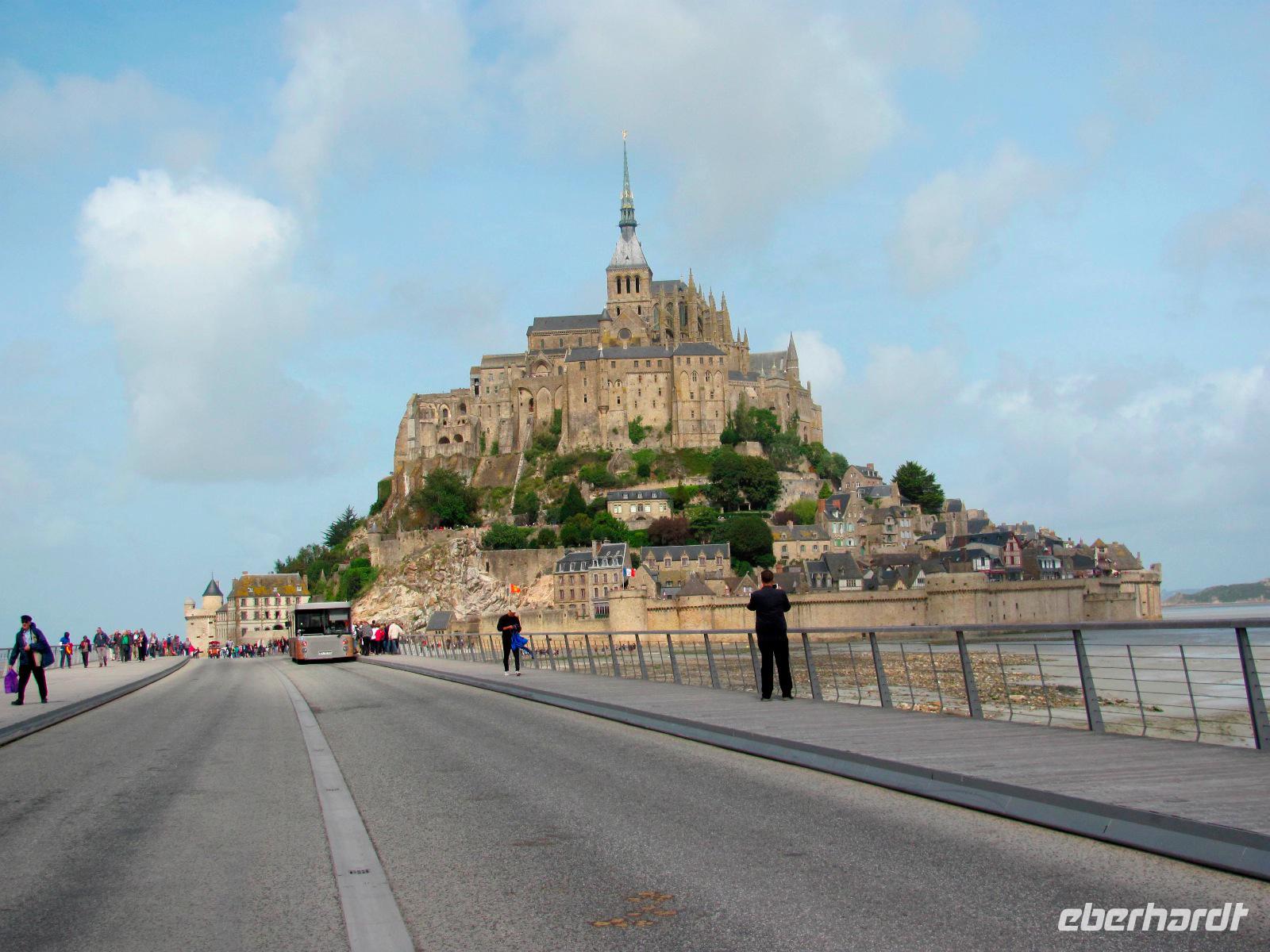Los zum Mont Saint-Michel, wo wir etwa um 09:20 Uhr ankamen. Vom Parkplatz aus nahmen wir anschließend einen Shuttlebus zur Klosterinsel. Viele kannten den Mont St. Michel bereits von unzähligen Fotos, Filmen, etc, aber trotzdem verschlug es uns die Sprache, dieses gewaltige Bauwerk mit Kloster, Kathedrale und vielen Nebengebäuden live zu sehen.