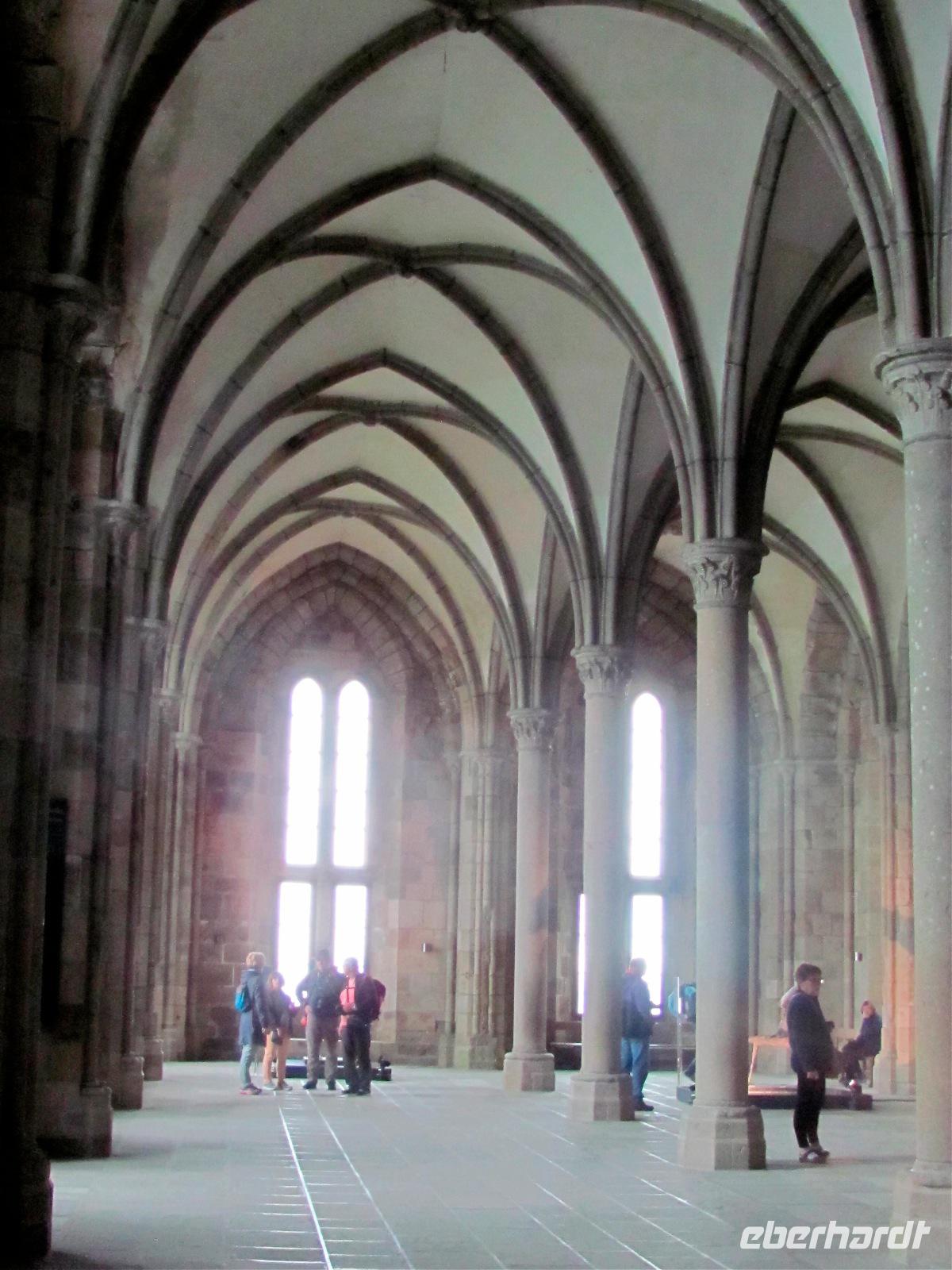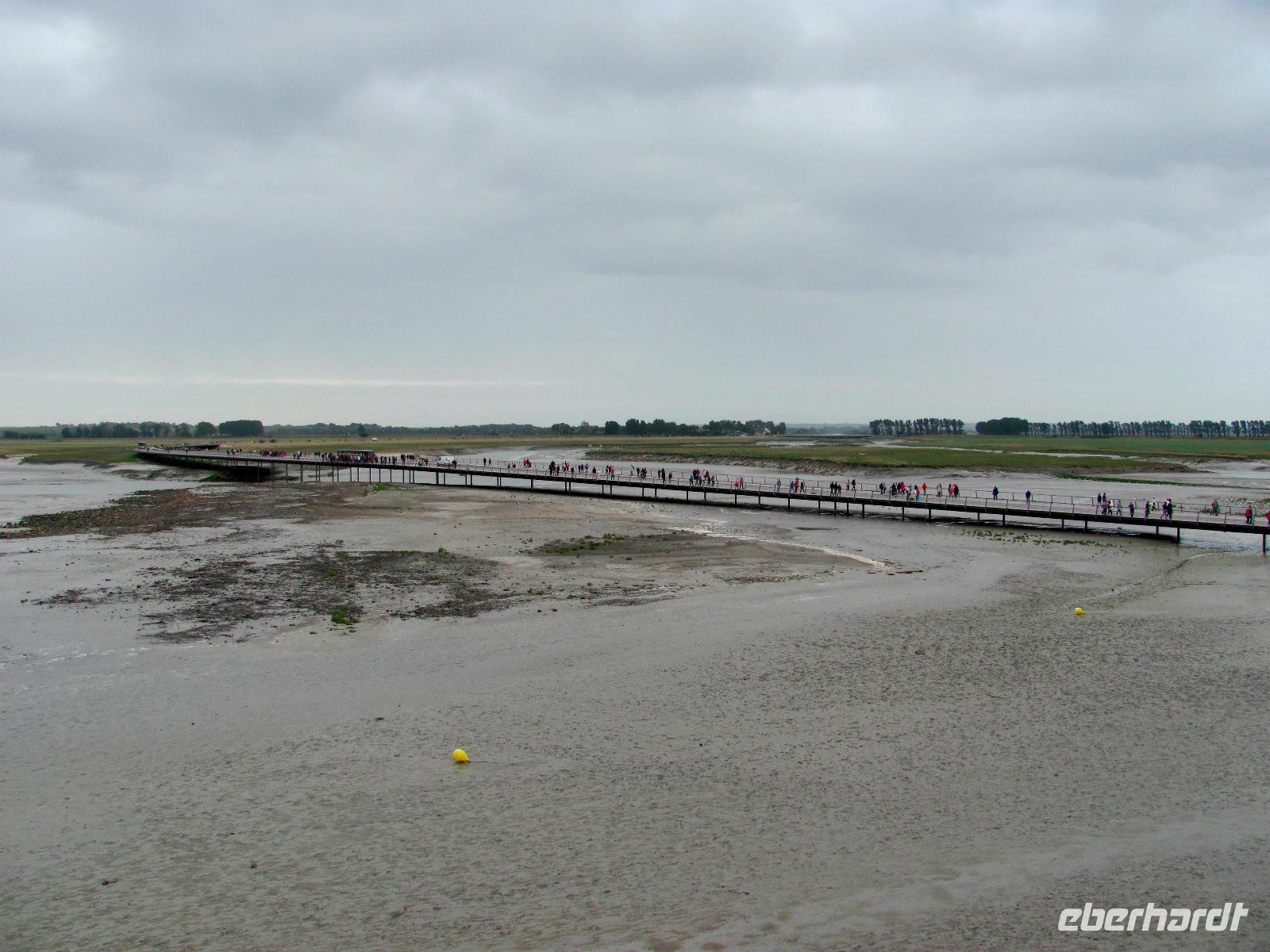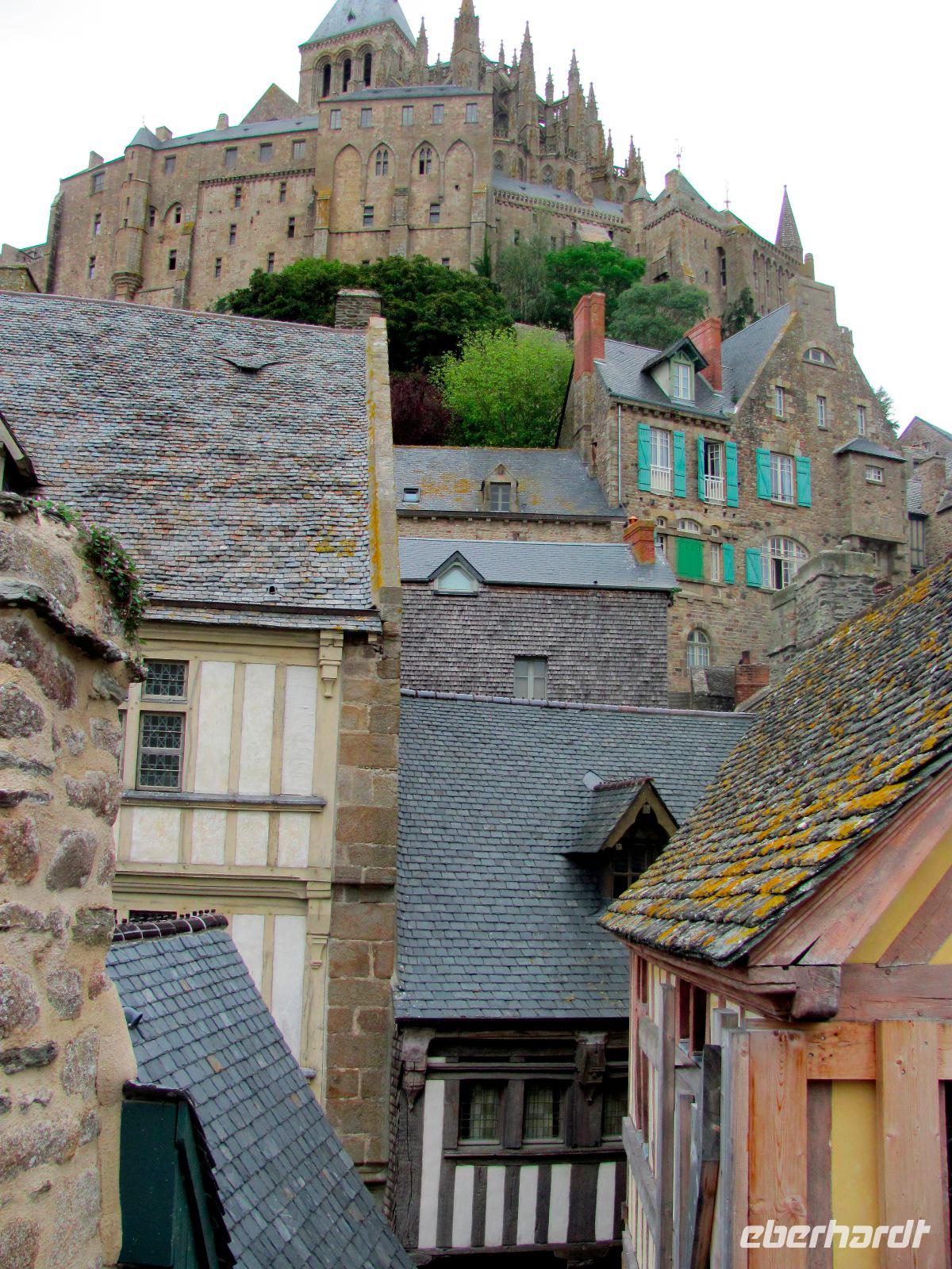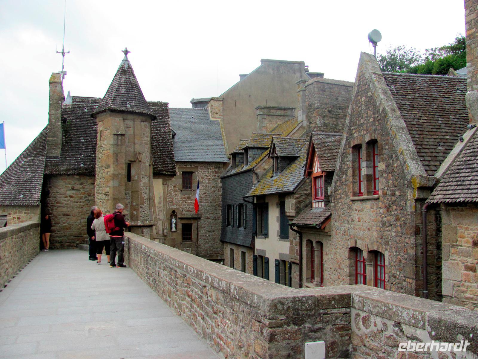 Los zum Mont Saint-Michel, wo wir etwa um 09:20 Uhr ankamen. Vom Parkplatz aus nahmen wir anschließend einen Shuttlebus zur Klosterinsel. Viele kannten den Mont St. Michel bereits von unzähligen Fotos, Filmen, etc, aber trotzdem verschlug es uns die Sprache, dieses gewaltige Bauwerk mit Kloster, Kathedrale und vielen Nebengebäuden live zu sehen.