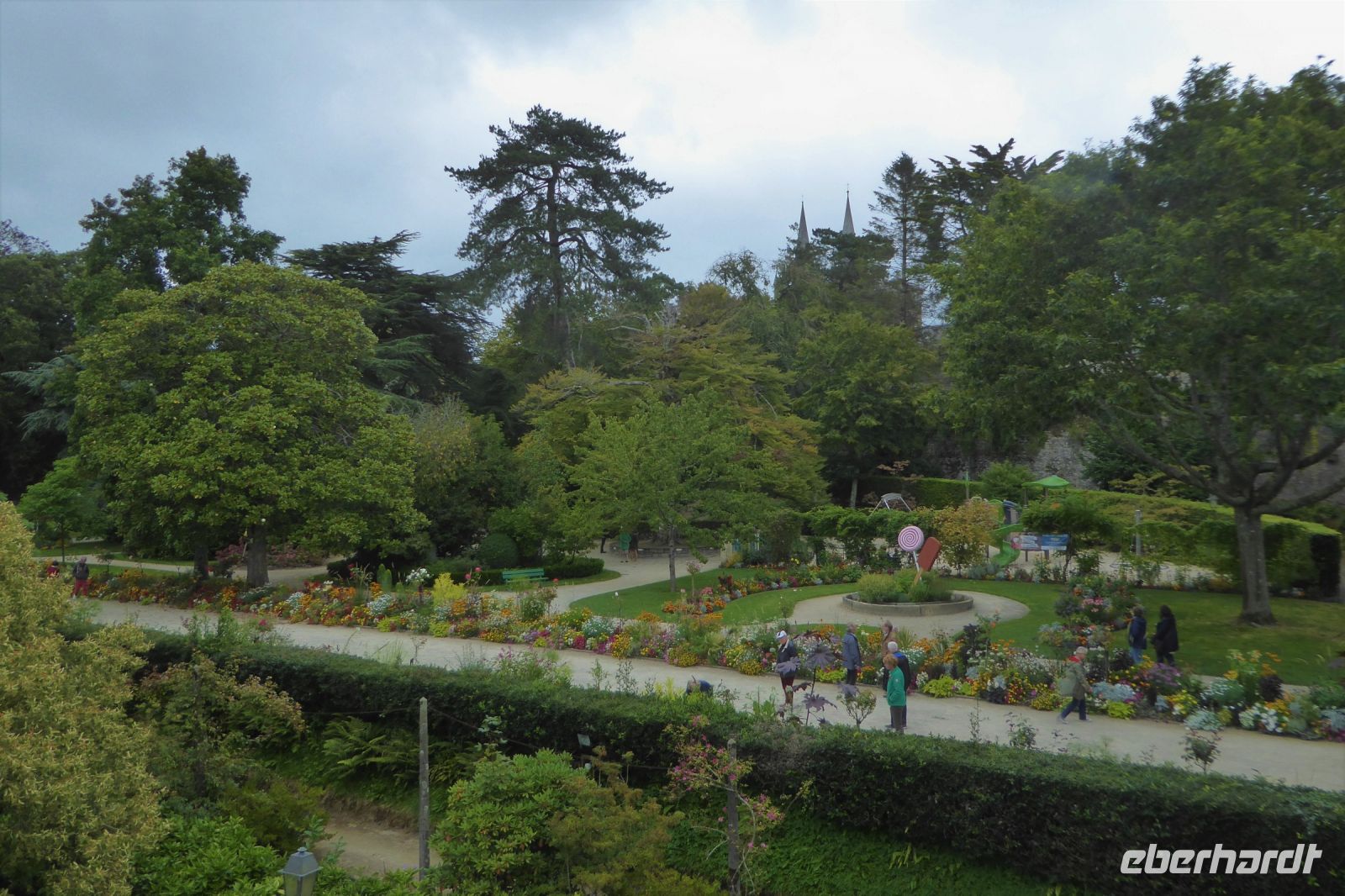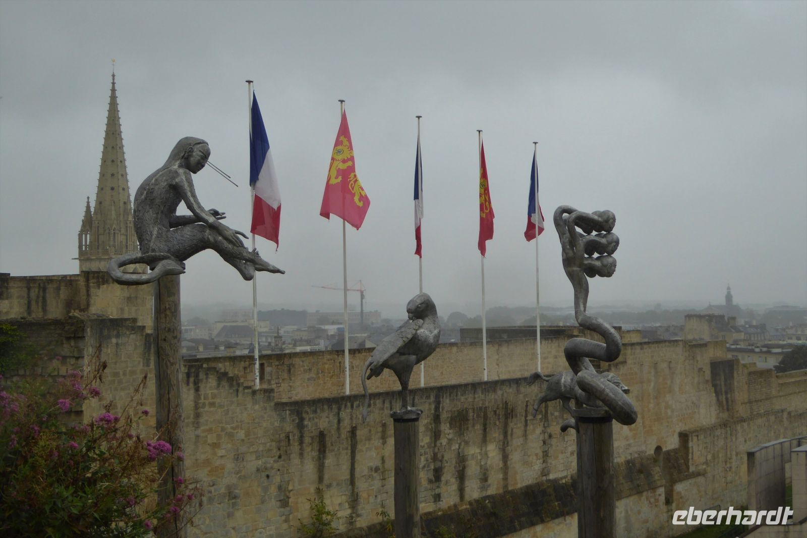 Bereits am gestrigen Abend sahen wir die mit bunten Lichtern in Szene gesetzte Burg von Caen mit ihren gewaltigen Türmen. Sie wurde von Wilhelm dem Eroberer im 11. Jahrhundert errichtet, wie auch die beiden großen Klosteranlagen „Abbey des Hommes“ und „Abbey des Dames“. Da Wilhelm gegen den Willen Papst Leo IX. seine eigene Cousine Mathilda von Flandern ehelichte, stiftete er als Ablass die beiden Klöster. Das Wetter war unangenehm trüb und regnerisch und so beschränkten wir unsere Besichtigung auf die „Abbey des Hommes“ und die imposante Burganlage. Heute befindet sich dort das Kunstmuseum der Stadt und beeindruckende Skulpturen berühmter Bildhauer, wie Bourdelle, Plensa und Renoir finden sich auf dem weitläufigen Gelände. Im Anschluss standen die Hafenanlagen und Bunker von Oistreham, die Landungsstrände, der Mulberry Hafen von Arromanches und die Pointe du Hoc auf unserem Programm, das an diesem grauen Tag ganz im Zeichen der deutschen Besatzung, des Zweiten Weltkriegs und der Befreiung durch die alliierten Streitmächte stand. Mit dem D-Day am 6. Juni 1944 begann hier an der Küste der Normandie die lang geplante Eröffnung einer Westfront der Anti-Hitler-Koalition. Es war der Beginn der militärischen Operation Overlord, die das Ende des sog. Dritten Reichs und elf Monate später die bedingungslose Kapitulation der deutschen Wehrmacht einleitete. Im bunten Blumengarten von Coutance stillten wir unsere Sehnsucht nach Frieden und Versöhnung an der bunten Blütenpracht der 175 Jahre alten Parkanlage und sinnierten unter den Baumriesen über vergangene Zeiten.