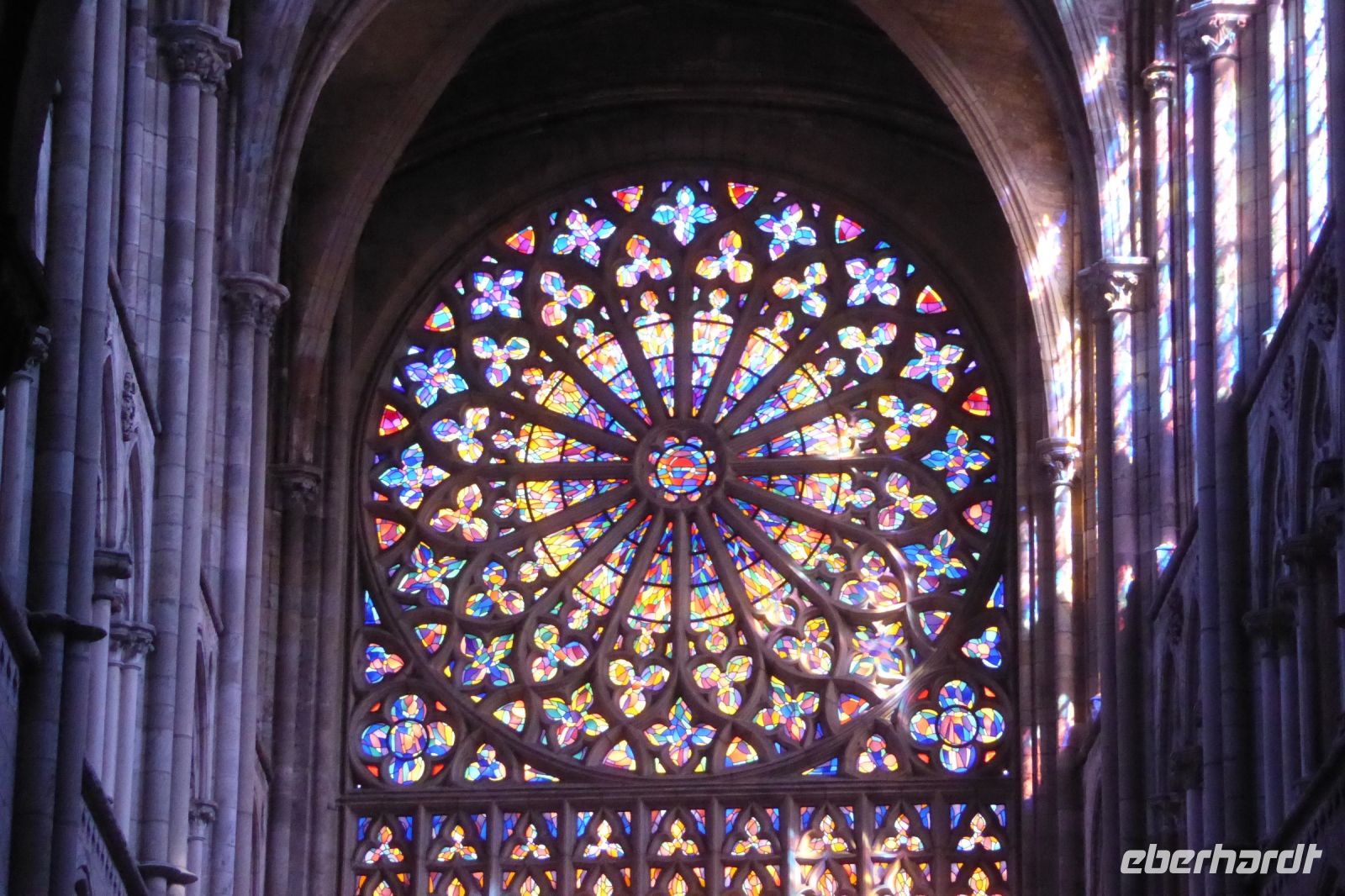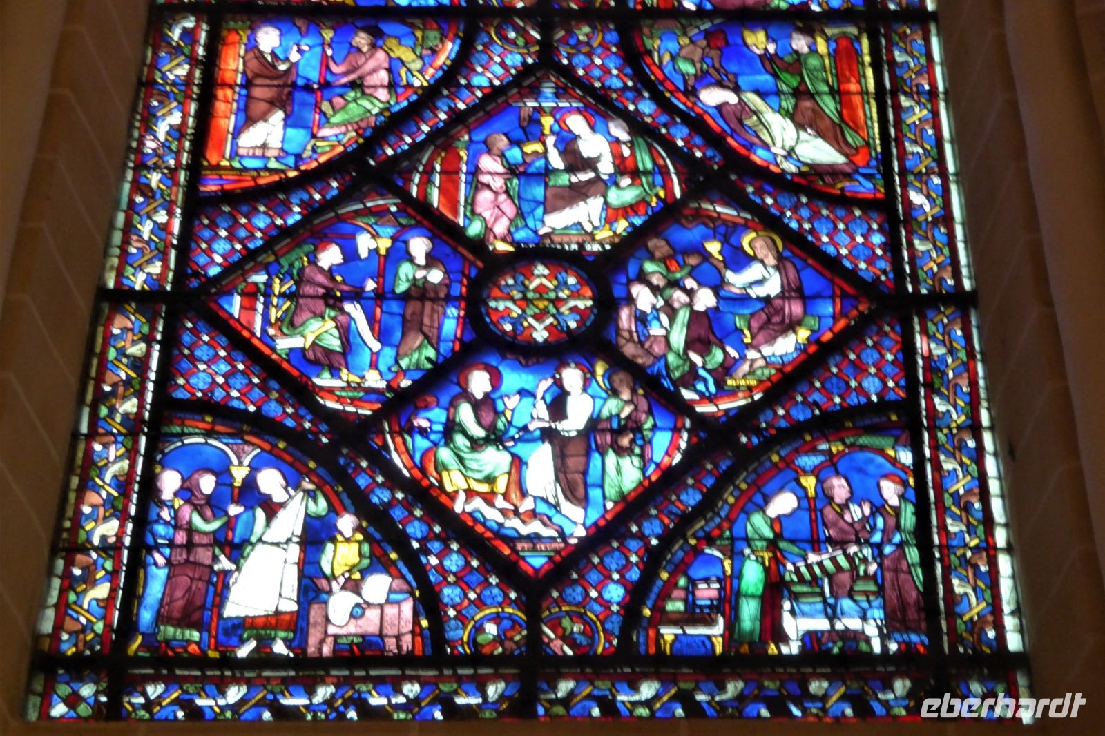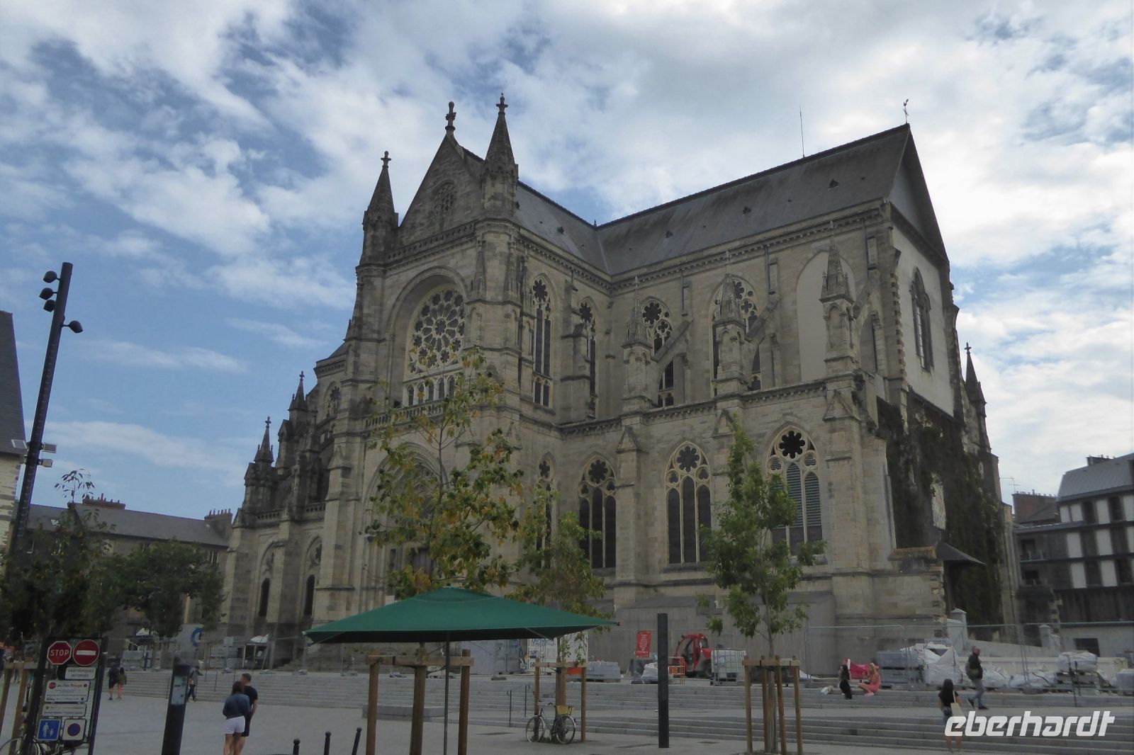 Unser heutiger Reisetag begann mit einer wunderschönen Fahrt durch den sagenumwobenen Wald von Paimpont, der mittlerweile als Wald von Brocéliande Berühmtheit erlangt hat. Gralssuchende aus aller Welt geben sich hier ein Stelldichein. Die Legenden um König Artus, Lanzelot, Merlin und Viviane finden hier ihre Schauplätze. Tief im Wald, der einst das gesamte Landesinnere der Bretagne bedeckte, am See von Paimpont, gründeten Mönche bereits im siebten Jahrhundert ein Kloster. Vor den ehrwürdigen Mauern der Abtei Notre-Dame von Paimpont fanden wir einen stillen Platz, um dem runden Geburtstag einer unserer Mitreisenden einen stilvollen Rahmen zu geben. Mit Sang und Klang der in den Morgenhimmel geschossenen Korken der Cidreflaschen, gratulierten wir auch im Namen von Eberhardt Travel zum Ehrentag. Unsere nächste Station war Rennes, die Hauptstadt der Bretagne mit ihrer beeindruckenden Kathedrale. Nach dem Stadtbrand von 1720 blieb das Bauwerk zwar fast unversehrt, wurde jedoch im achtzehnten und neunzehnten Jahrhundert renoviert und dem Geschmack der Zeit angepasst. In der Umgebung der Kathedrale findet man noch weitere Gebäude aus dem Mittelalter mit fantasievoll verziertem Fachwerk, das den Reichtum und Einfluss der Stadt im Mittelalter und in der frühen Neuzeit widerspiegelt. Da wir heute noch bis in den Raum Paris wollten, und so gut 550 km zu fahren hatten, reichte es gerade noch für einen Zwischenstopp in Chartres, um der berühmtesten der französischen Kathedralen einen kurzen Besuch abzustatten. In diesem Gotteshaus, das in der Mitte des dreizehnten Jahrhunderts geweiht wurde, laufen viele entscheidende kunst- und kulturhistorische Strömungen zusammen. Nie zerstört, vermittelt die Kathedrale von Chartres die unverfälschte Atmosphäre der Hochgotik. Das berühmte Labyrinth im Inneren auf dem Fußboden des Mittelschiffes bietet Raum für Meditation und Spekulationen über seine Bedeutung. Eine knappe Stunde später erreichten wir Saclay, unser letztes Etappenziel. Vorher verabschiedeten wir uns noch herzlich von unserem französischen Fahrer Alvaro, der uns während unserer Reise souverän und ruhig gut 2000 Kilometer über französische Autobahnen, Straßen und Sträßchen chauffiert hat und immer für kühle Getränke an Bord sorgte!