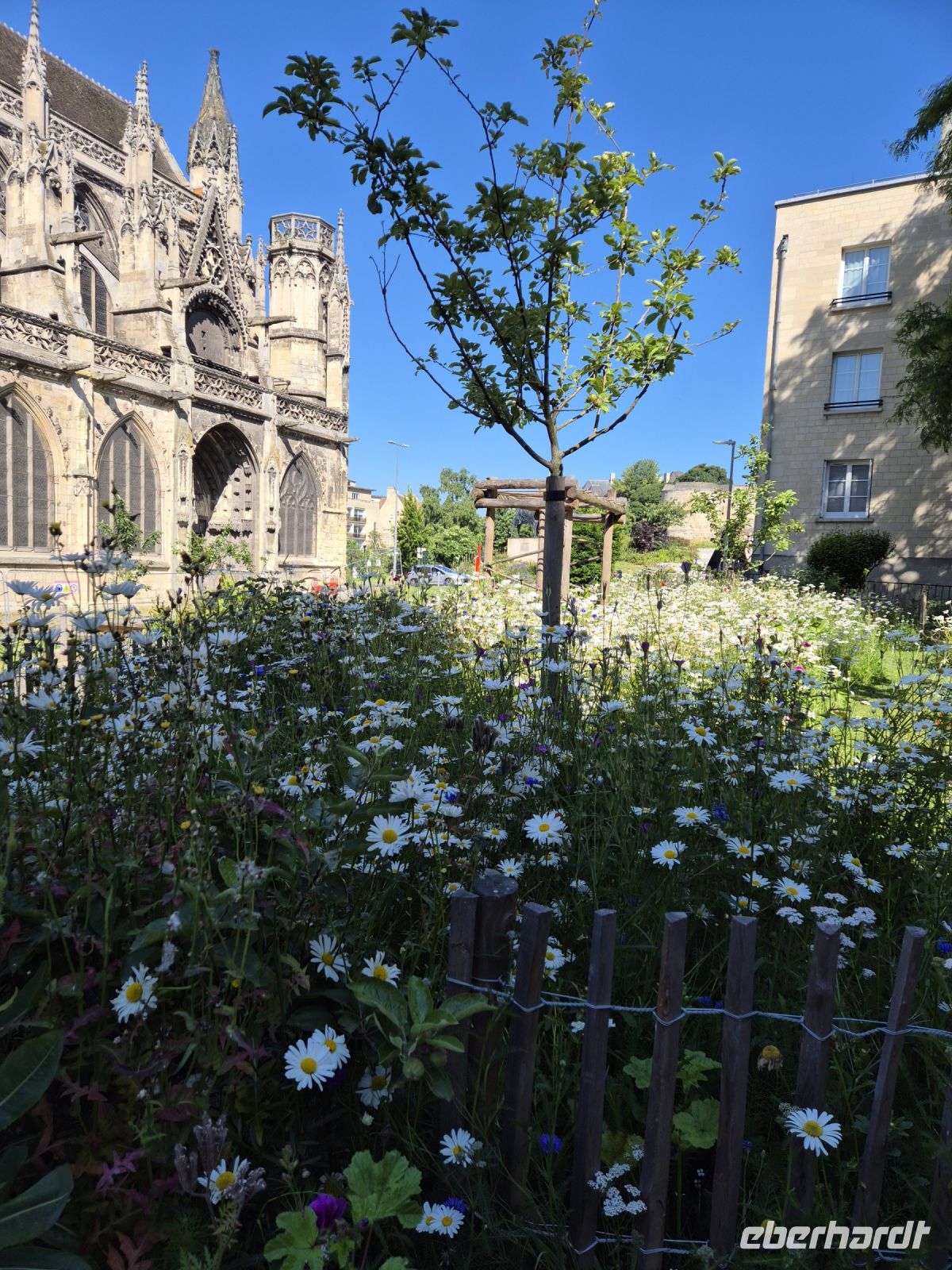 St.Ouen (Anduin) ist größer als die Kathedrale und geprägt durch den großartigen flamboyanten Vierungsturm von 84 m Höhe. Auch hier gab es einen romanischen Vorgängerbau. 1318 begonnen (es entstanden bald die Chorfenster), zog sich der Bau bis 1536 hin. Für die Fassade reichte es nicht mehr, sie entstand kläglich neugotisch im 19.Jh.