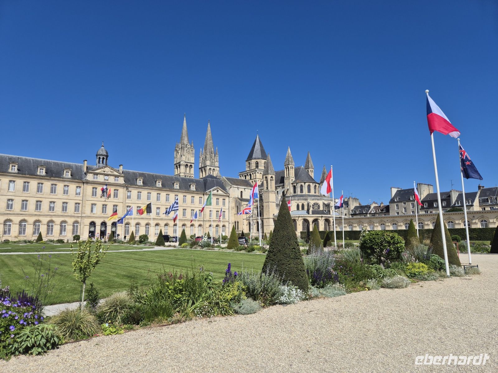 Die Stadt an der Orne wird die zweite Hauptstadt der Normandie genannt und gehörte 1944 zum Frontgebiet. Entsprechend groß waren die Zerstörungen. Das „Memorial de Caen“ mit dem „Musée de la Paix“ im NW der Stadt dokumentieren das. Wie in Le Havre, St. Malo und Brest gab es einen Wiederaufbau im modernen Stil, in Caen aber um die restaurierten historischen Monumente herum.