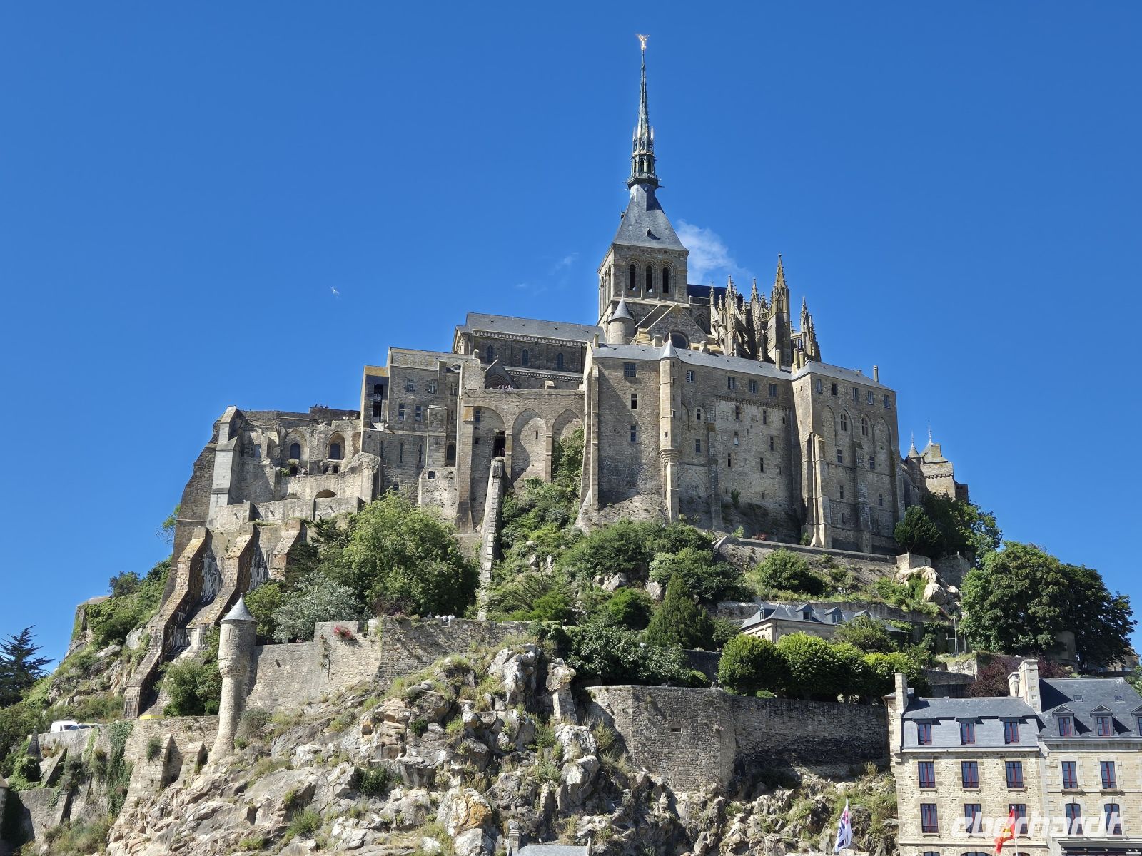Die letzten zwei Tage standen bereits unter dem Einfluss des weithin sichtbaren Berges des Heiligen Michael. Dieses „Wunder des Abendlandes“, „Leuchtturm der Christenheit“, ist nach dem Eiffelturm Frankreichs meistbesuchtes Denkmal und ein Höhepunkt jeder Normandiereise. Vom Andrang sollte man sich nicht schrecken lassen, sondern sich diesen in dem Ausmaß bereits im Mittelalter vorstellen. Der Deich von 1877, der den Zugang ermöglichte, ist aus Renaturierungsgründen durch eine Stelzenbrücke ersetzt worden.