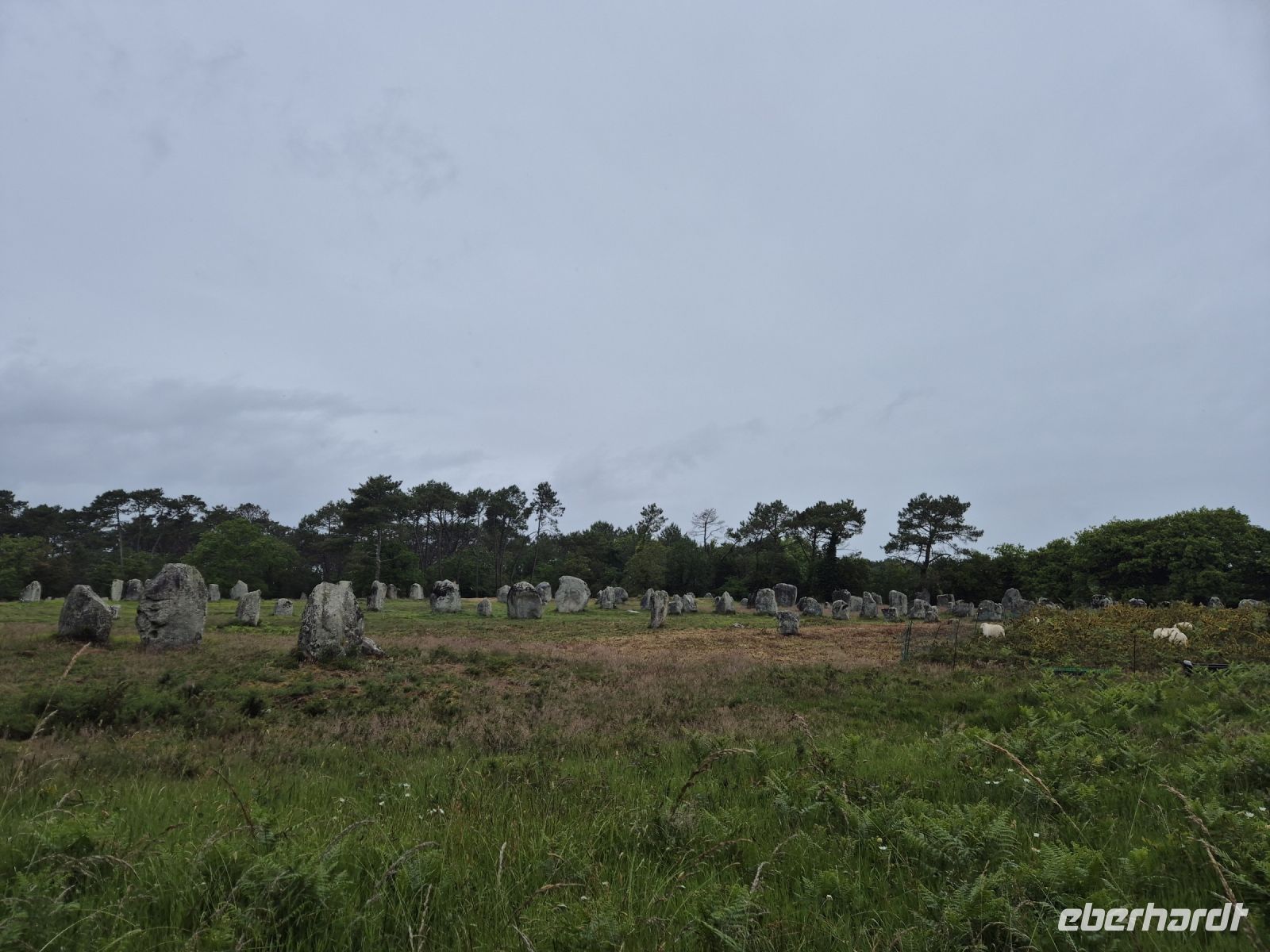 Am Ortsausgang Erdeven kann man an der D 781 gut halten für einen Fotostopp für die Alignements de Kerzerho, 10 Steinreihen mit Menhiren. Die größten ragen 6 m auf.