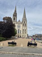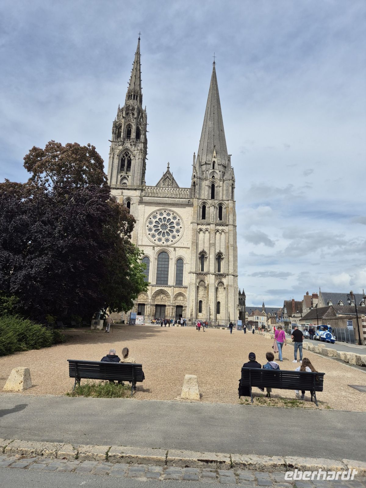 Wie eine Glucke thront die Kathedrale Notre-Dame über der kleinen Altstadt. Sie ist in jeder Hinsicht besonders. Da Chartres nie zerstört wurde, haben wir hier noch fast denselben Blick wie unsere Vorfahren vor 750 Jahren. Der plastische Schmuck und fast alle Fenster sind original! Insofern gilt das Bauwerk als DIE Kathedrale schlechthin, als „Urbild der Kathedrale“. Rodin nannte sie die „Akropolis Frankreichs“. Der Grund für diesen Bau in einer „Kleinstadt“: man war im Besitz einer überaus wertvollen Reliquie, des Gewandes Mariens.