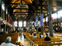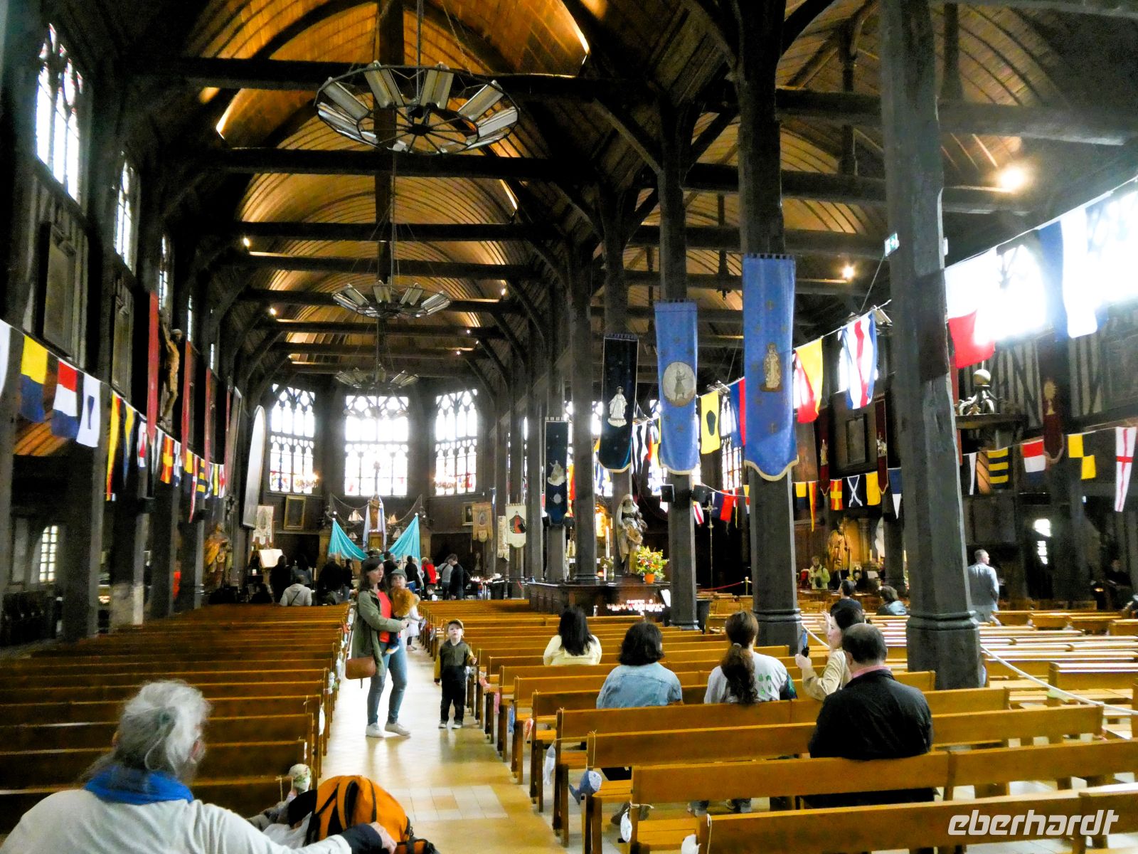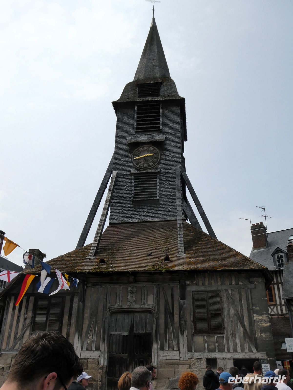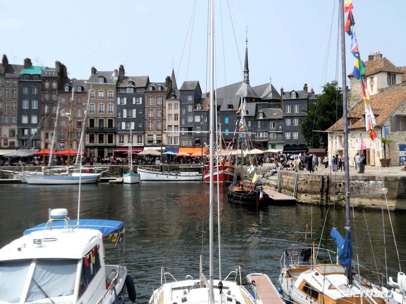 Wir verlassen Rouen um über die Pont de Normandie zu fahren. Allerdings fahren wir direkt nach Honfleur ohne über die Brücke zu fahren, was einem Missverständnis mit unserem Fahrer geschuldet ist. Da wir dadurch etwas schneller in Honfleur sind kommt es uns dort zugute und wir haben etwas Freizeit um in dem lebhaften Ort spazieren zu gehen. Wir bewundern das Alte Hafenbecken und die Kirche St.Catherine, welche von Zimmerleuten im 15. Jahrhundert erbaut wurde und im Innenraum wie zwei Schiffsrümpfe konzipiert ist.