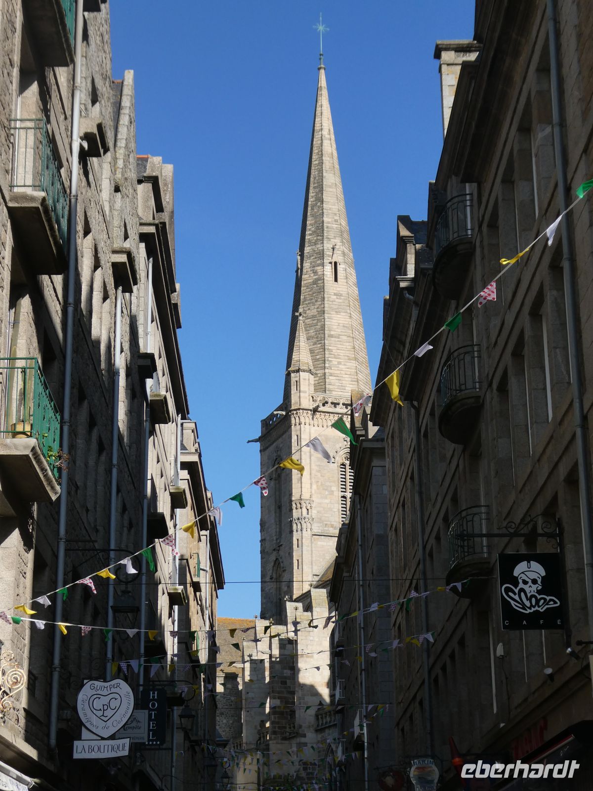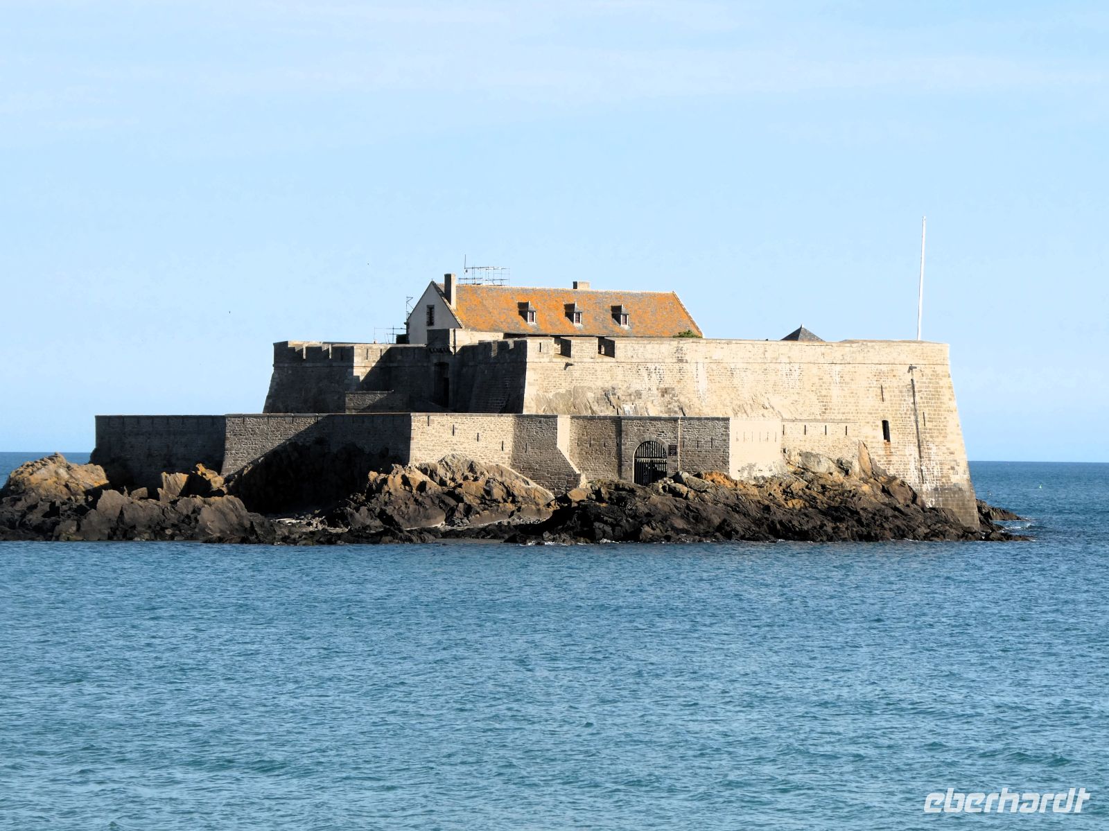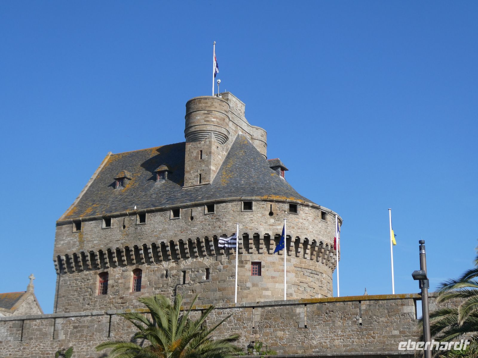 Heute beginnen wir den Tag mit einem Stadtrundgang in St.Malo. Wir spazieren entlang der Strandpromenade in Richtung befestigte Stadt und sehen in der Ferne auf einer Insel das Fort National welches zeitweise als Gefängnis diente.