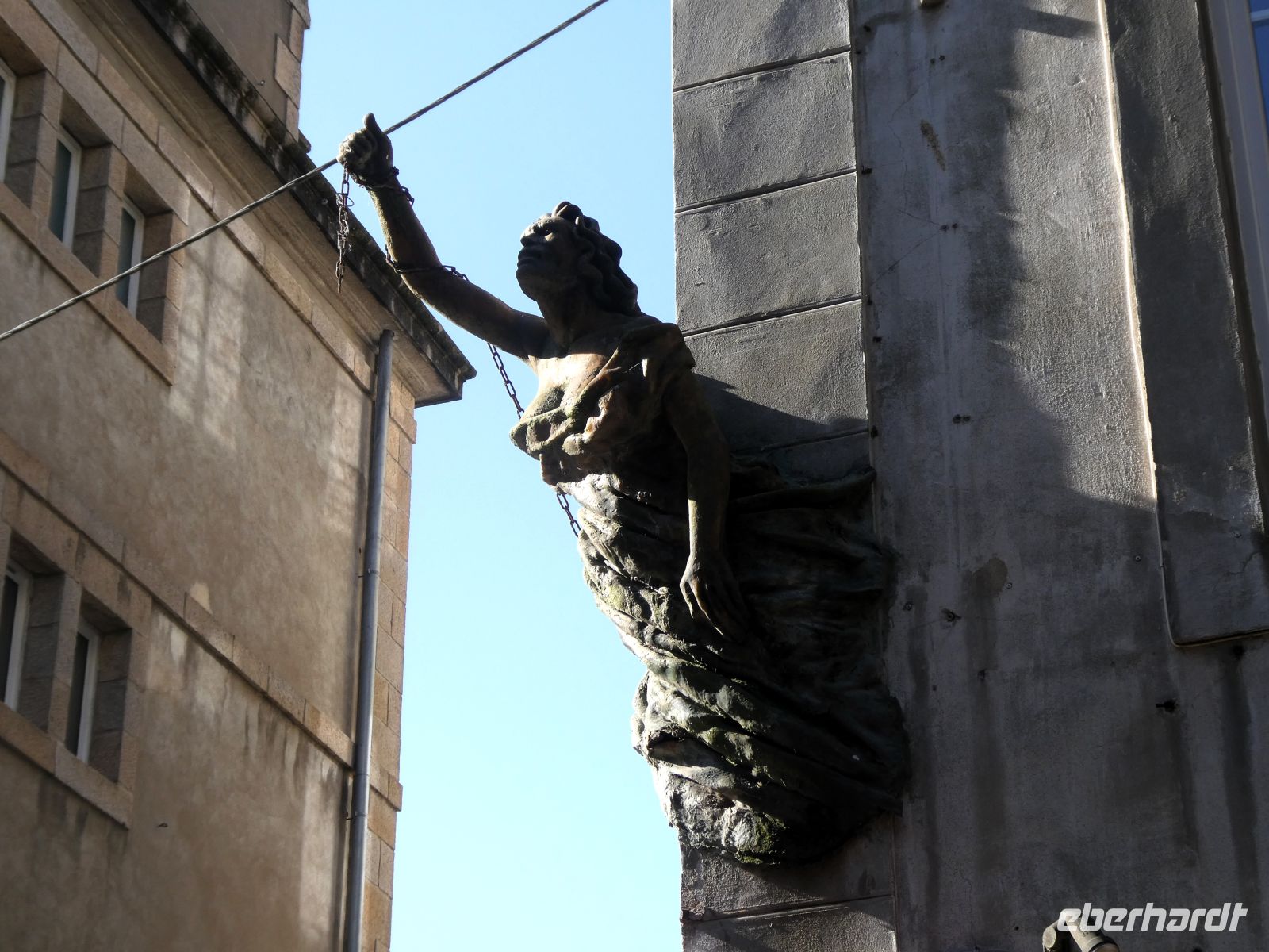 Nach dieser Besichtigung laufen wir zum Rathaus zurück und suchen die Örtlichkeiten für die technischen Bedürfnisse neben der Police nationale.