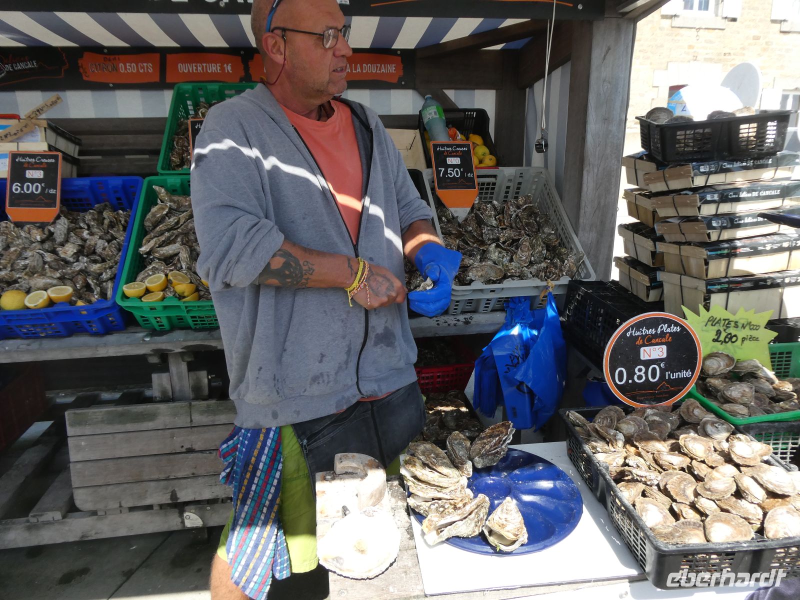 Jetzt steht ein besonderer Imbiss auf dem Programm. Wir fahren in das Austernstädtchen Cancale welches von der Zucht dieser erstaunlichen Tiere lebt.