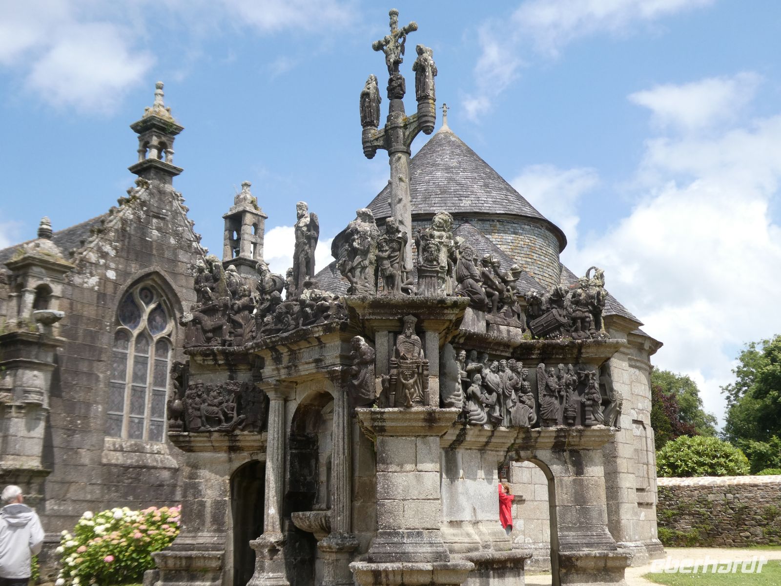 Wir besuchen den Ort Guimiliau in dem es einen der schönsten Kalvarienberge der Bretagne mit einer beeindruckenden Kirche gibt.