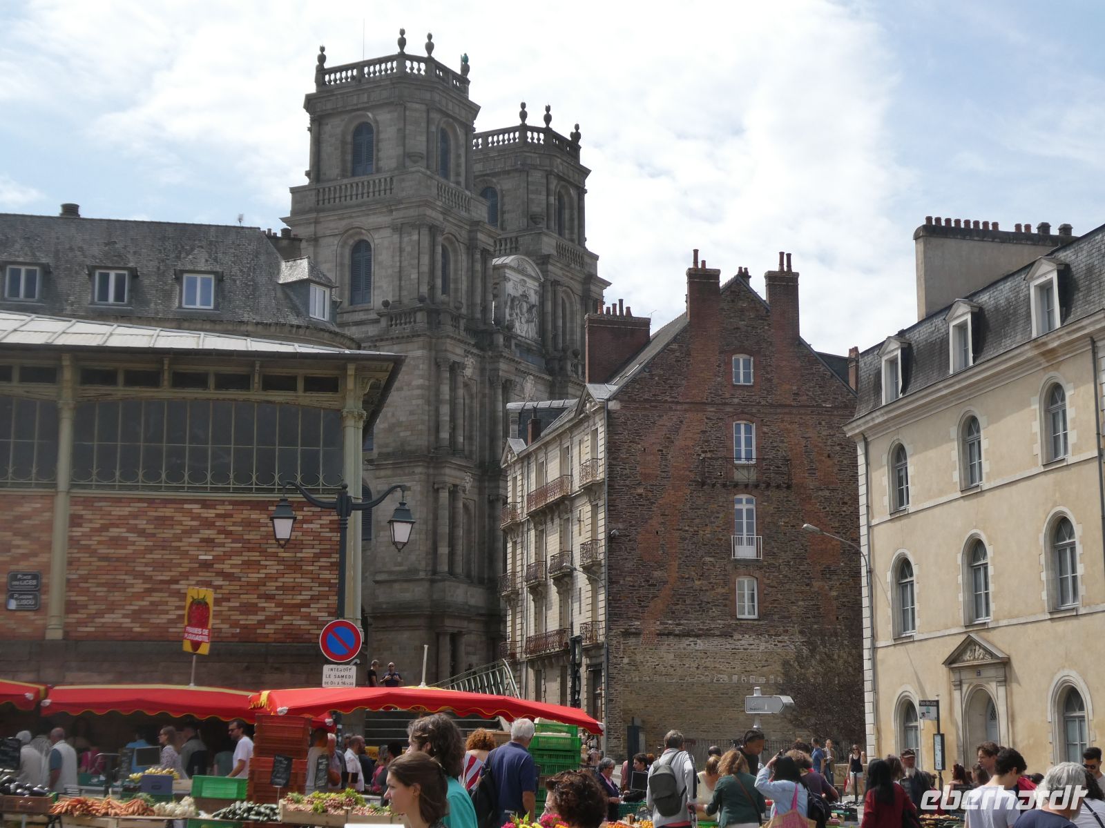 Heute am Samstag ist dort Markttag und so ist es ein wenig komplizierter als sonst für unseren Bus. Aber das meistert unser Fahrer und lässt uns direkt an der Markthalle von Rennes aussteigen.