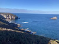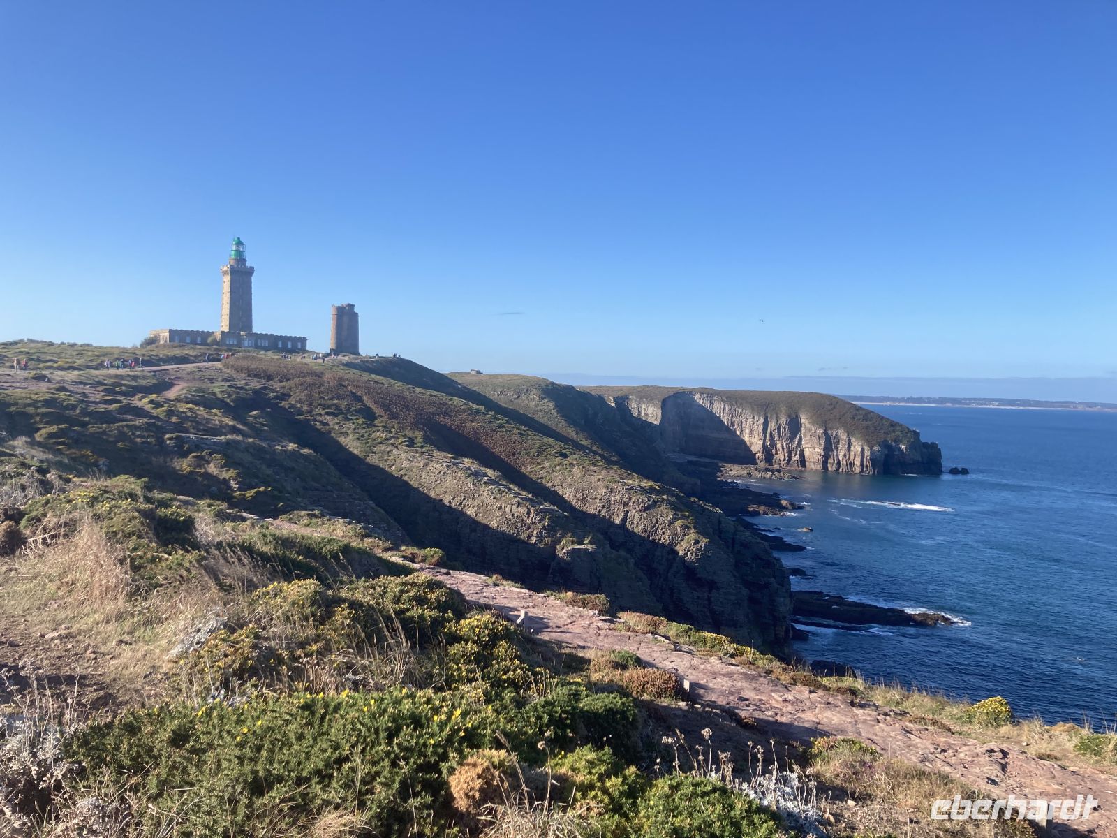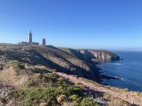 Und dann reißt der Himmel auf und wir können uns guten Gewissens zur Pointe du Raz begeben. Die liegt weit im Westen der Halbinsel Cornouaille. Der Name lässt sofort an „Cornwall“ denken, da die Besiedlung angeblich von diesem Teil Englands aus erfolgte. Vom Parkplatz aus laufen die Gäste bis zum Rand der windgepeitschten Klippen mit den beiden vorgelagerten Leuchttürmen und sind fast ein wenig enttäuscht, dass das gefährliche Kap mit seinen Untiefen, plötzlichen Strudeln und heimtückischen Strömungen heute ziemlich sanft erscheint.