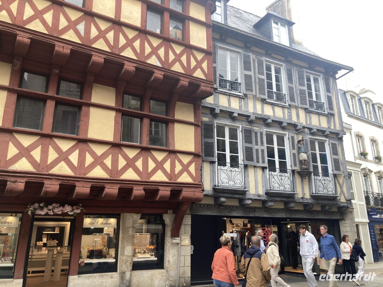 Dann erreichen wir unseren Zielort Quimper und spazieren am Nachmittag durch die schöne Altstadt, um schließlich an der überaus großen Kathedrale zu landen, deren Merkmal der deutliche Knick im Grundriss ist. Zwischen den beiden Kirchtürmen residiert der sagenumwobene König Gradlon aus der untergegangenen Stadt Y hoch zu Pferd. Interessant ist auch der mit alten Fachwerkhäusern umstandene Place du Lices, der ehemalige Turnier- und spätere Richtplatz.