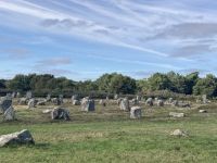 Danach fahren wir entlang der Westküste zur wunderschönen „Baie des Trepasseés“ (Bucht der Vergangenen) mit ihrem legendären Sandstrand, ehe wir ins Morbihan gelangen, einer Landschaft, die vor mehreren tausend Jahren schon besiedelt war und deren Bewohner durch ihre Kultur mit Menhiren, Dolmen und Steinkreisen auffielen. Zunächst halten wir an der Kultstätte von Kerzerho, bei der man durch die imposanten Steinreihen wandern und sie aus nächster Nähe bewundern kann. Dann machen wir uns zu den eingezäunten kilometerlangen Steinfeldern von Carnac auf und können uns wie alle Besucher keinen endgültigen Reim auf dieses Phänomen machen.