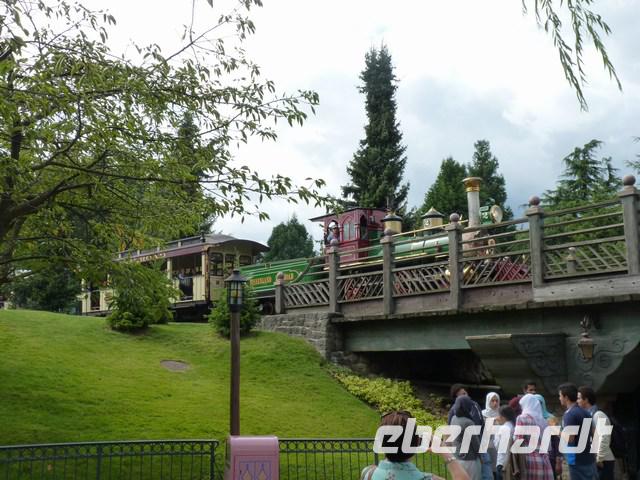 Der Disneyland Railroad fuhr um das ganze Gelände und man konnte sich einen Überblick zwischen den 5 Themenparks (Main Street USA, Frontier- Adventure-, Discovery- und Fantasyland) verschaffen.