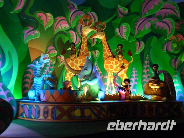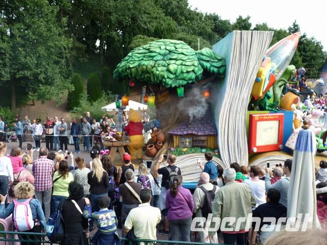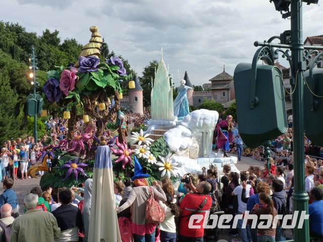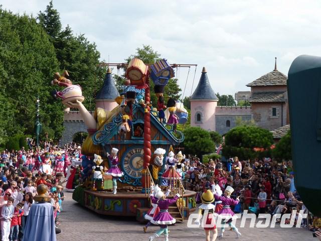 Krönender Abschluss dann die „La Magie Disney en Parade". Viele riesige und bunt geschmückte Paradewagen mit Disneymotiven passieren bei rockigem Sound das Publikum