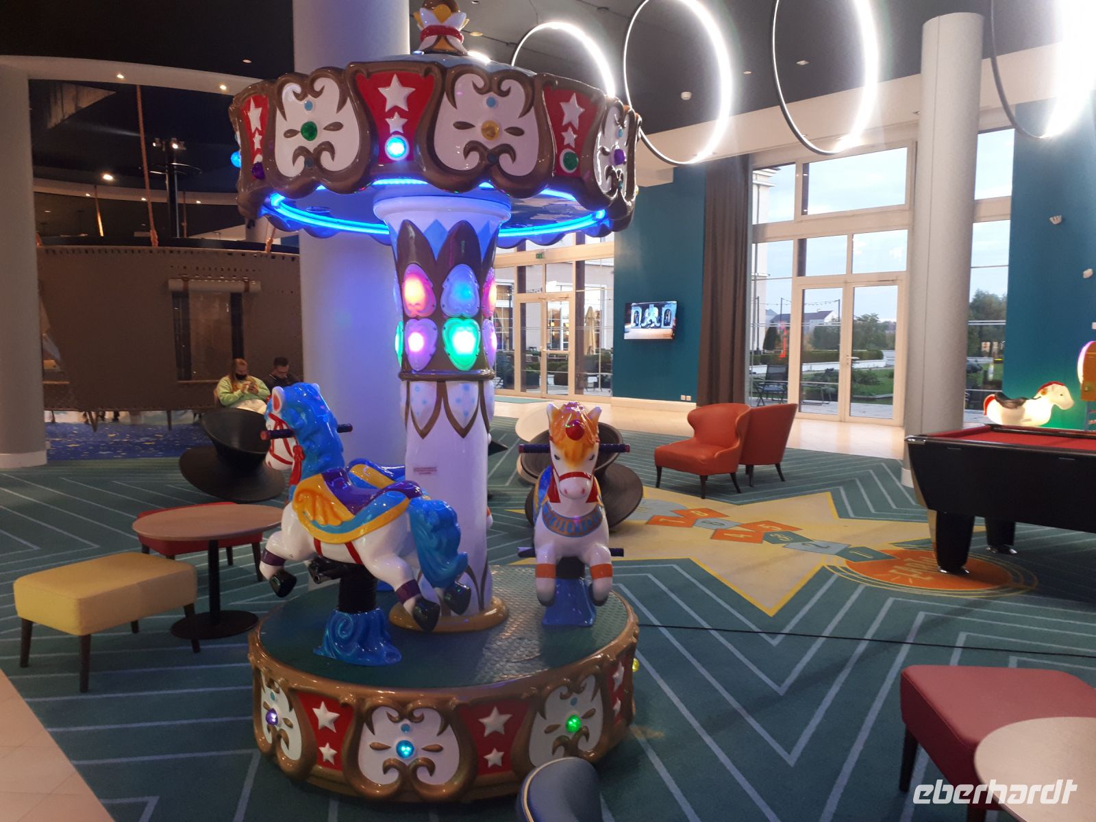 Ohne größere Staus erreichten wir über das Hermsdorfer Kreuz, Frankfurt/Main, Saarbrücken, Metz, Verdun, Reims am Abend unser 4-Sterne-Hotel „Magic Circus“, ganz nahe dem Disneyland, was wirklich Zirkus-Atmosphäre versprüht. Laser-Projektionen beeindrucken da genauso wie ein lebensgroßer Artist am Seil (allerdings nicht aus Fleisch und Blut, sondern aus Holz) ein kleines Zirkuszelt sowie sehr großzügige Spielbereiche für die Kinder, in denen es überall in bunten Farben leuchtet und blinkt.